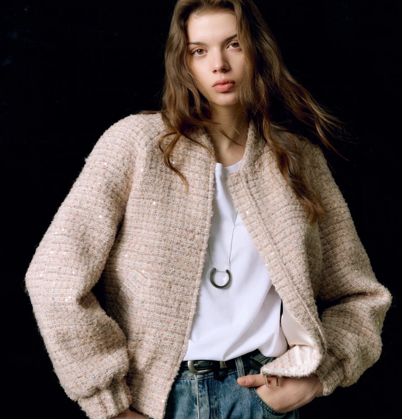NIGO Chanel Women's Spring And Autumn Baseball Collar Solid Color Wool Tweed Long Sleeve Jacket #nigo71695