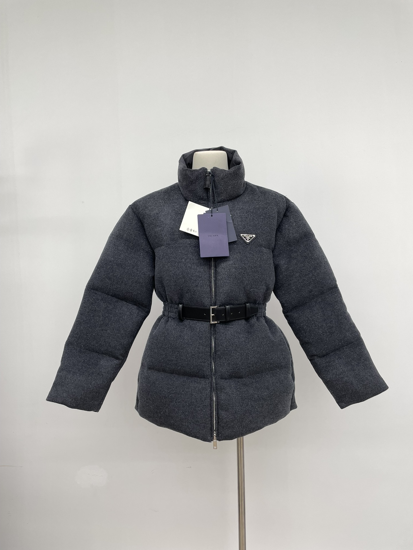 NIGO Prada Women's Fall and Winter Logo Logo Standing Collar Belt Loose Zipper Long Sleeve Puffer Down Jacket #nigo73966