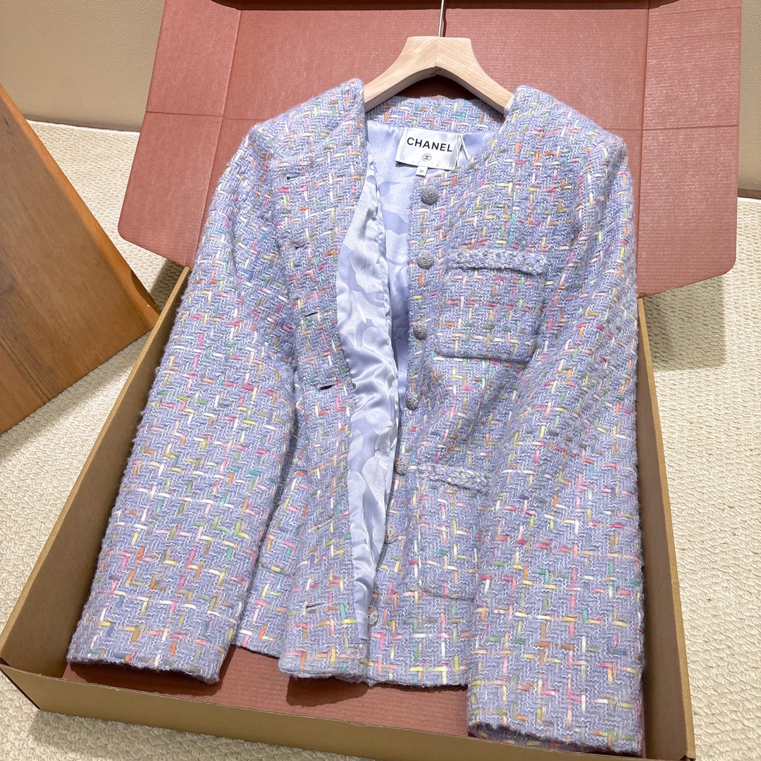 NIGO Chanel Women's Fall/Winter Checkered Stand Collar Wool Blend Button-Up Multi-Color Long Coat Jacket Ngvp #nigo2559