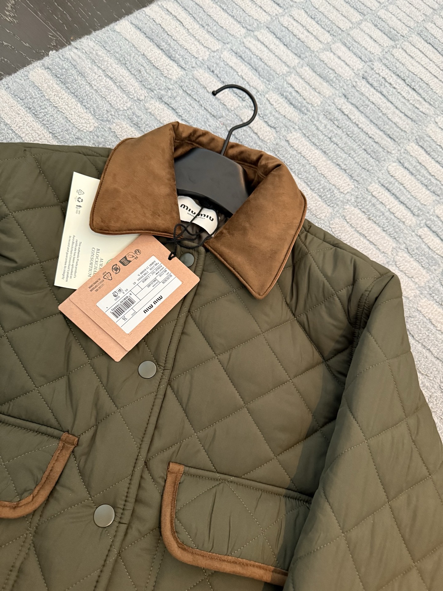 NIGO MiuMiu Women's Fall/Winter Fashion Casual Lapel Single Breasted Short Diamond Checked Loose Cotton Jacket #nigo79245