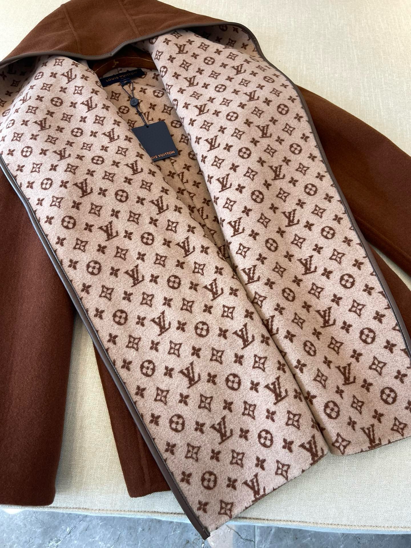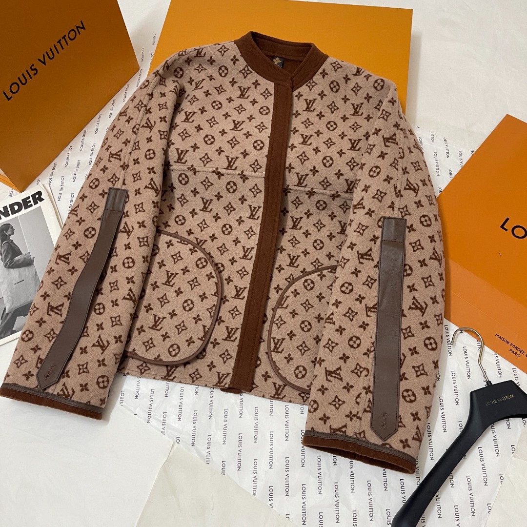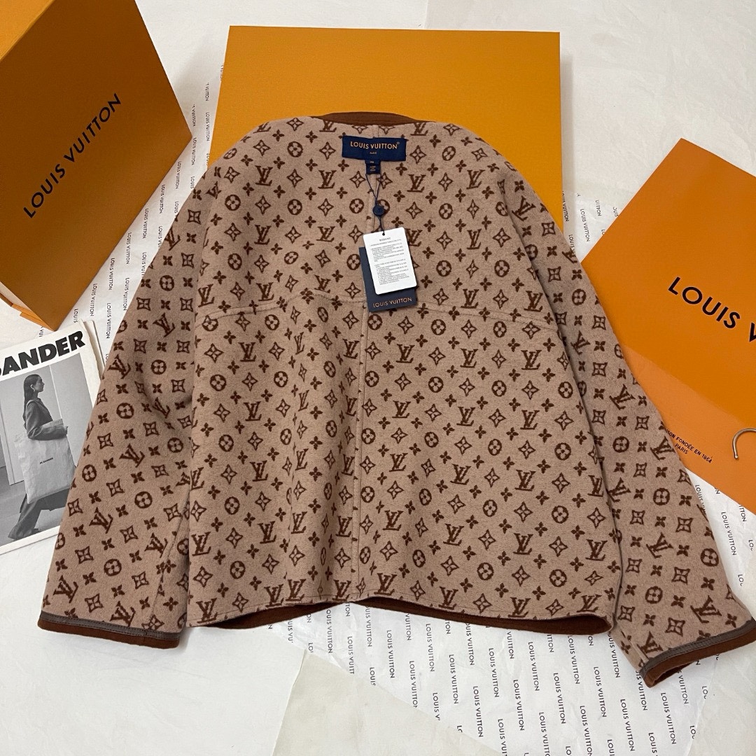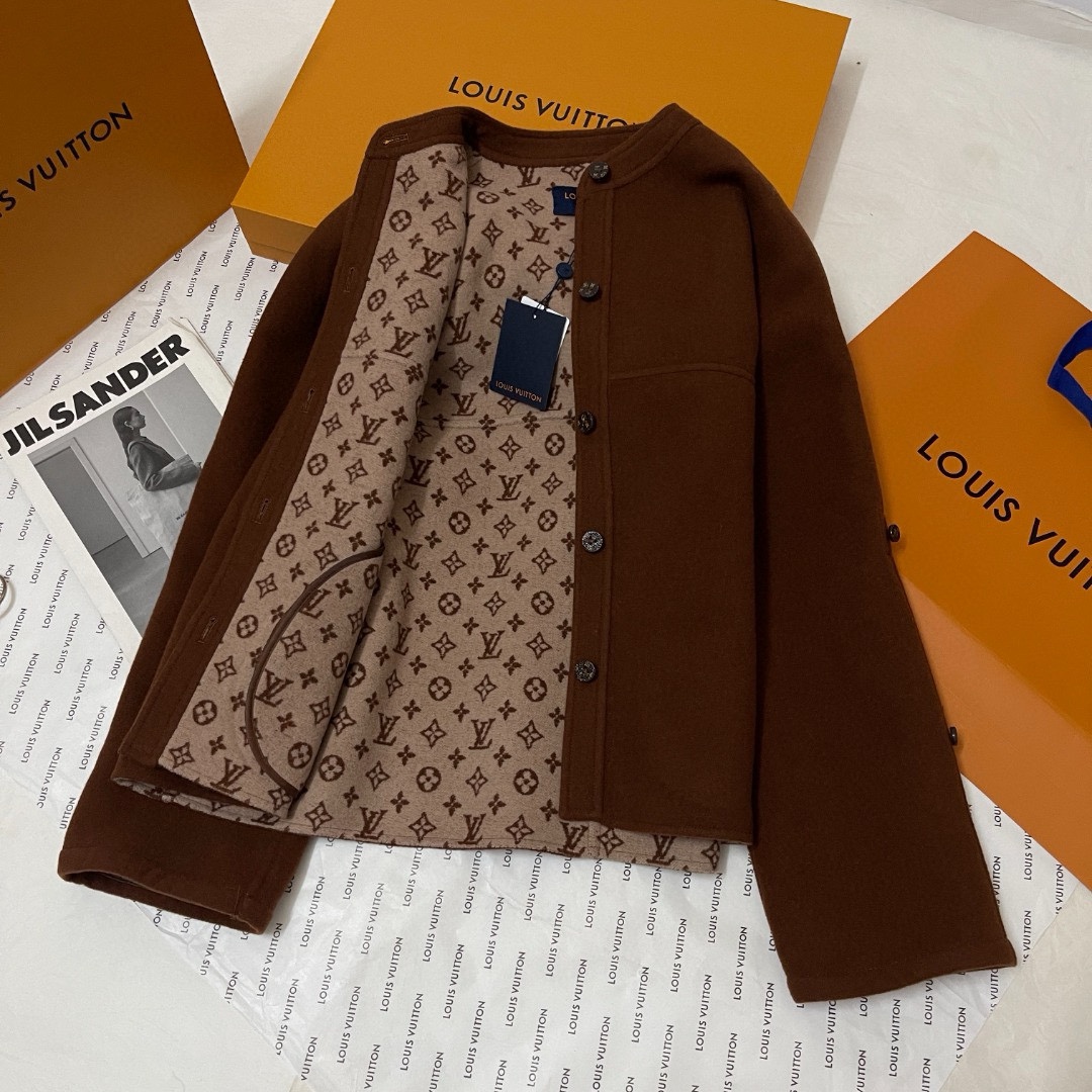 NIGO Louis Vuitton Women's Fall And Winter Brown Single Breasted Round Neck Casual Wool Long Sleeved Jacket #nigo73339