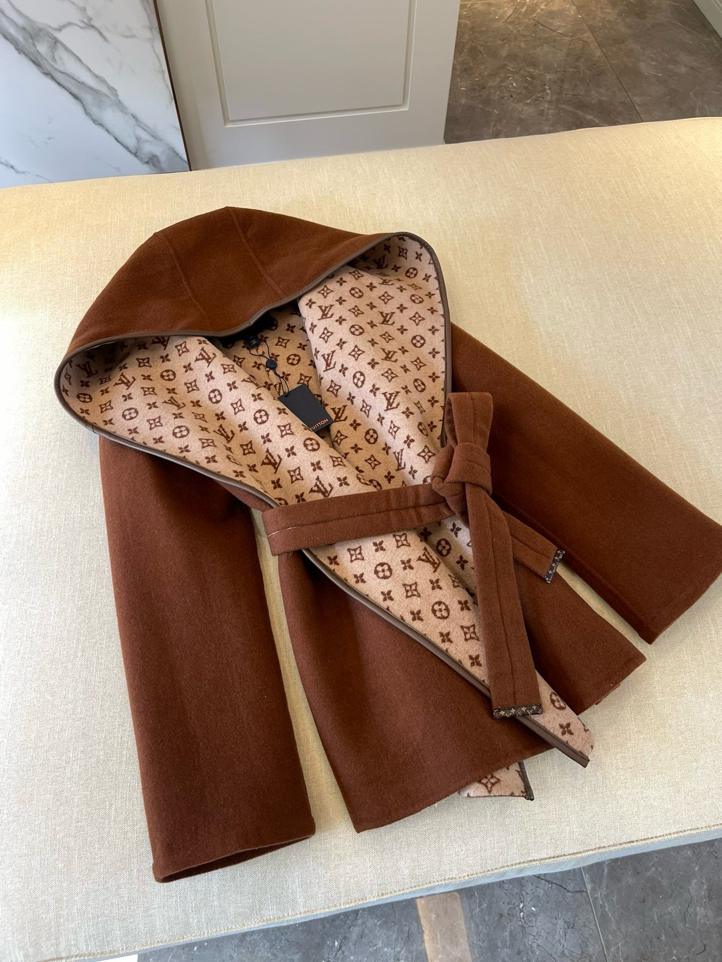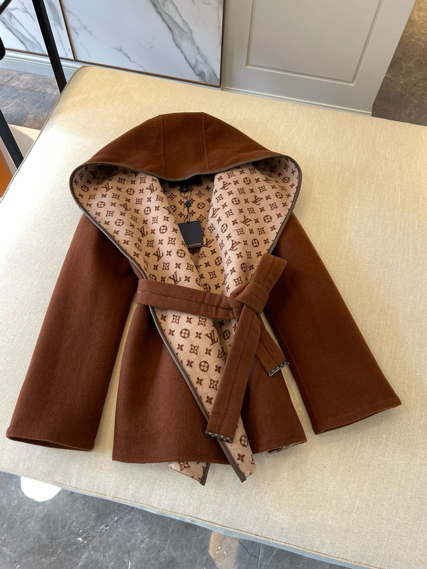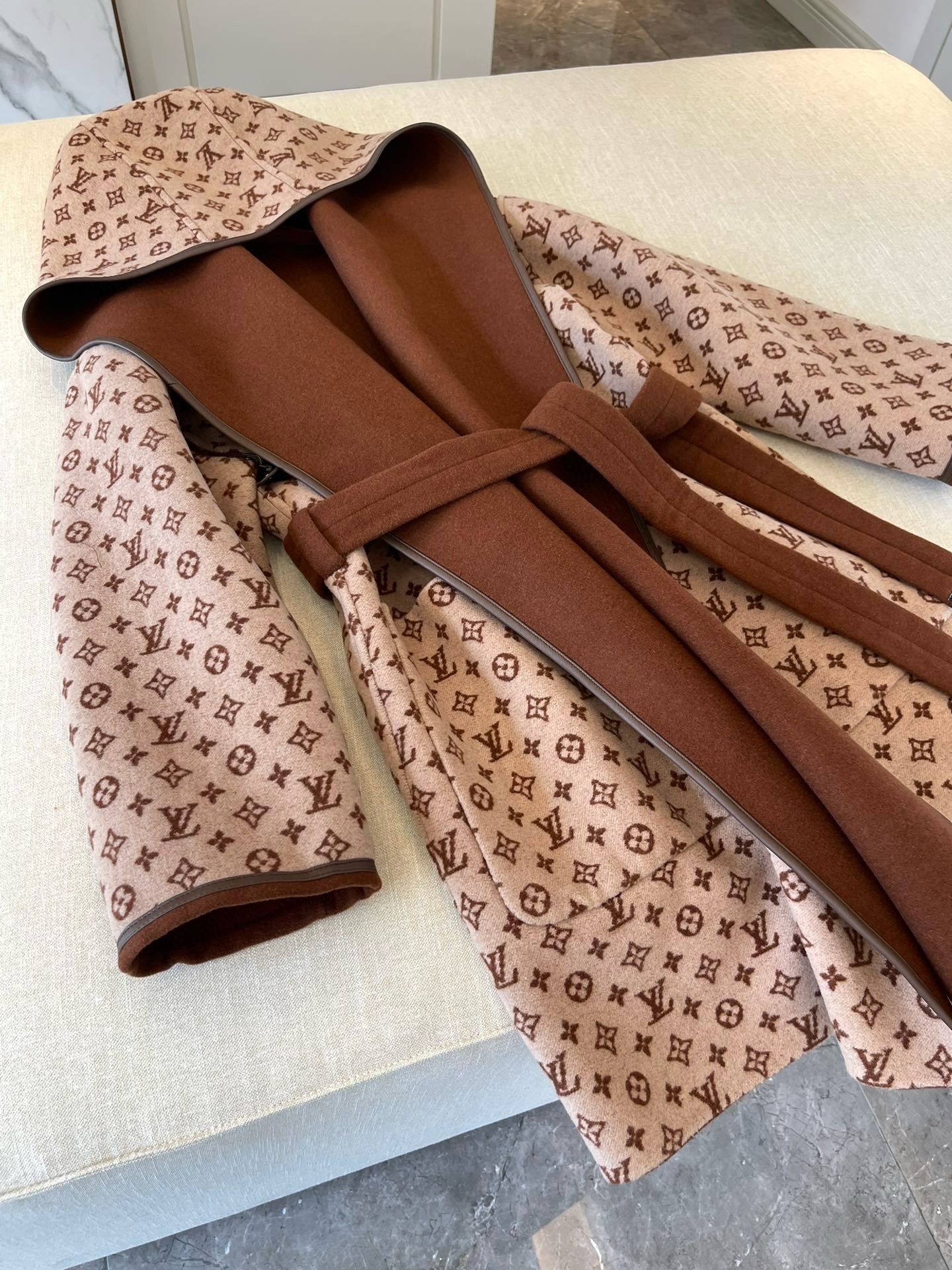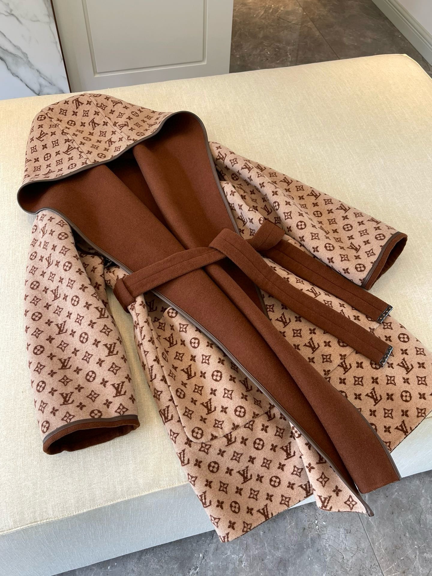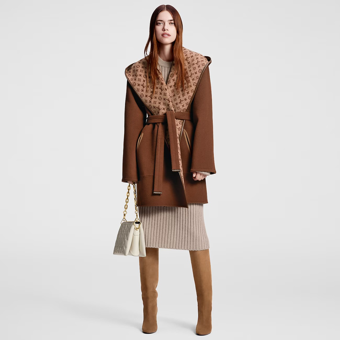 NIGO Louis Vuitton Women's Fall/Winter Brown Logo Letter Printed Wrap Around Waist Tie Long Sleeve Jacket #nigo73341