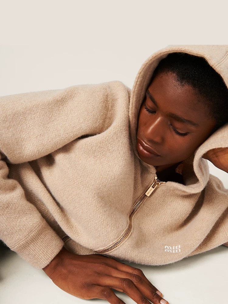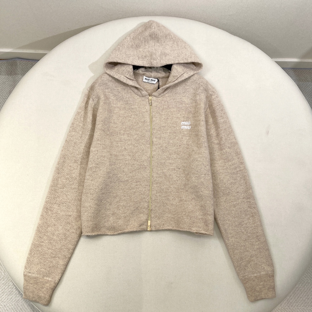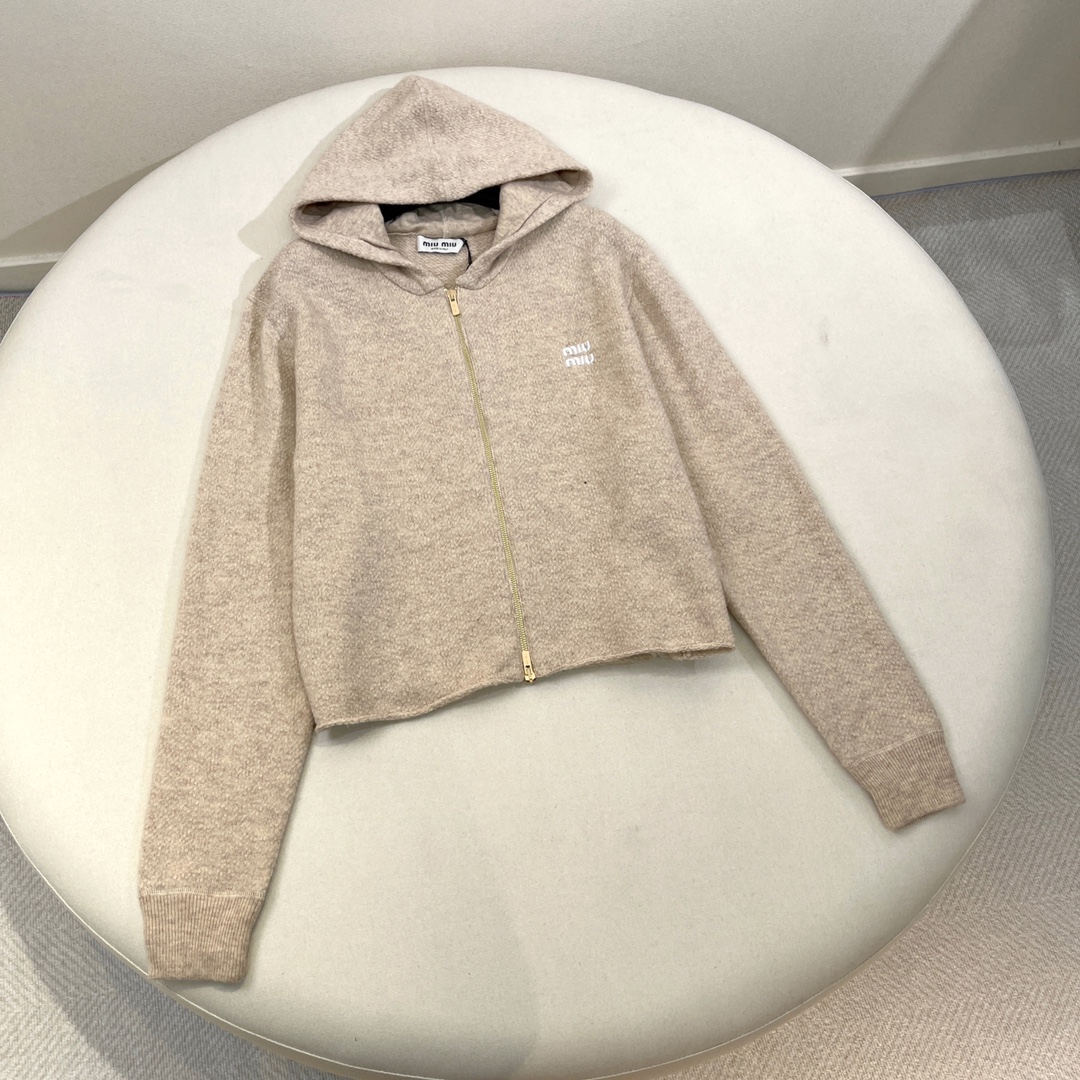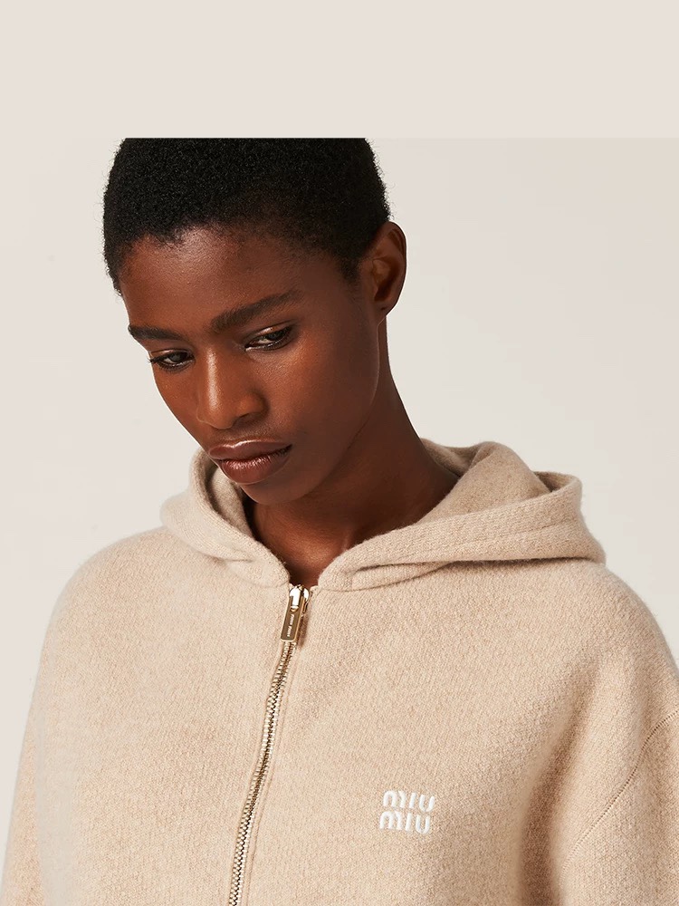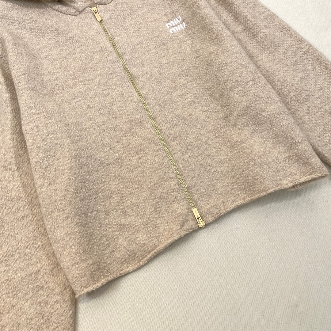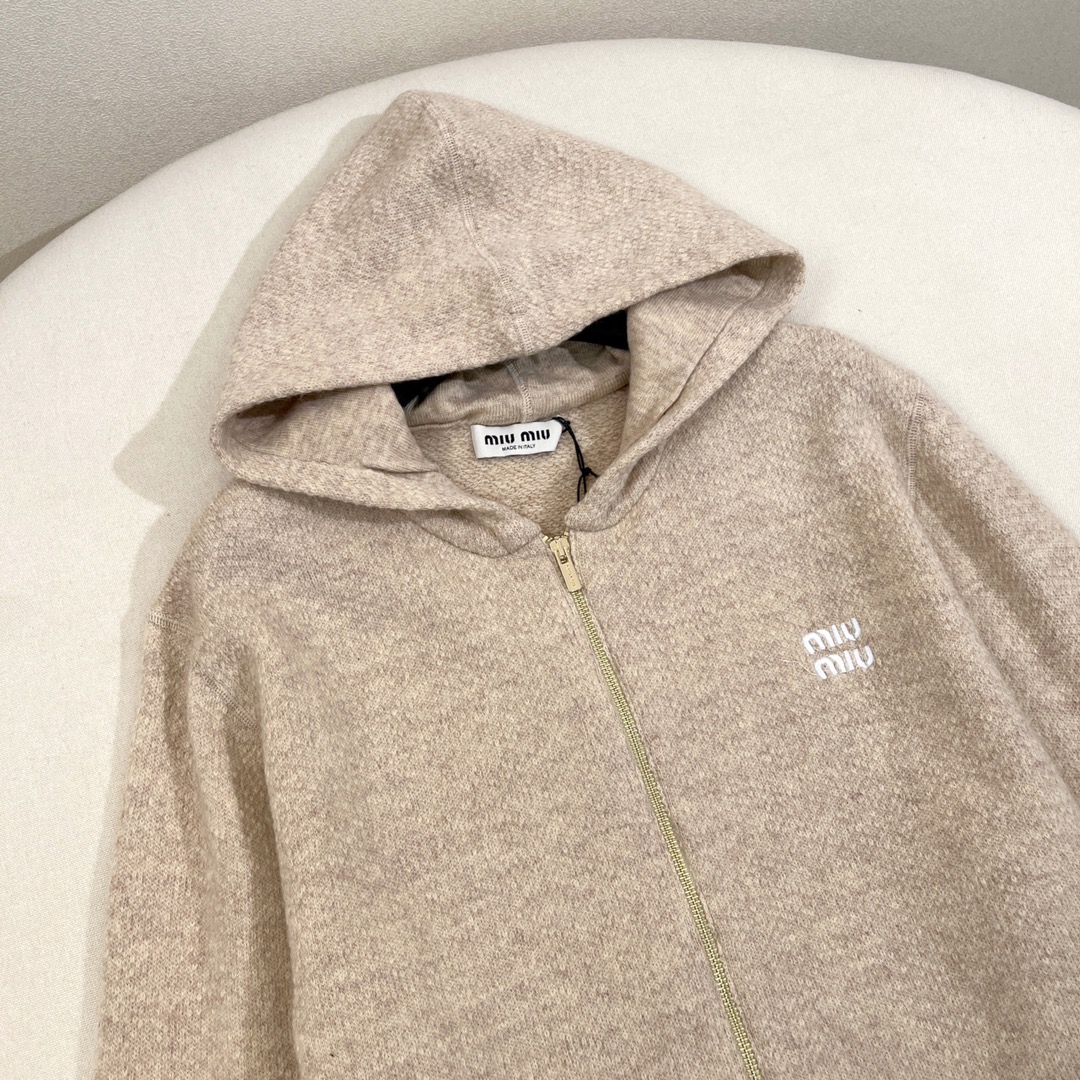 NIGO MiuMiu Women's Spring and Autumn Solid Color Letter Printed Cashmere Hooded Zipper Long Sleeve Jacket #nigo73236
