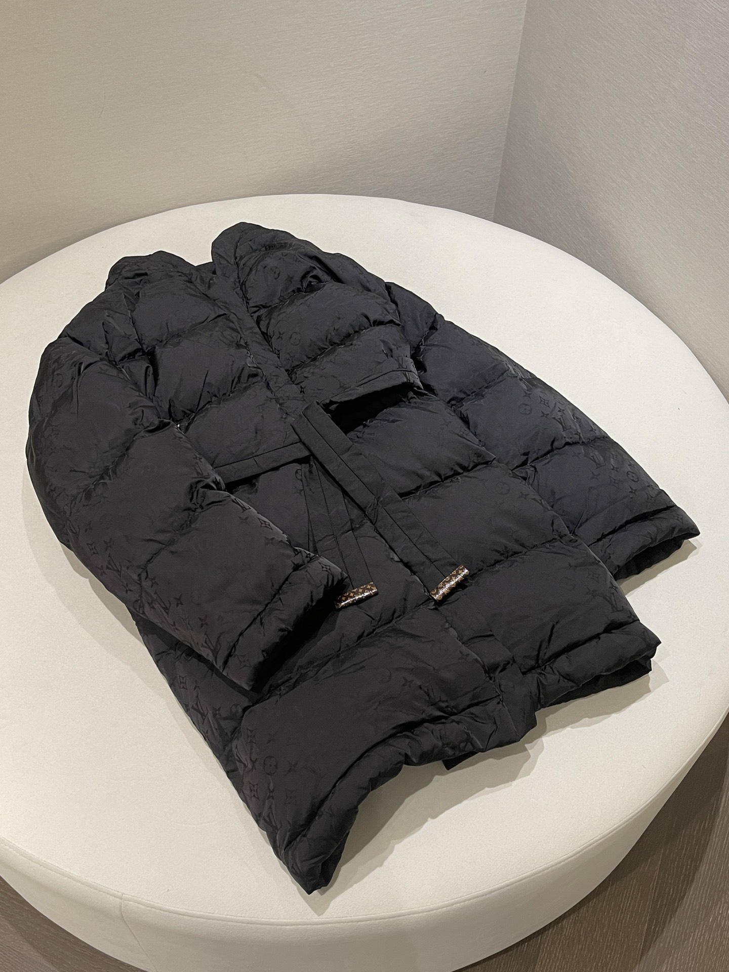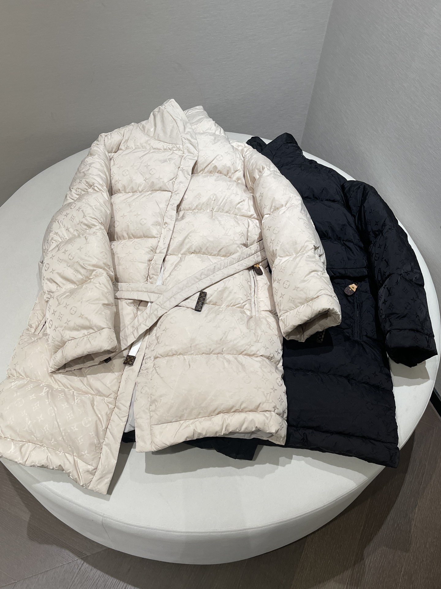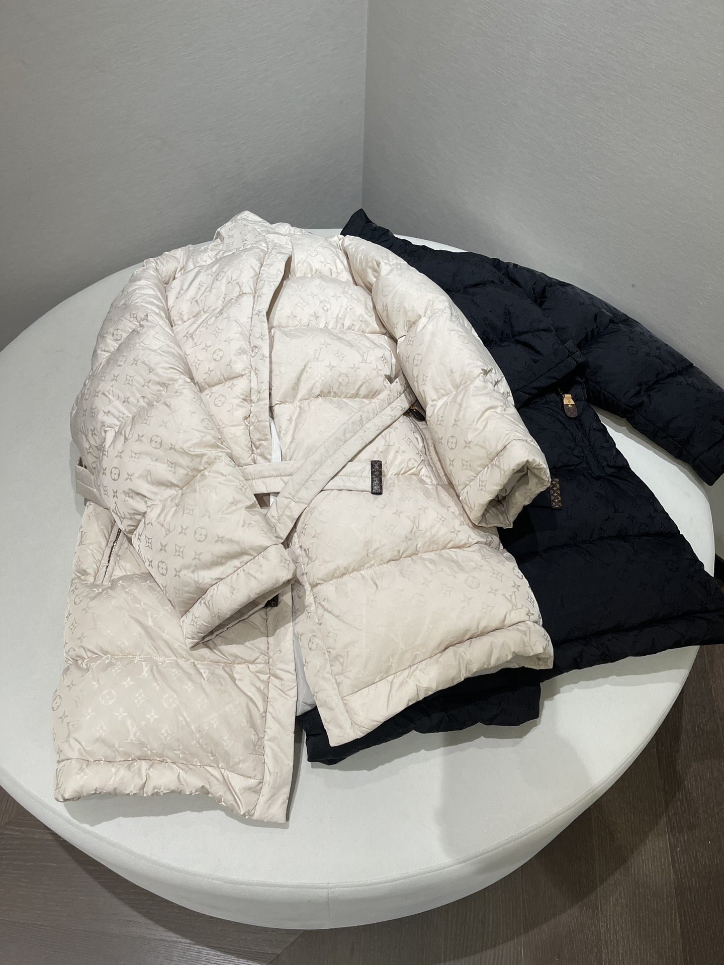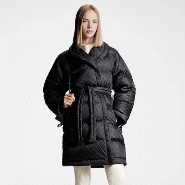 NIGO Louis Vuitton Women's Winter Letter Printed Split Collar Belt Puffer Down Pants Coat Jacket #nigo72981