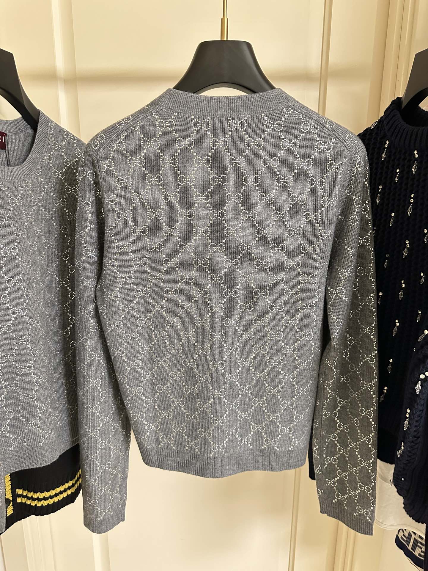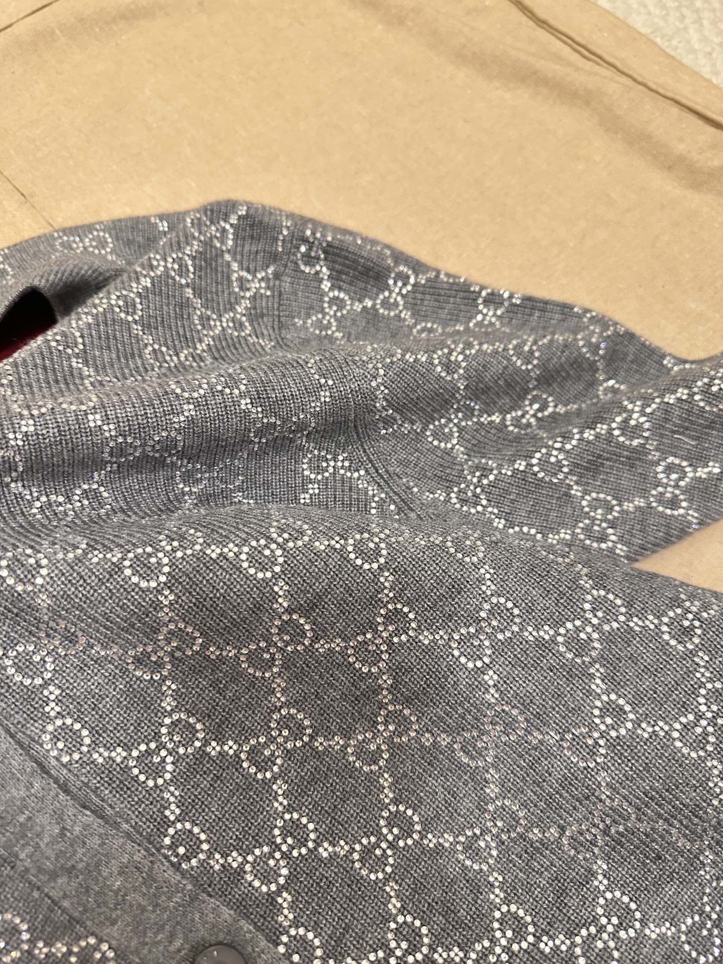 NIGO Gucci Women's Gray Letter Logo Round Neck Single Breasted Long Sleeve Knit Sweater Jacket #nigo72991