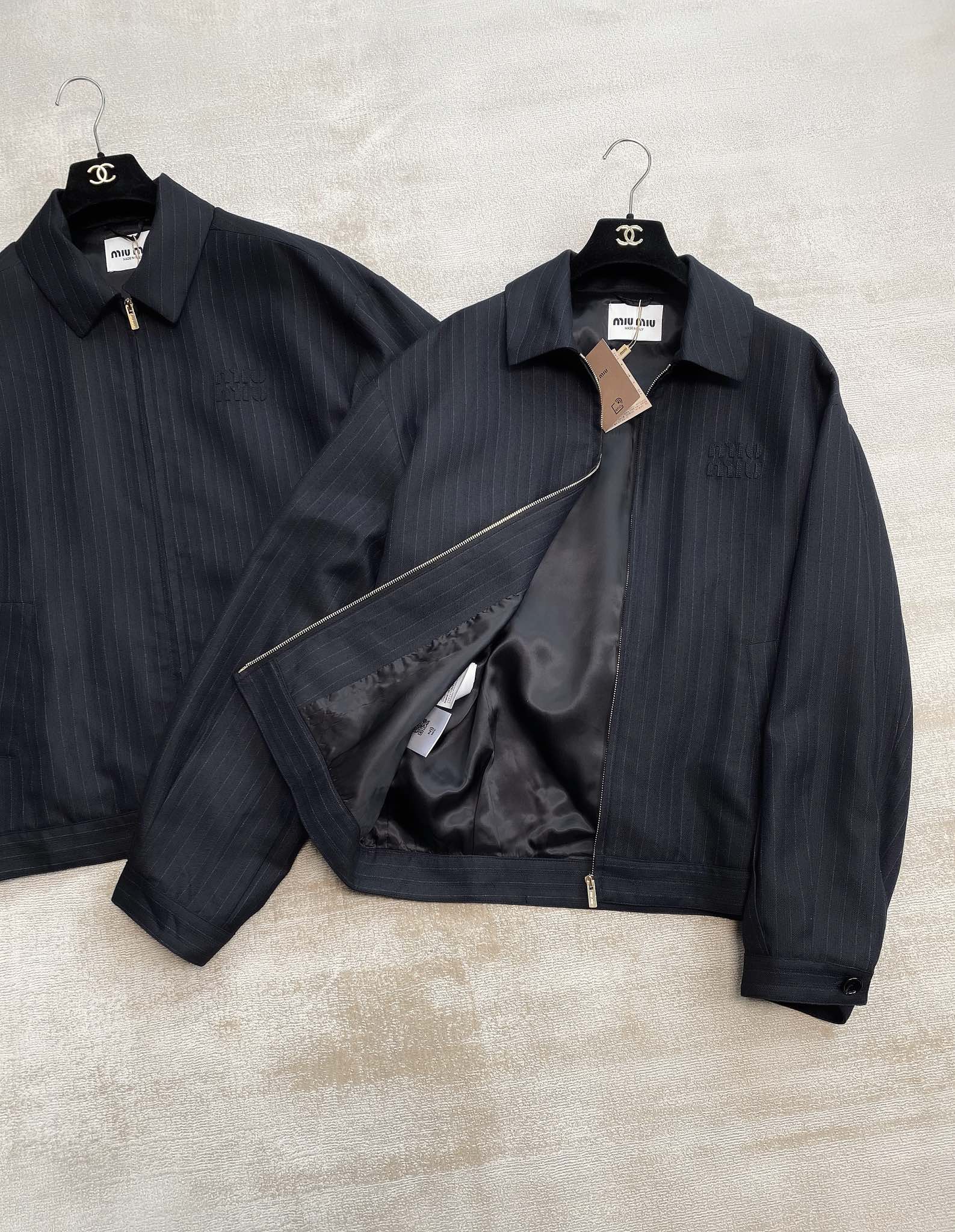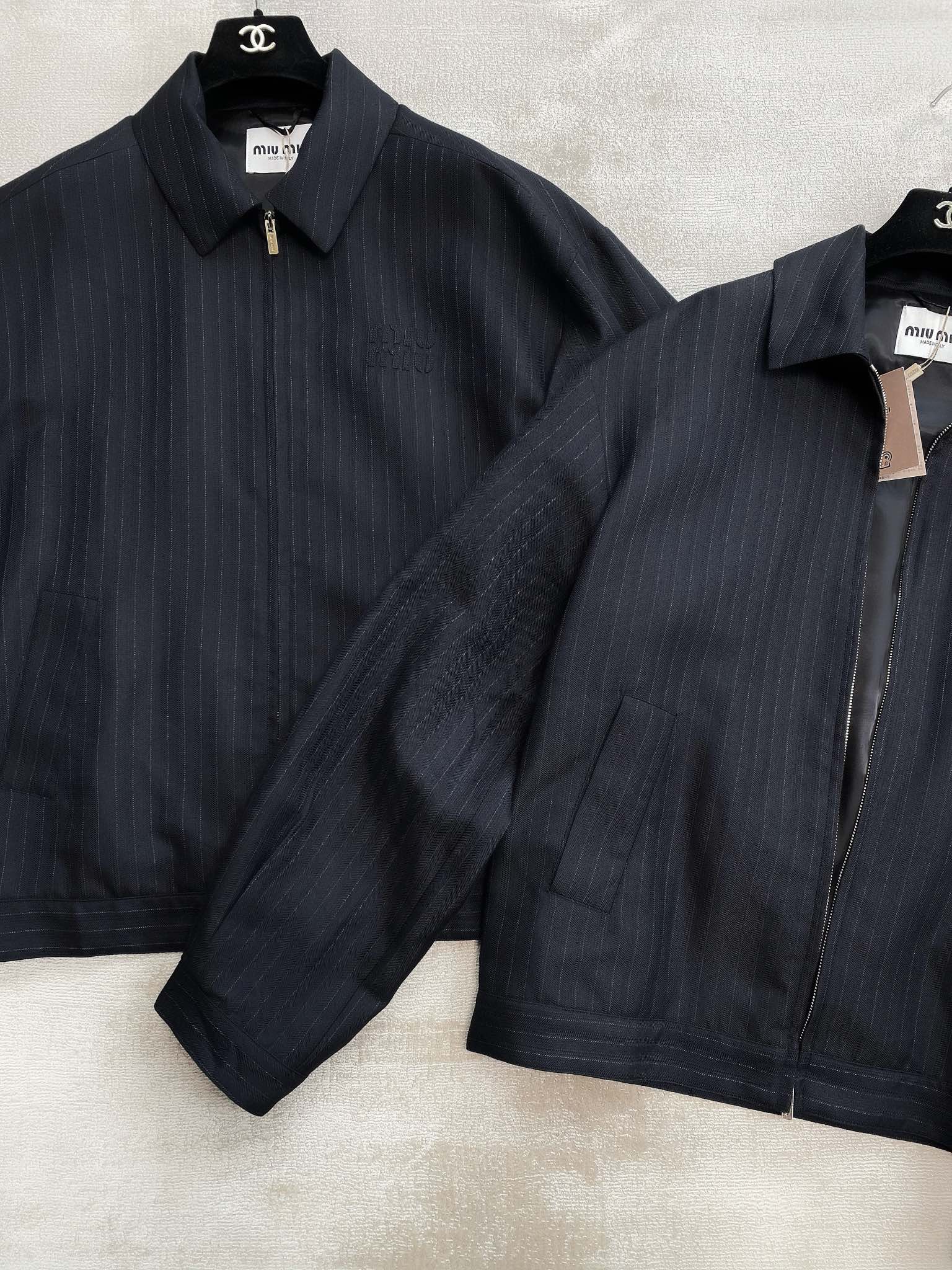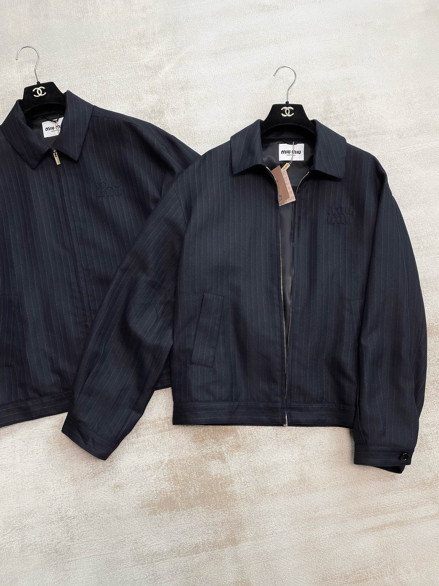 NIGO MiuMiu Women's Spring and Autumn Blue Pinstripe Lapel Zipper Long Sleeve Jacket #nigo73142