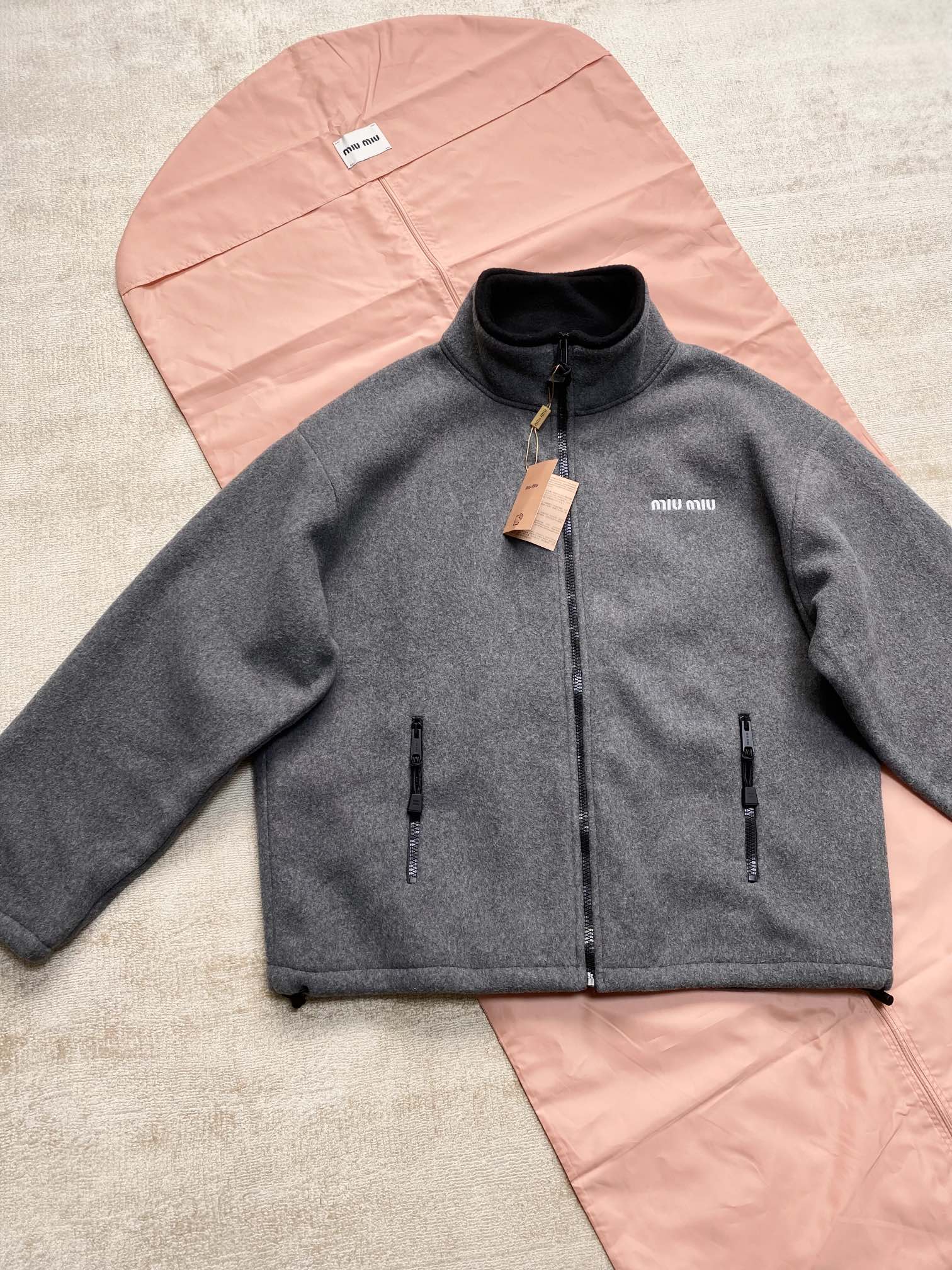 NIGO MiuMiu Women's Spring and Autumn Gray Letter Logo Embroidery Lapel Zipper Long Sleeve Jacket #nigo72999