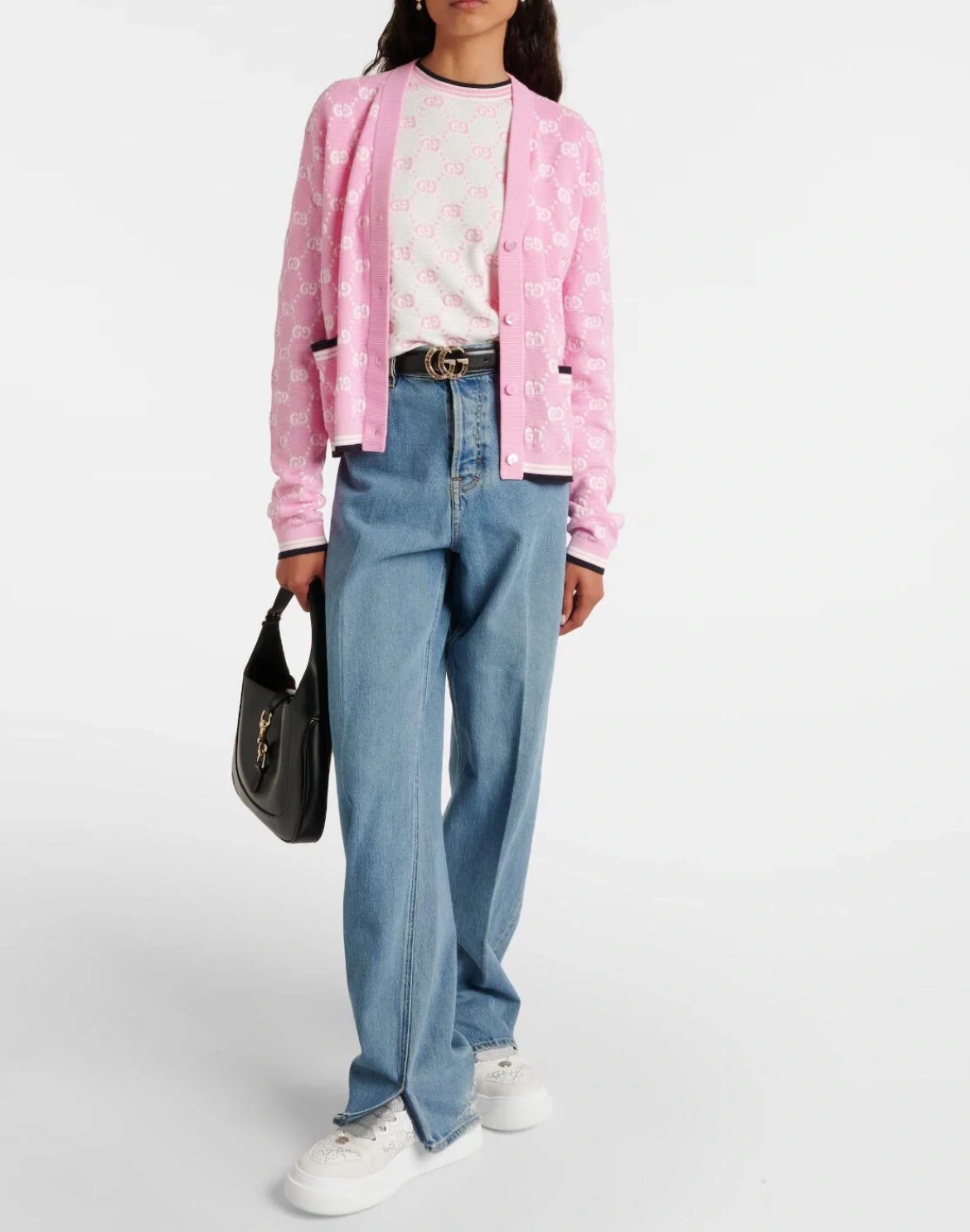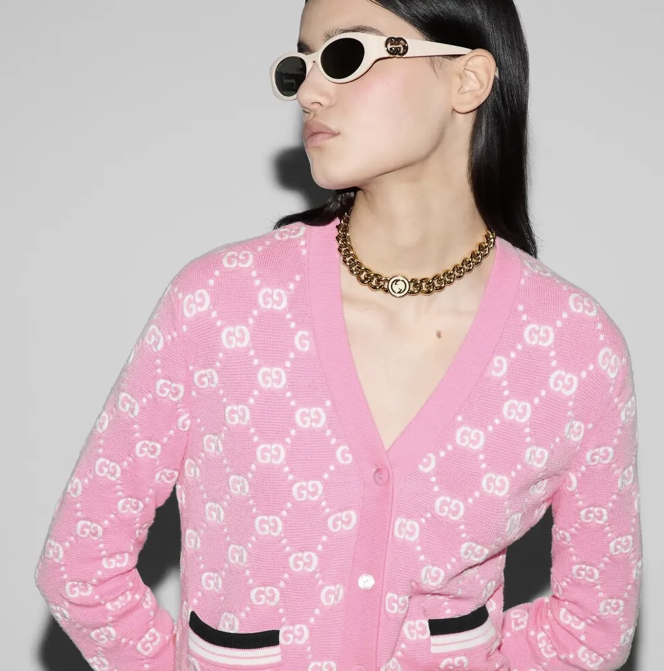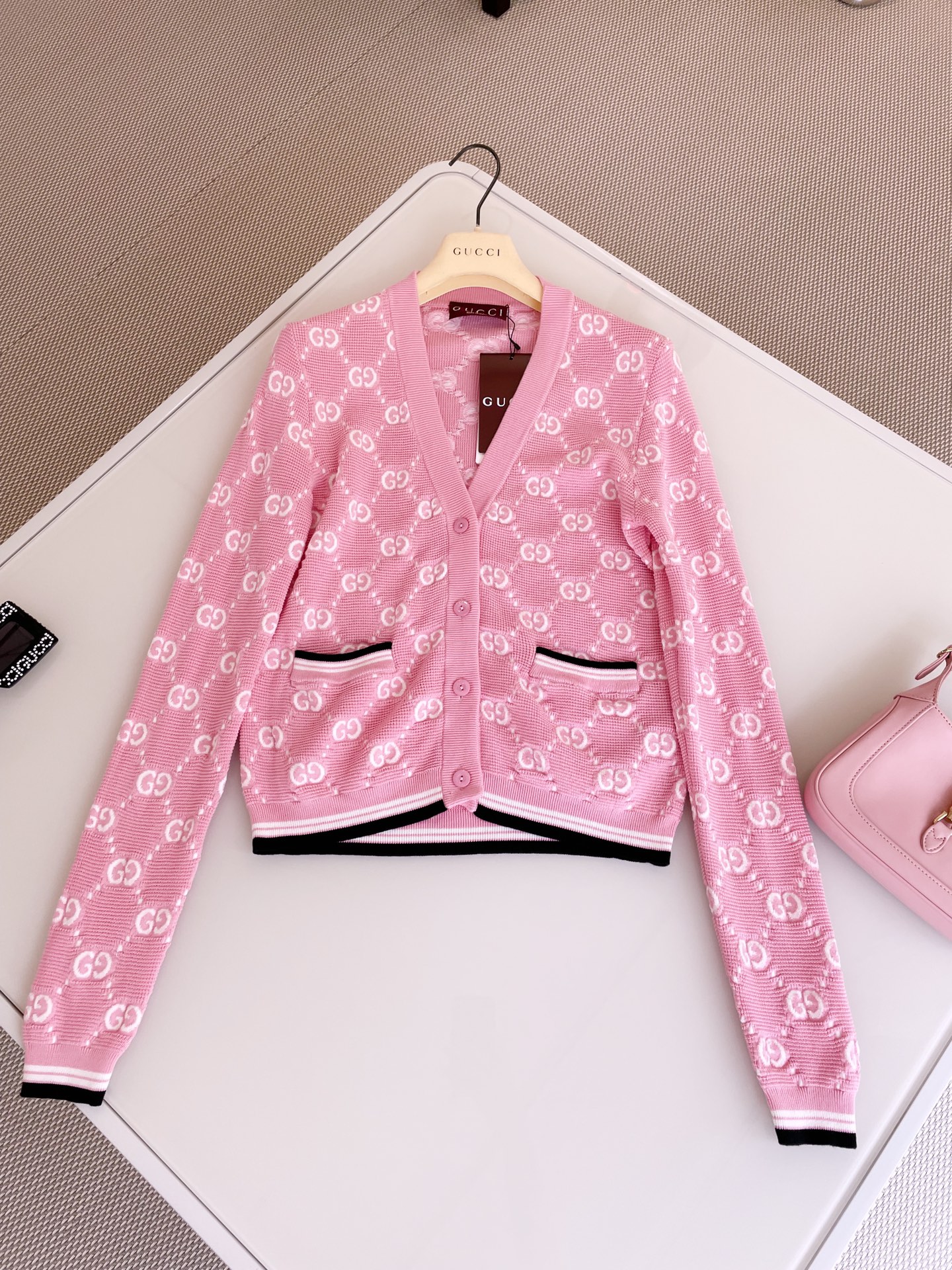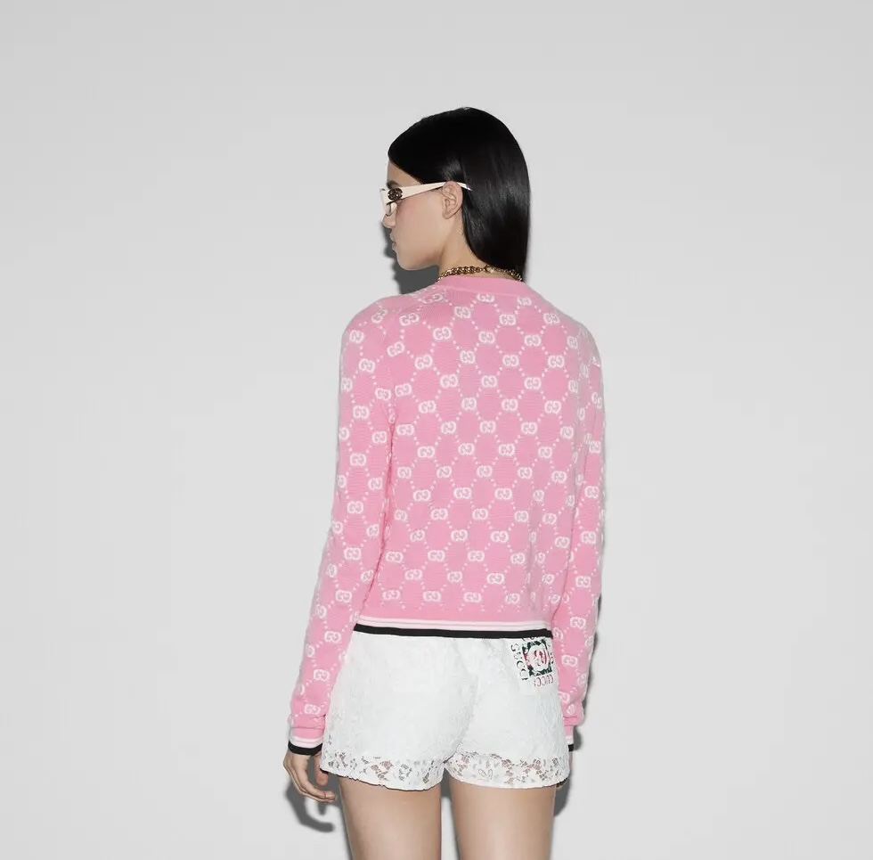 NIGO Gucci Women's Spring and Autumn Pink Logo Applique V-Neck Single Breasted Long Sleeve Knit Sweater Jacket #nigo72916
