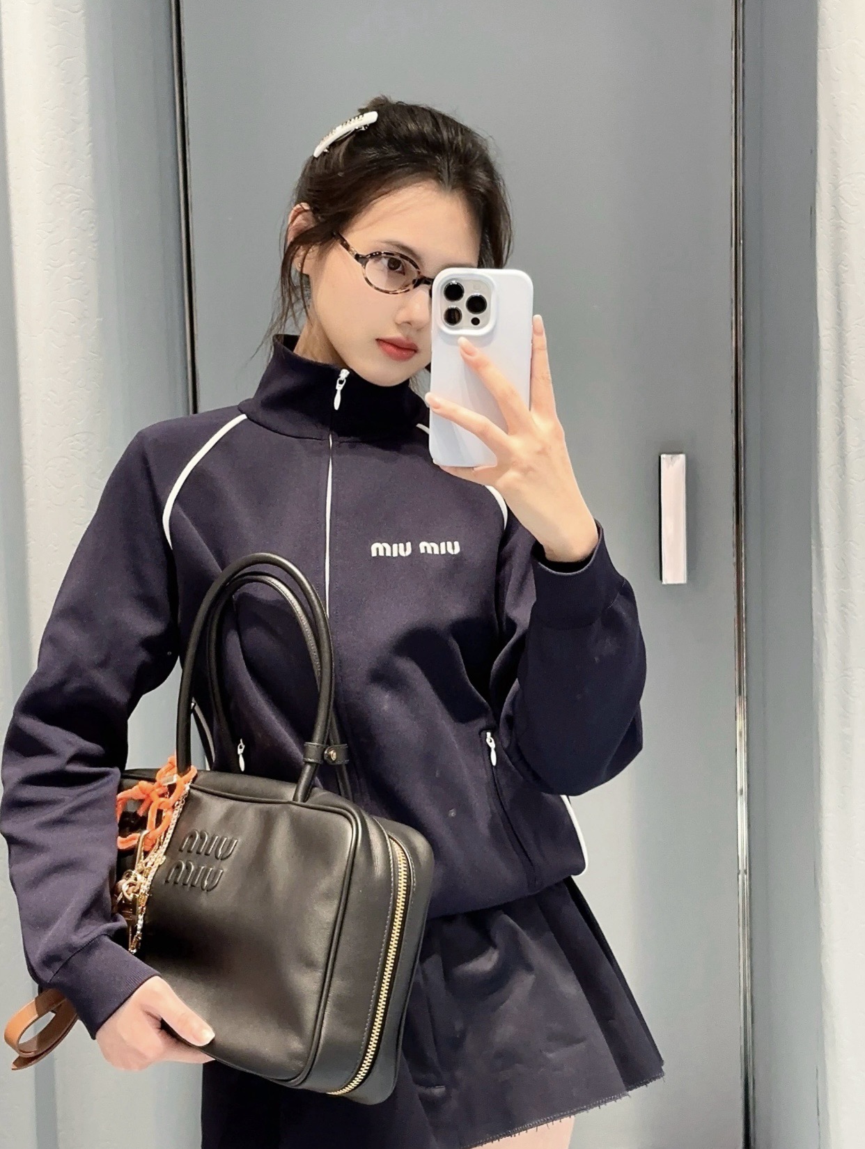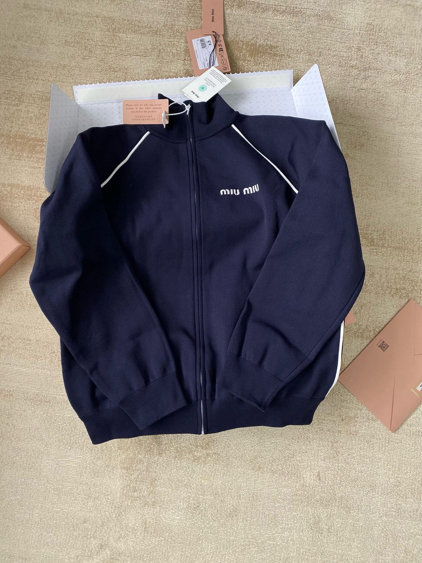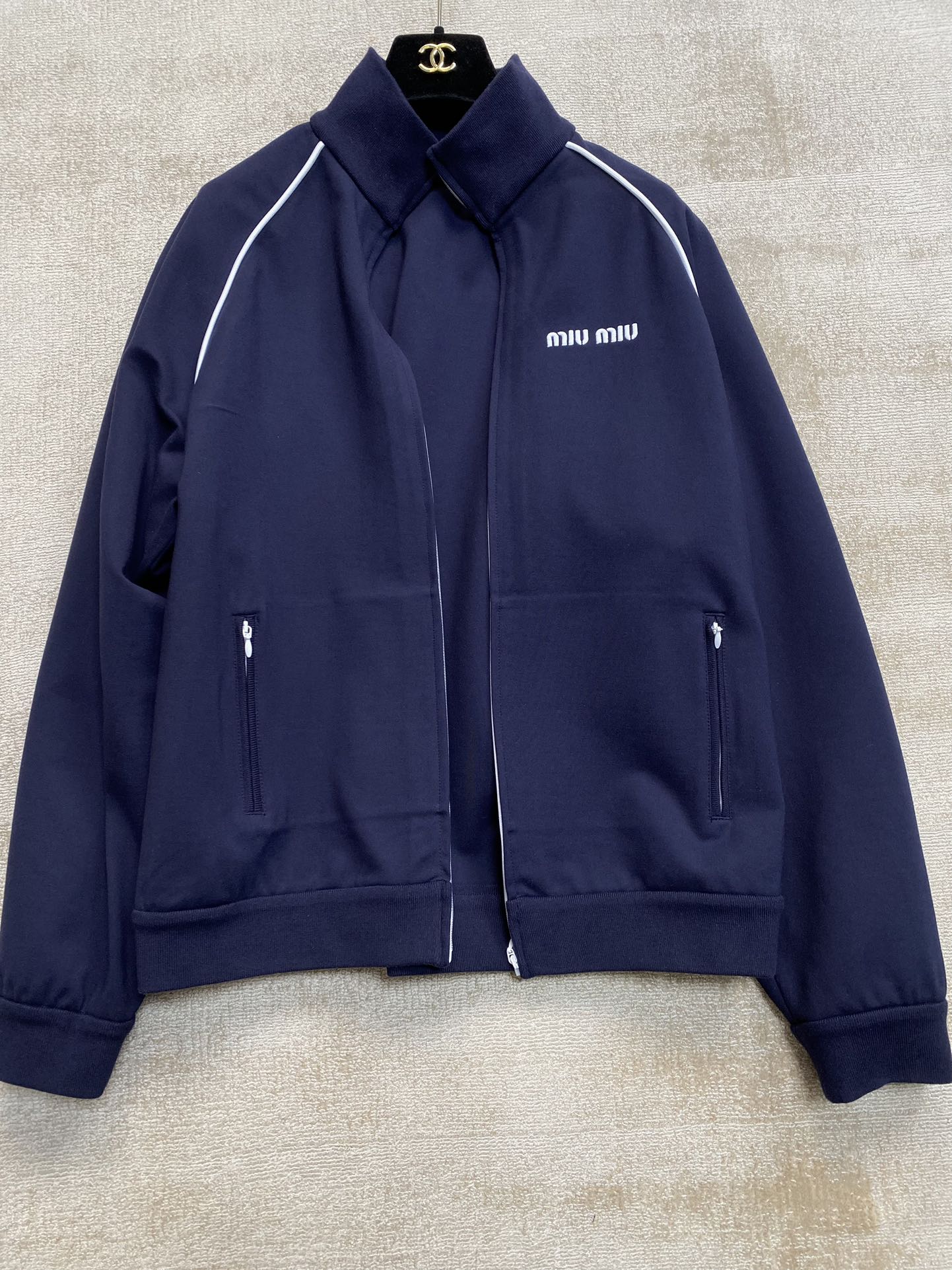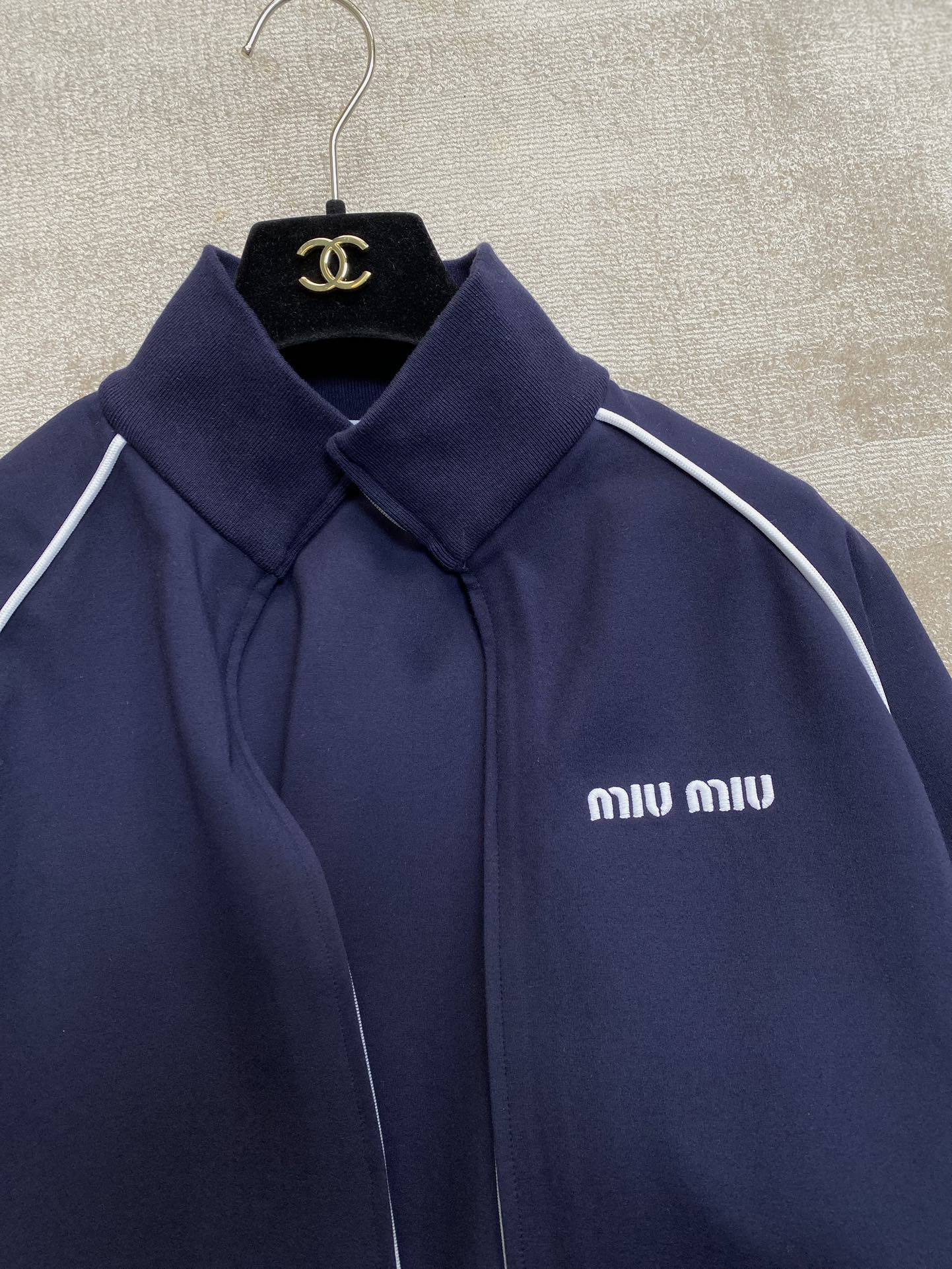 NIGO MiuMiu Women's Spring and Autumn Blue Letter Embroidery Zipper High Collar Long Sleeve Jacket #nigo72859