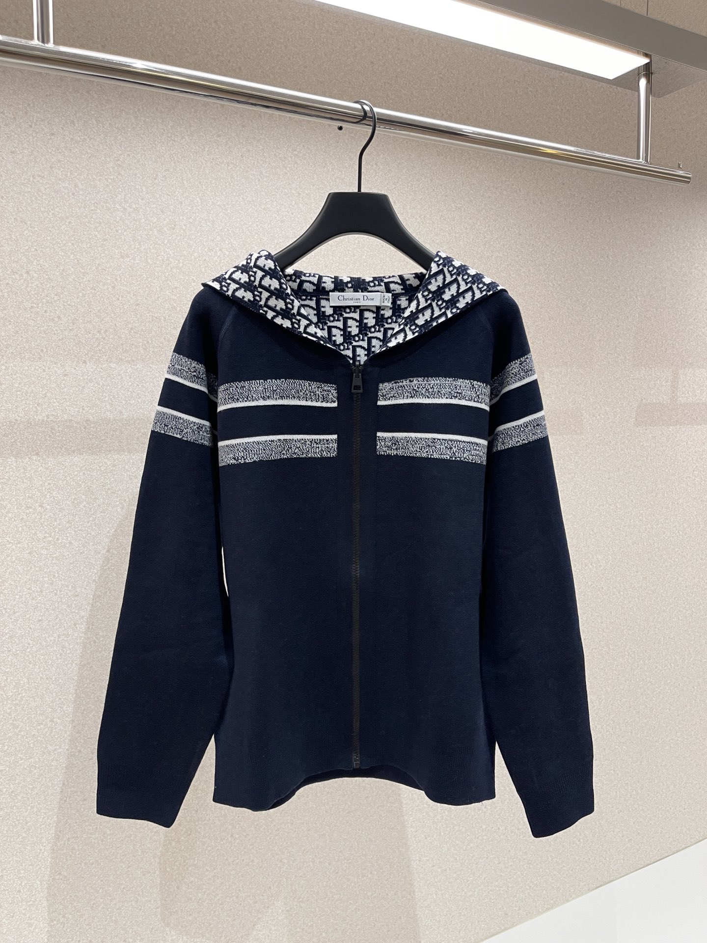 NIGO Dior Women's Autumn and Winter Letter Logo Reversible Long Sleeve Zipper Hooded Knit Jacket #nigo72751