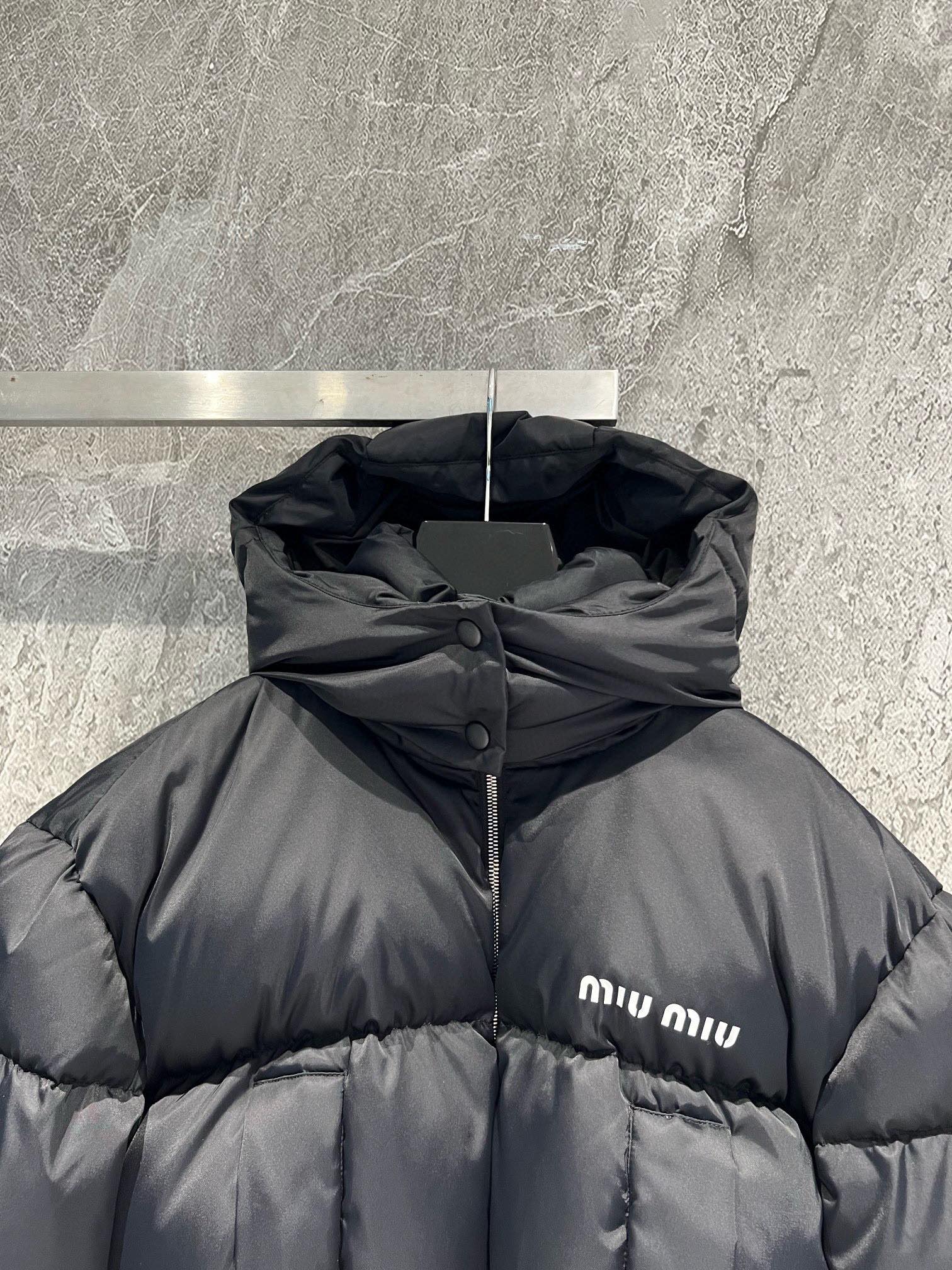 NIGO MiuMiu Women's Fall and Winter Black Logo Printed Fluffy Shorts Down Hooded Zipper Long Sleeve Jacket #nigo72333