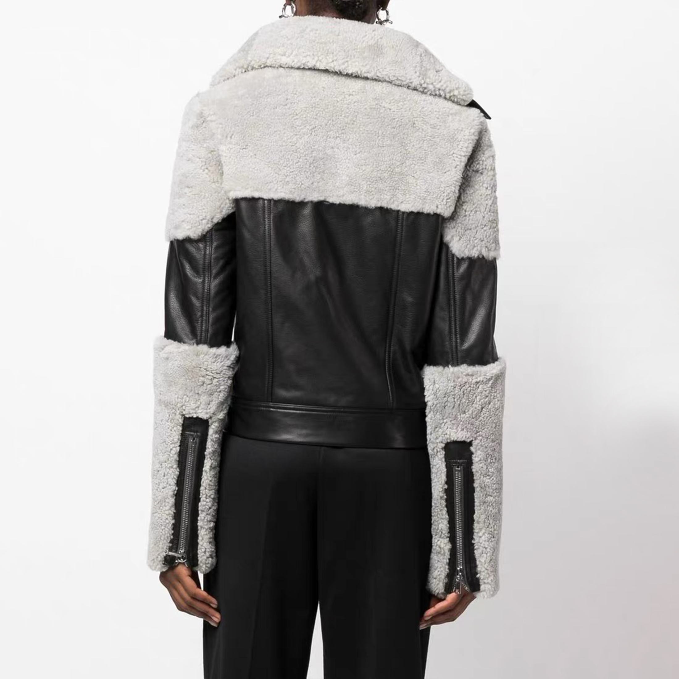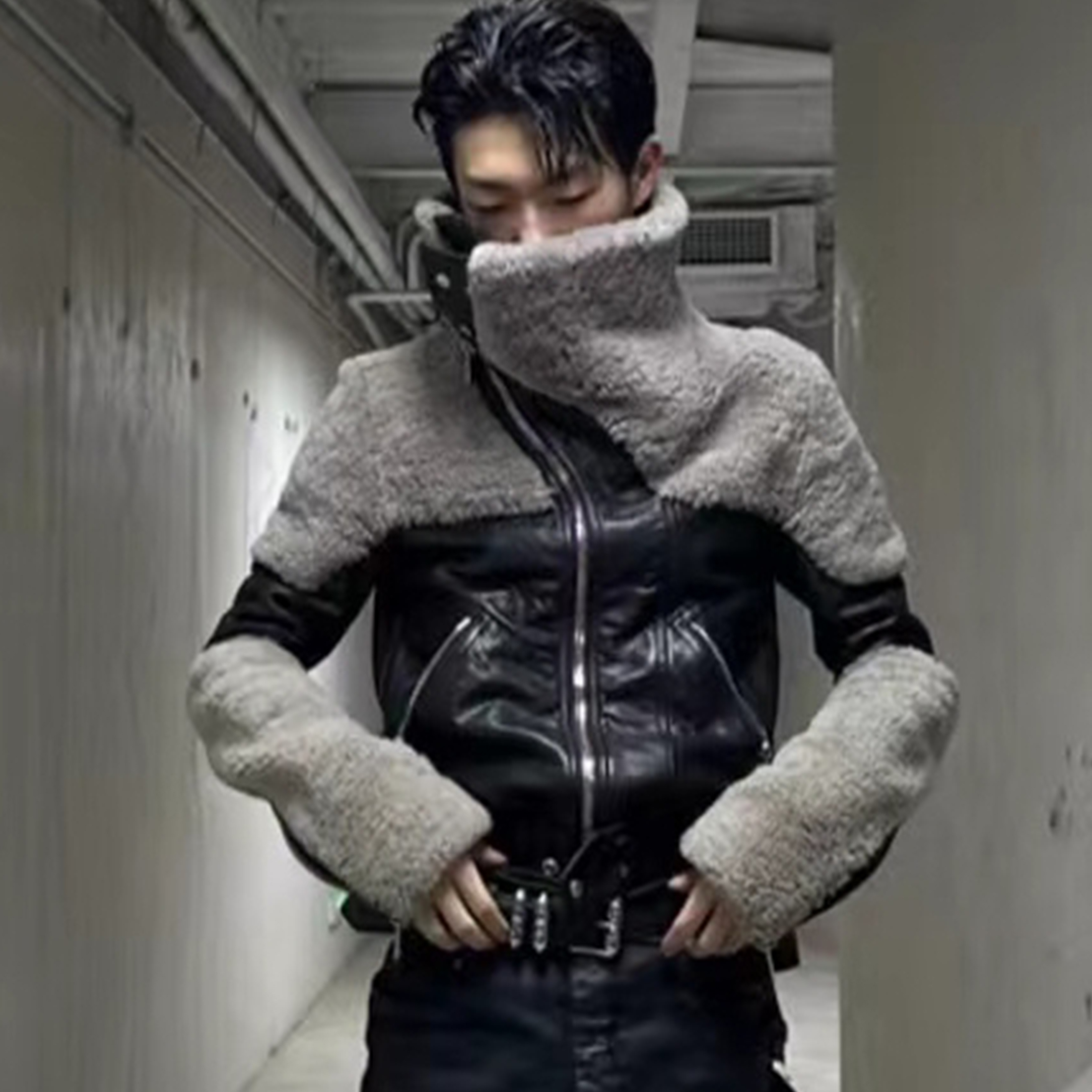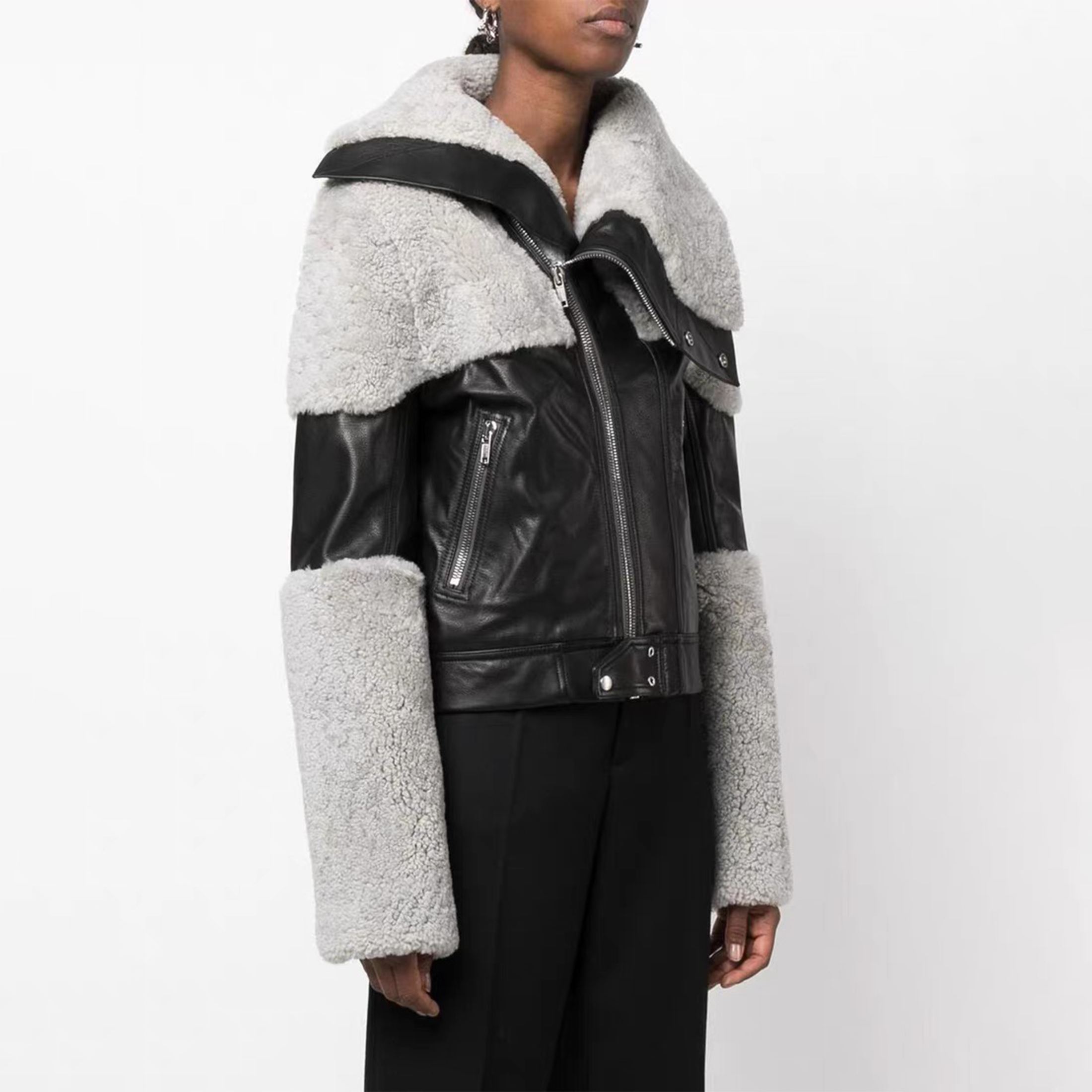NIGO Rick Owens Men's And Women's Patchwork Collar Leather Jacket Fashion High Street Cool Lapel Short Jacket Ngvp #nigo6628