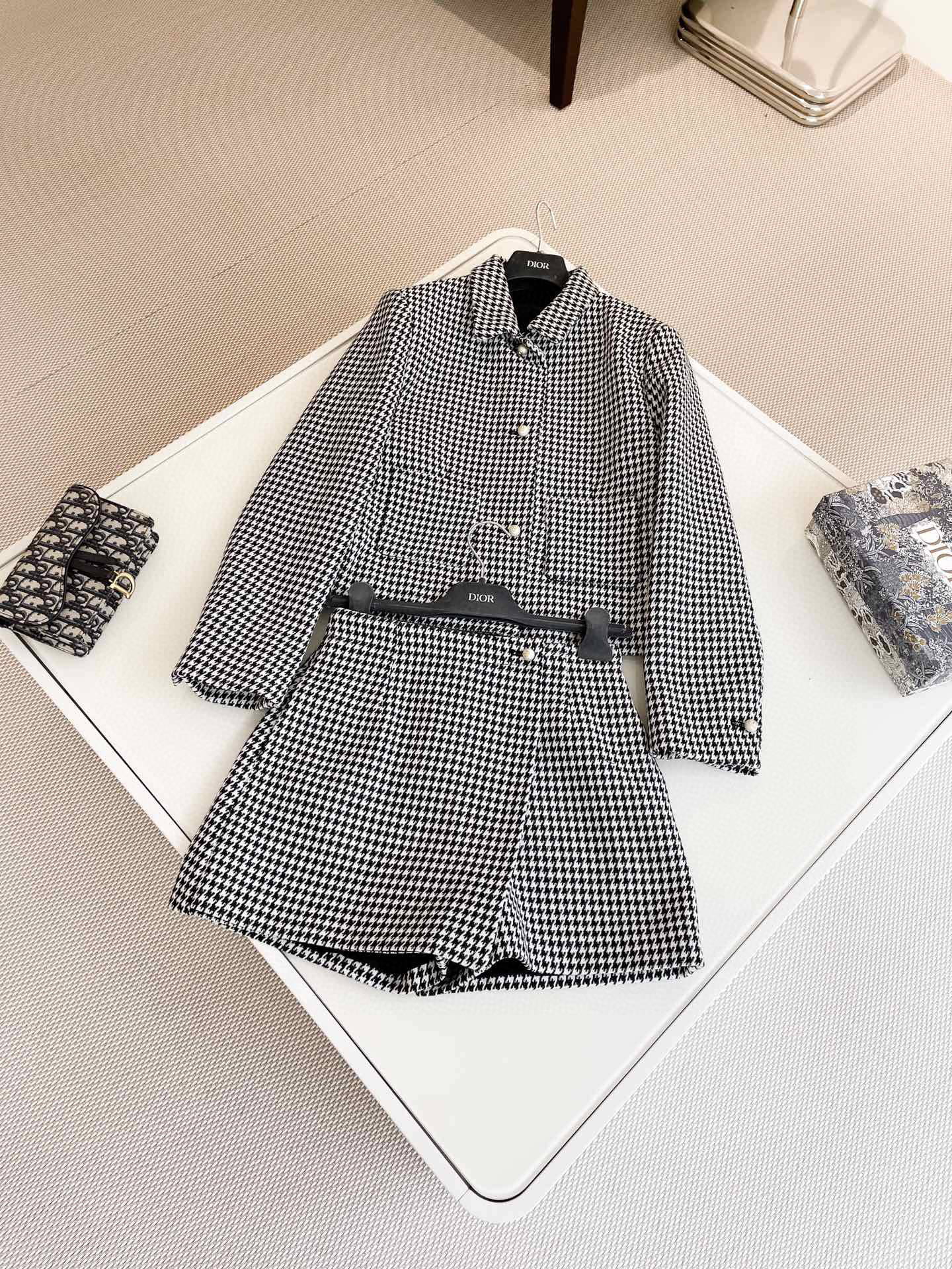 Dior Black and White Houndstooth Wool Cropped Jacket Skort Ngvp #nigo6855