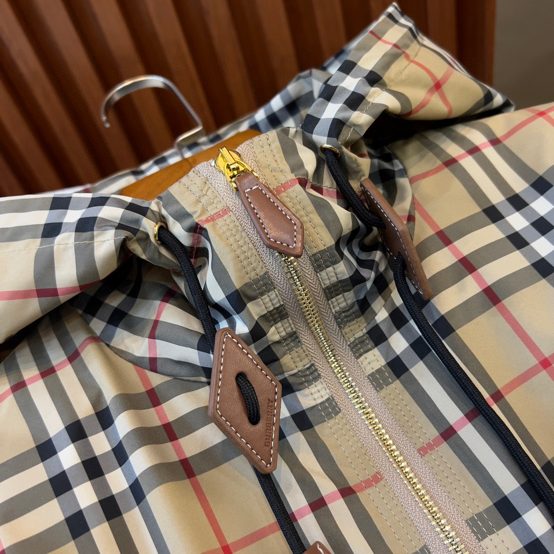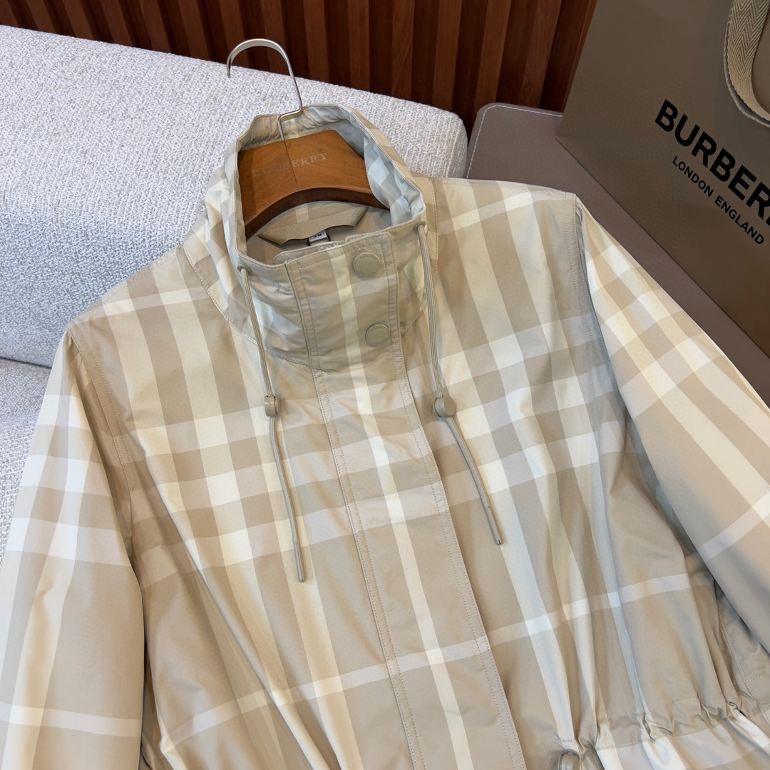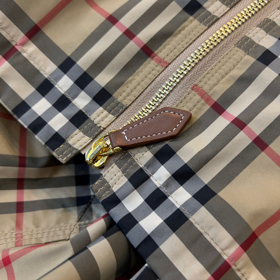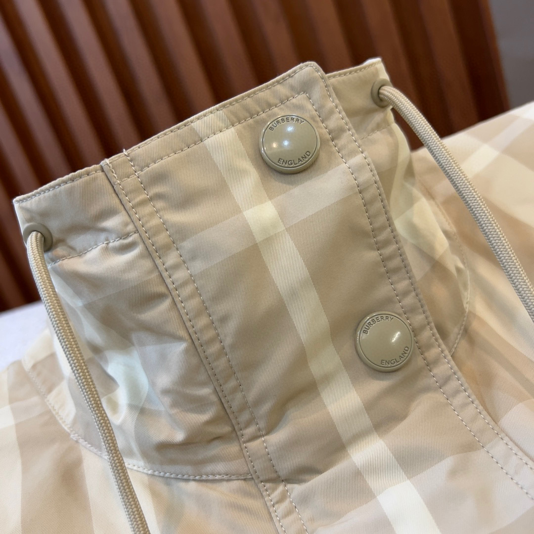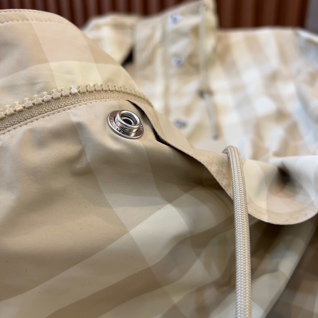 Burberry Check Nylon Funnel Neck Jacket Striped Drawstring Single Breasted #nigo96693