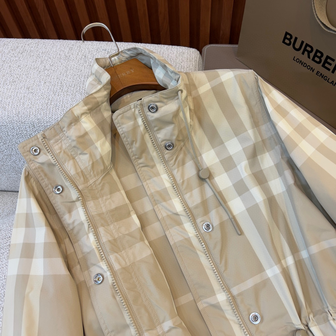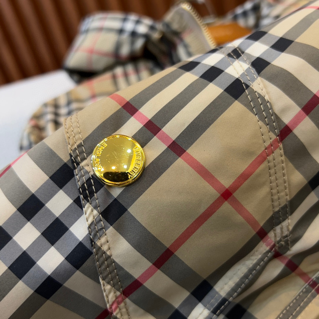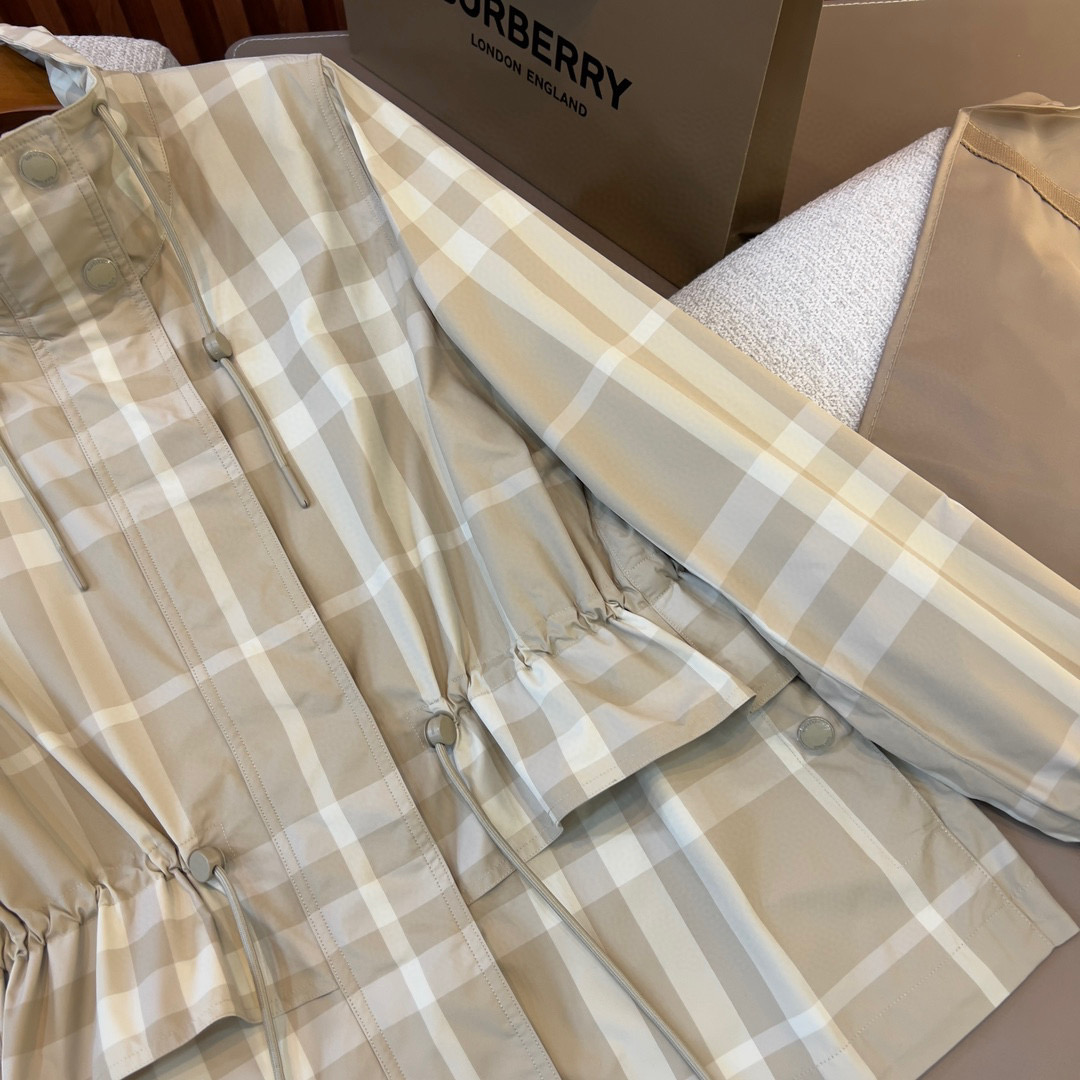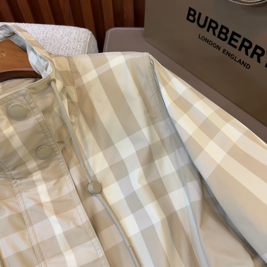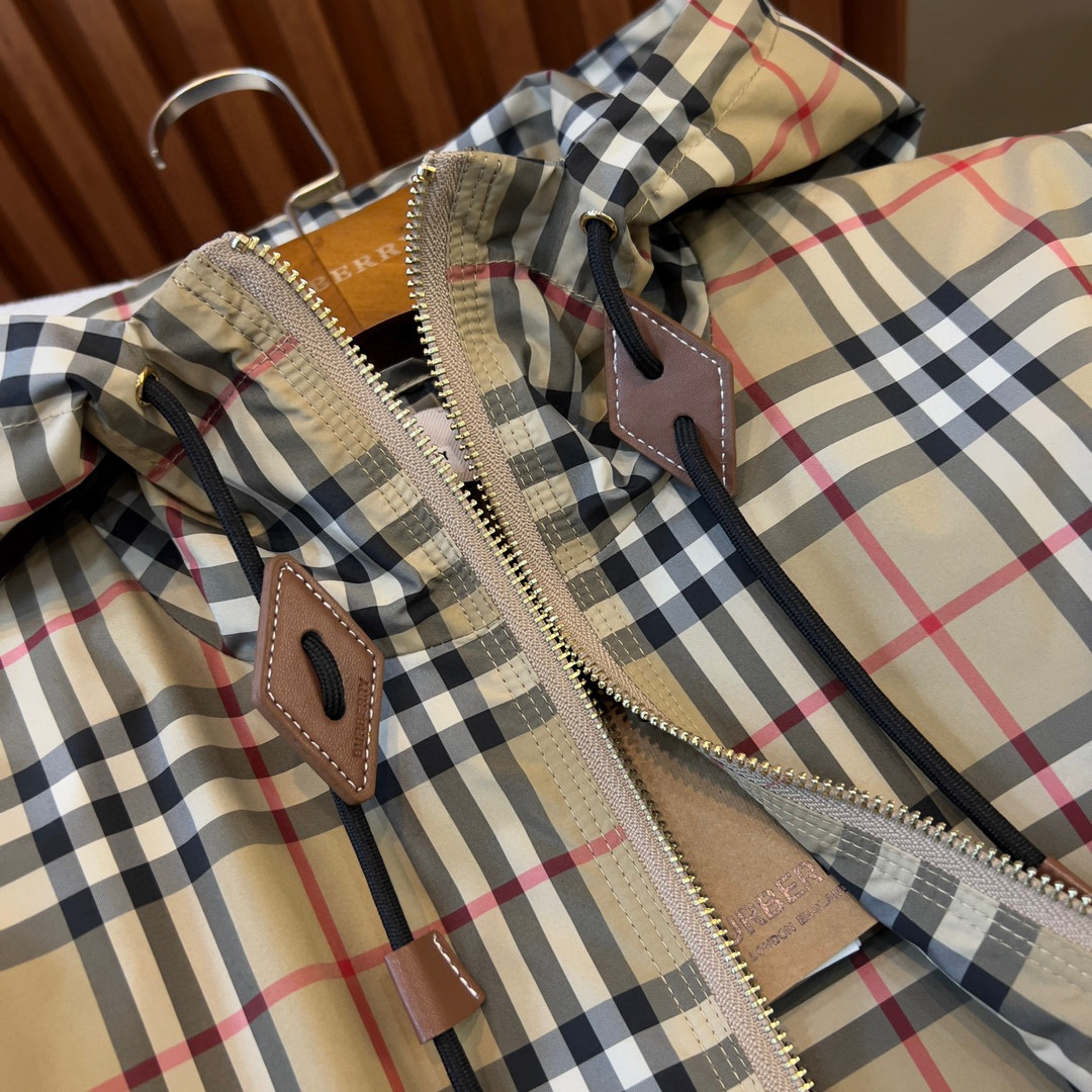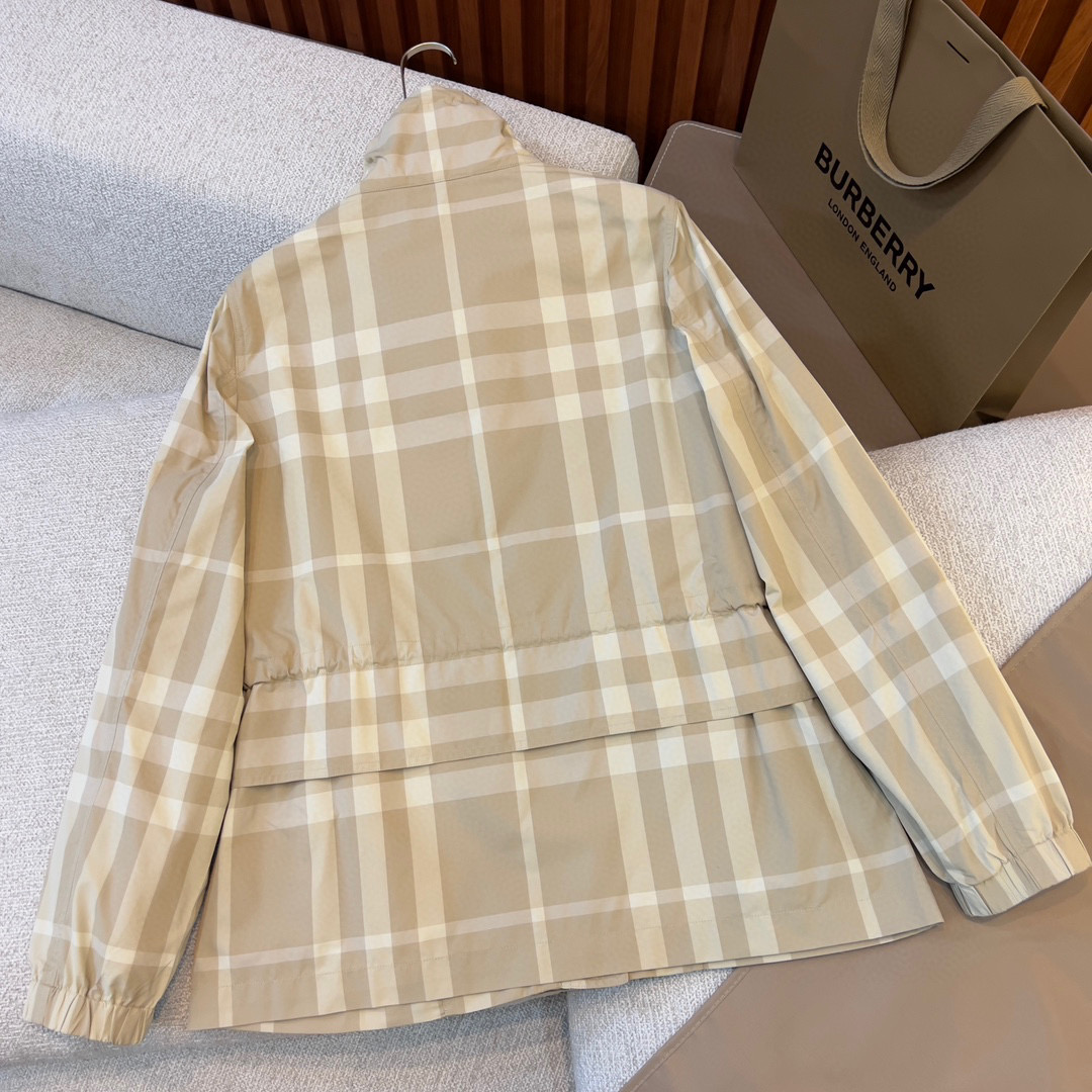 Burberry Check Nylon Funnel Neck Jacket Striped Drawstring Single Breasted #nigo96693