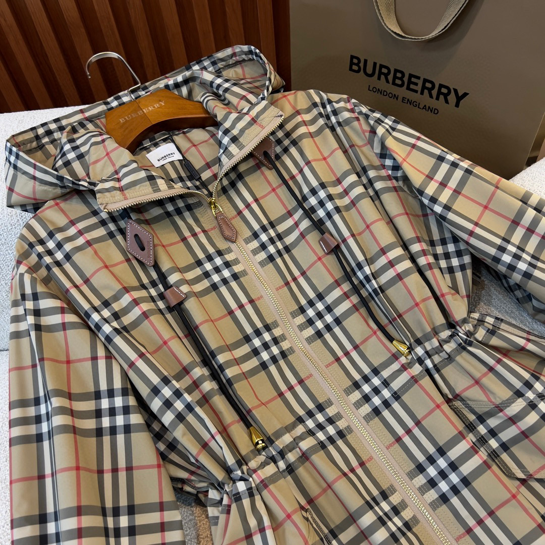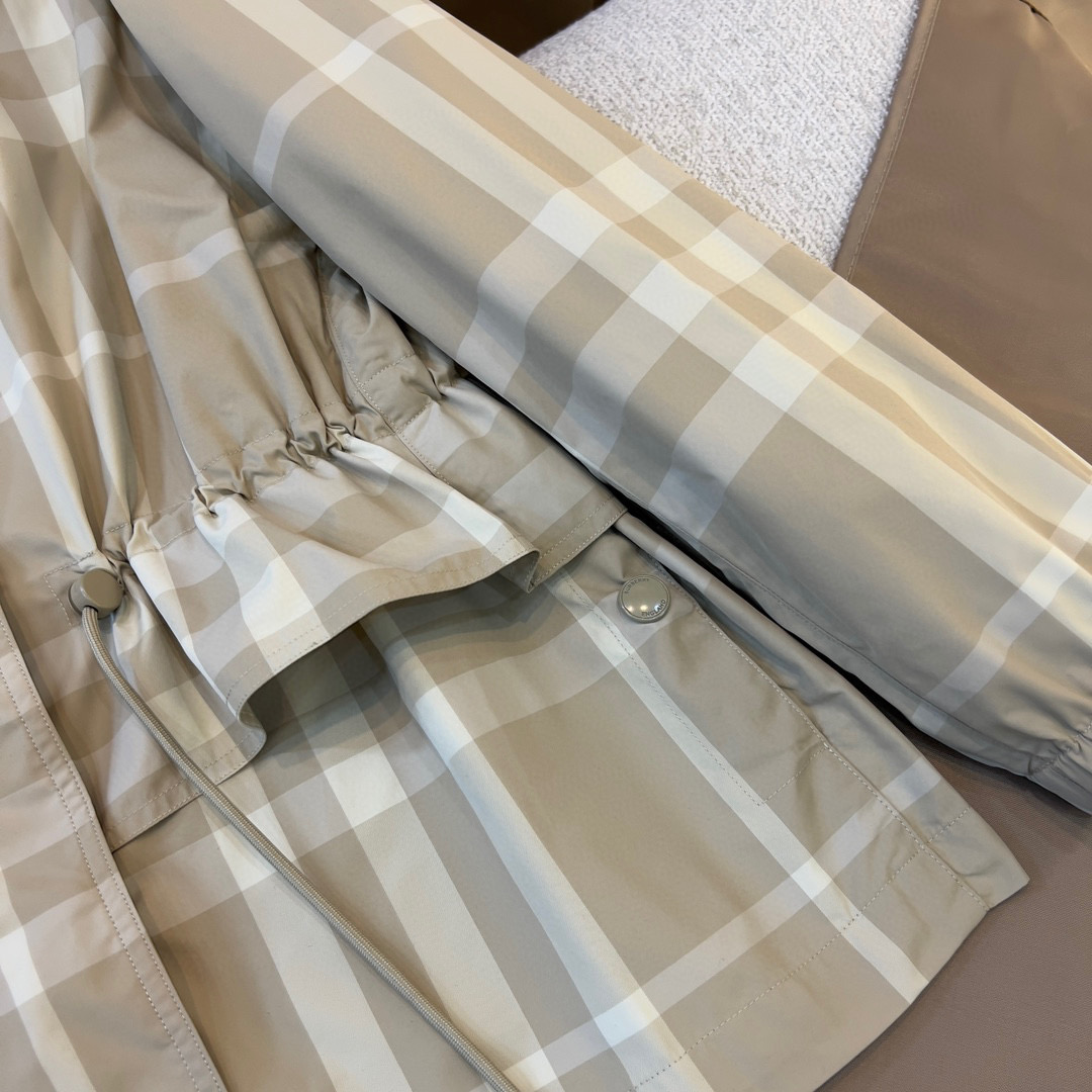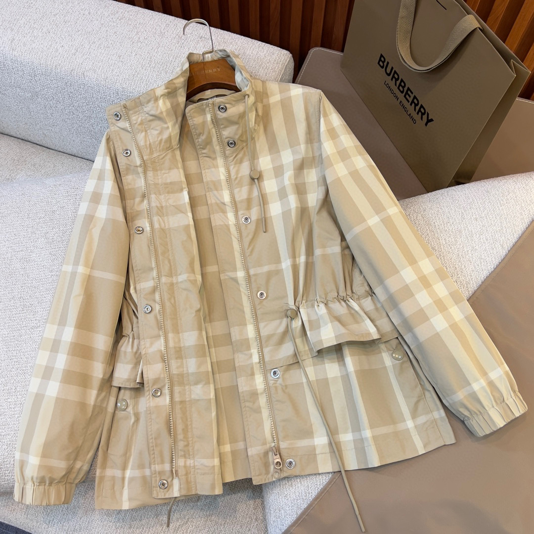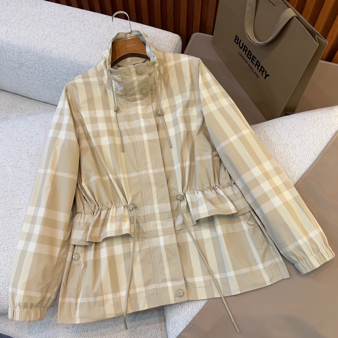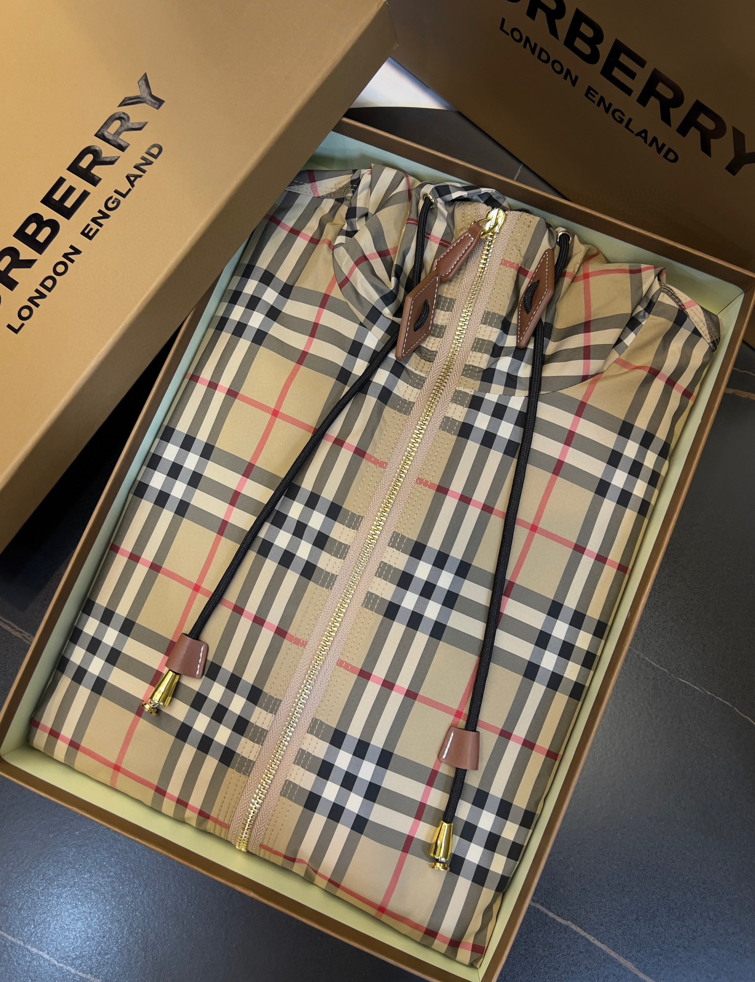 Burberry Check Nylon Funnel Neck Jacket Striped Drawstring Single Breasted #nigo96693
