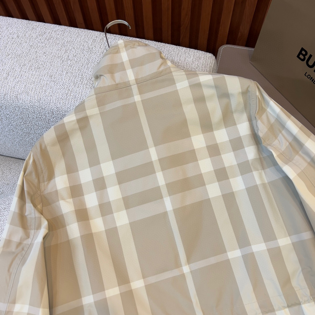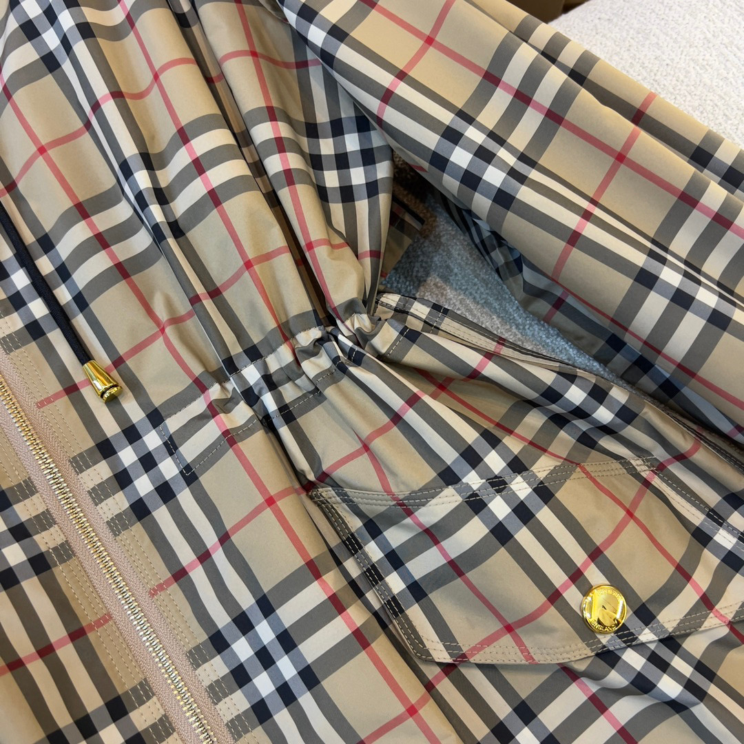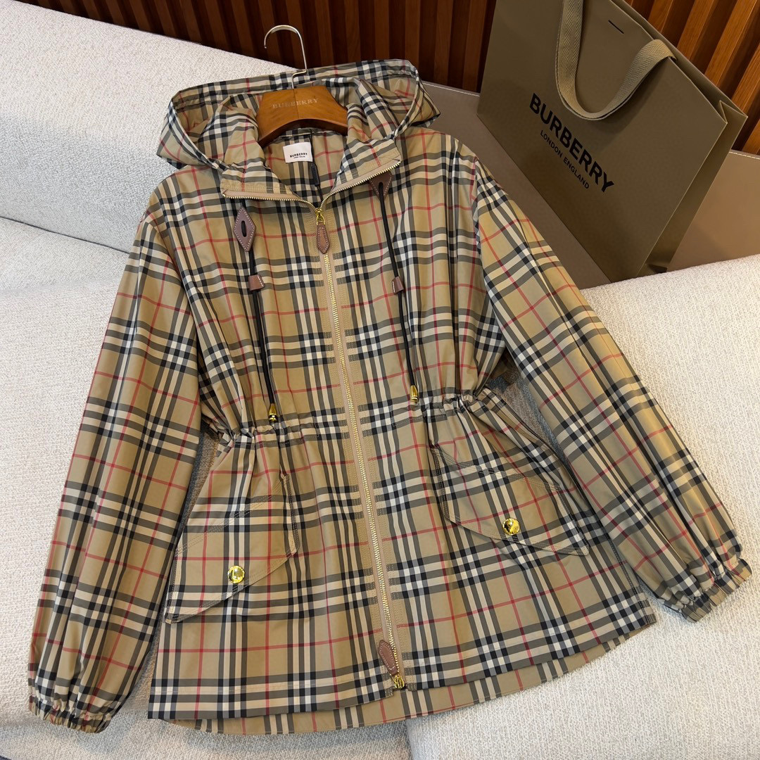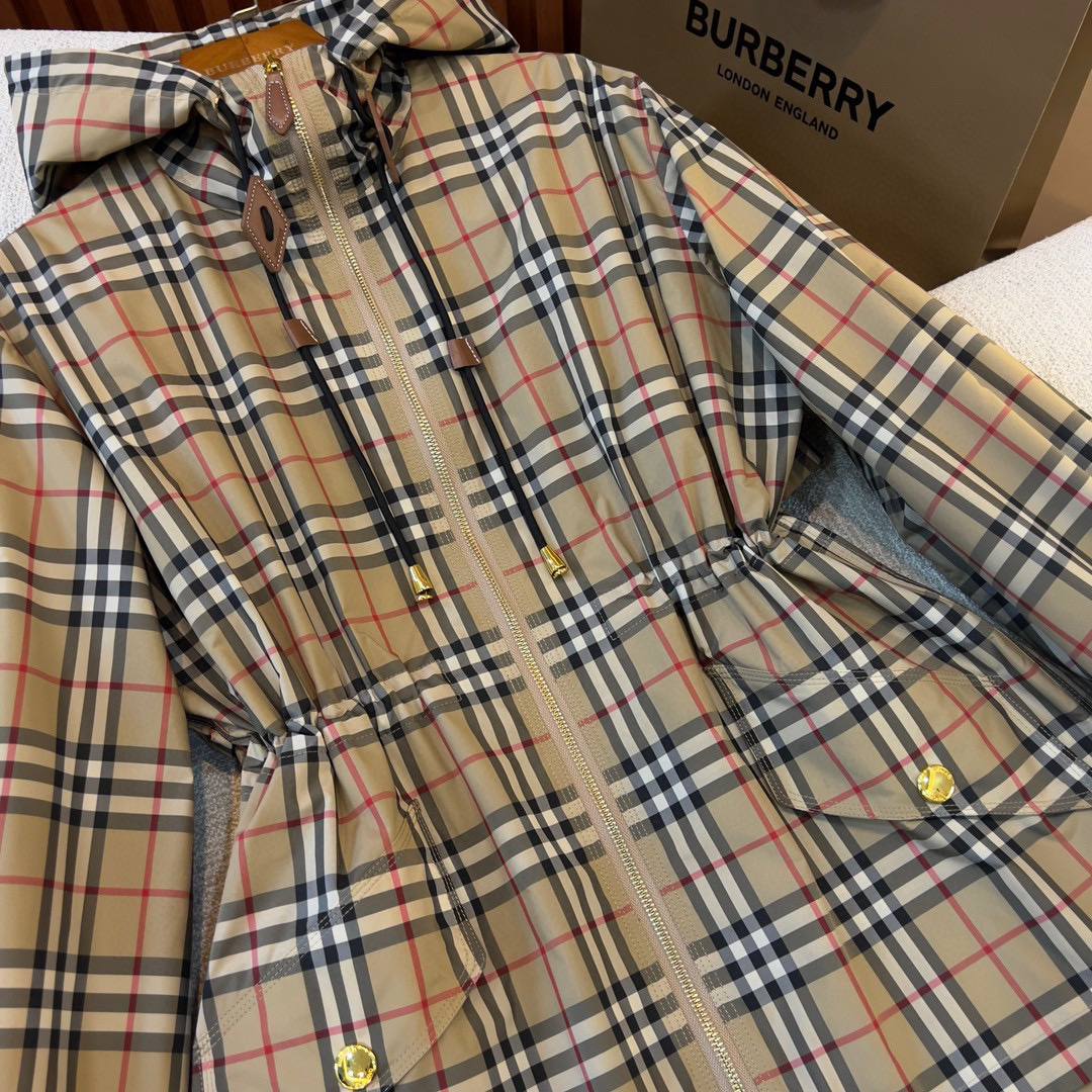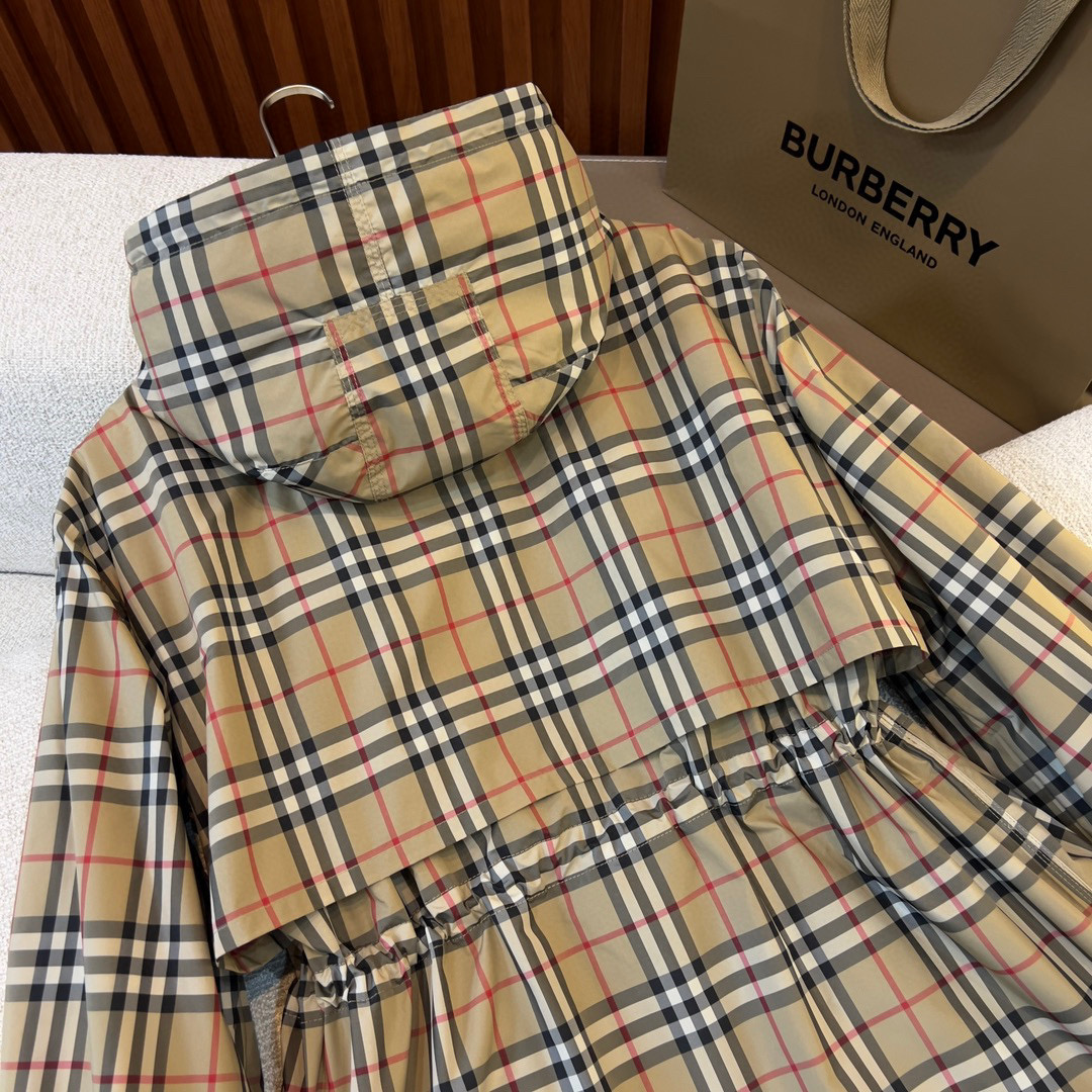 Burberry Check Nylon Funnel Neck Jacket Striped Drawstring Single Breasted #nigo96693