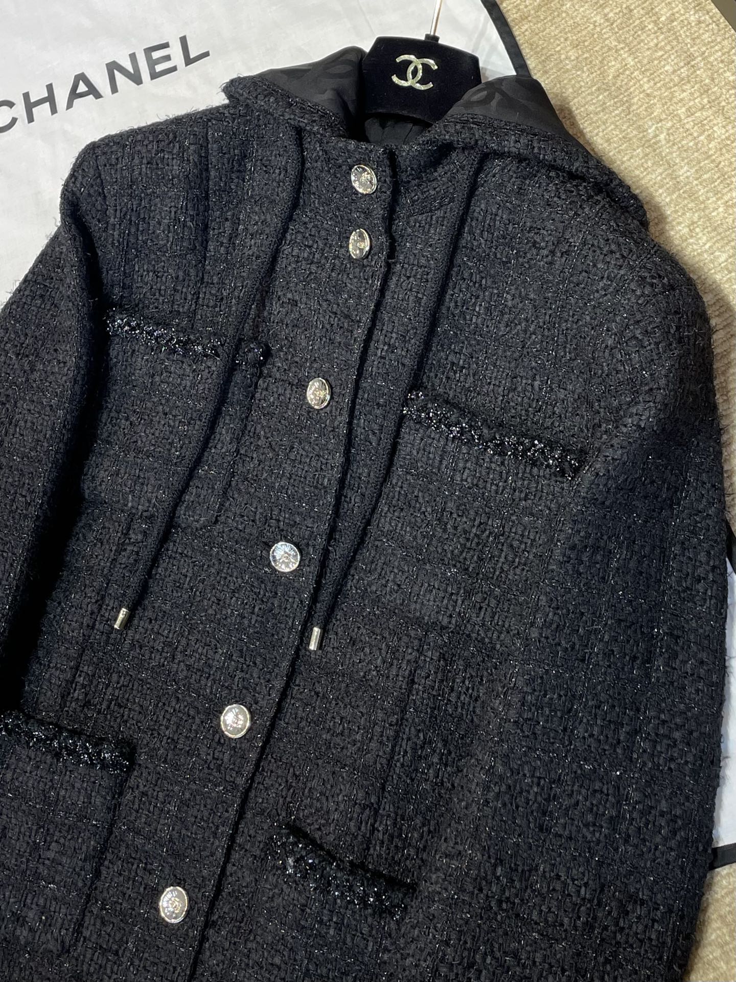 NIGO Chanel Women's Fall/Winter Multi-Pocket Tweed Solid Color Single-Breasted Long-Sleeve Hooded Jacket Ngvp #nigo2371