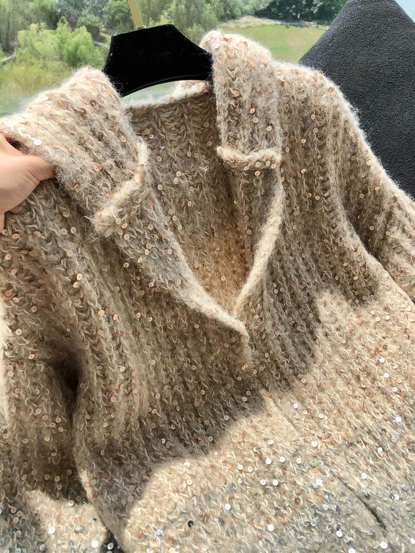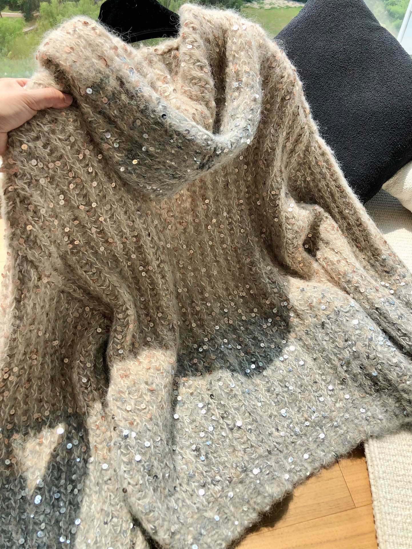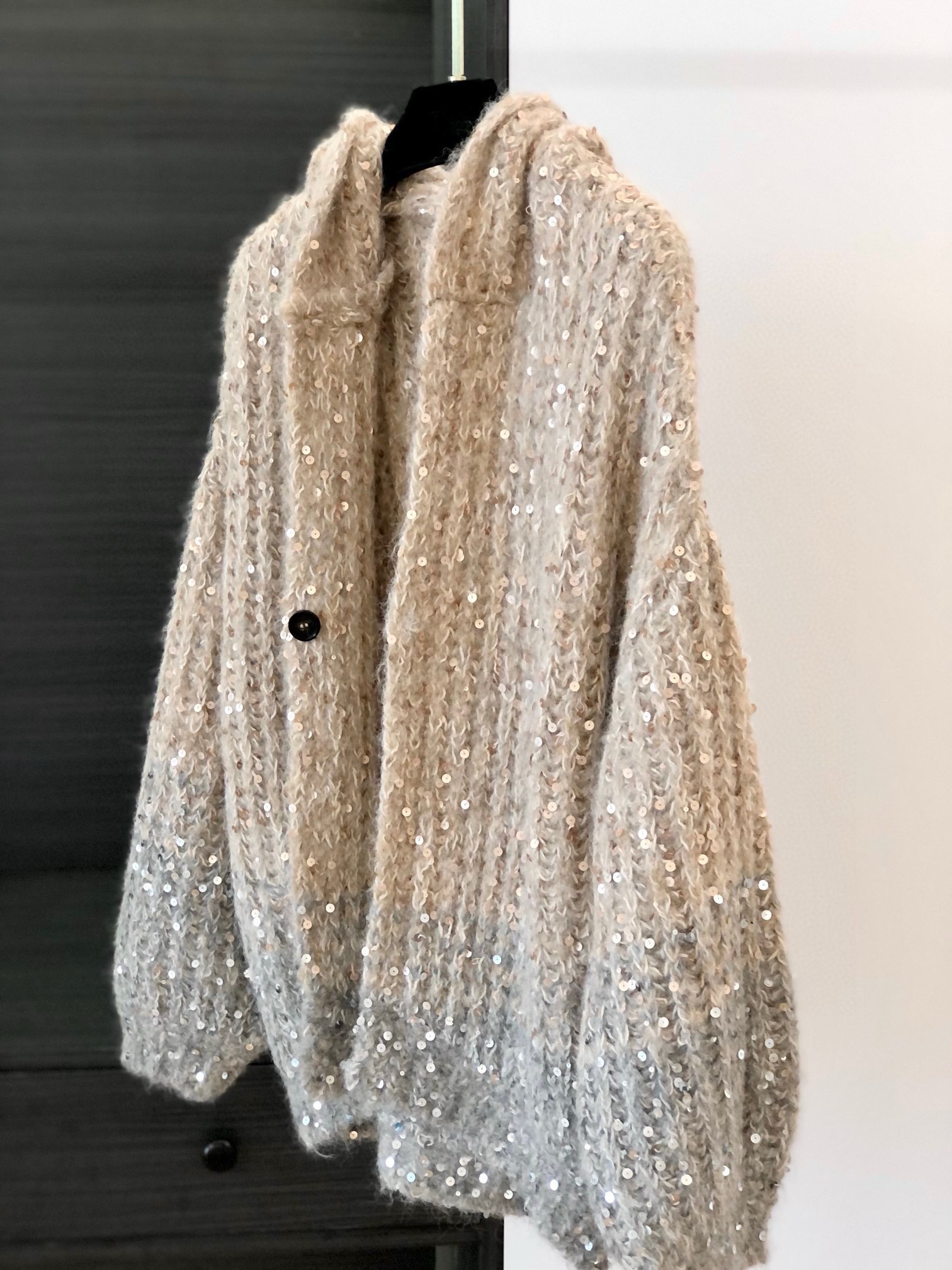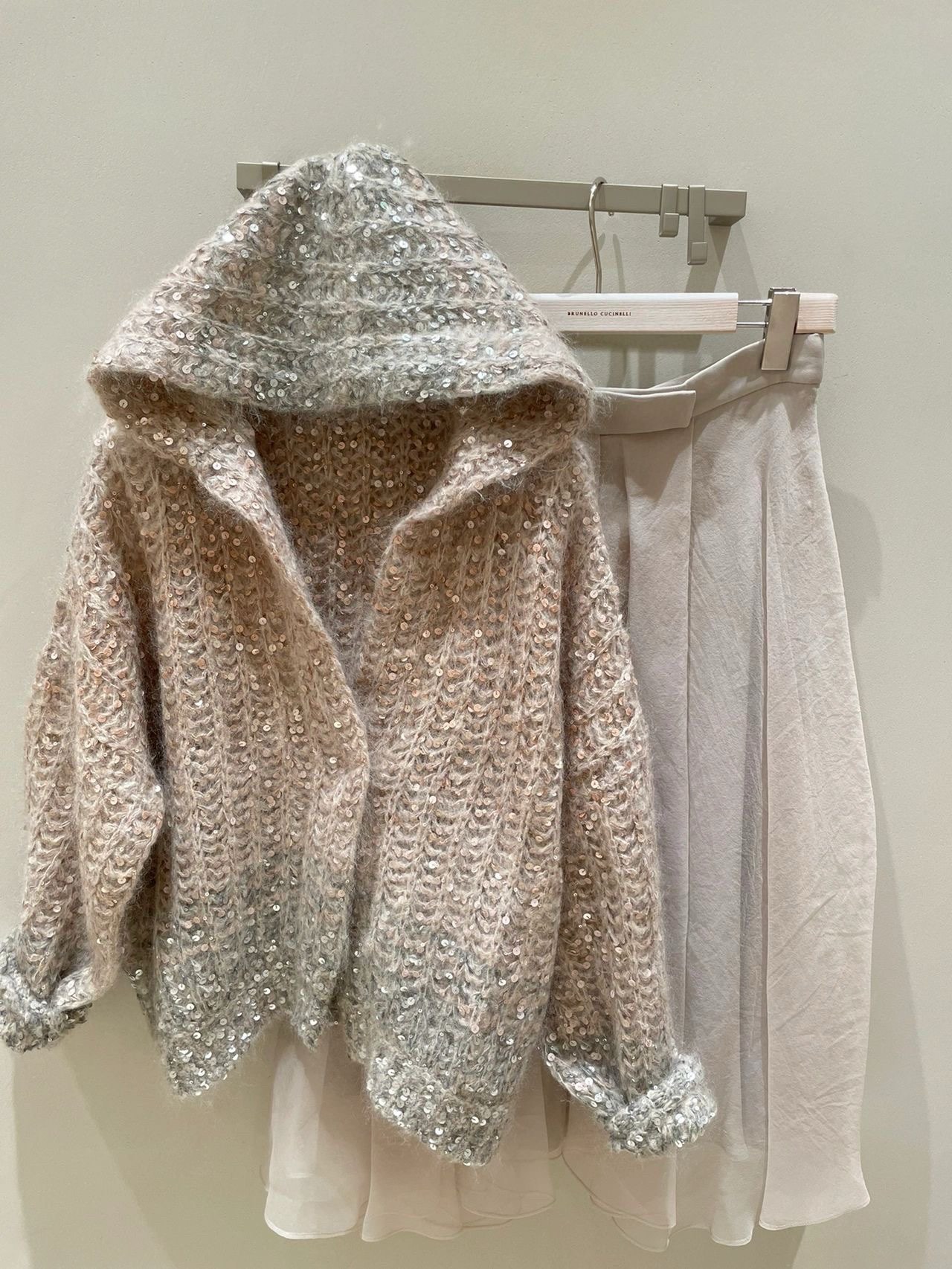 NIGO Brunello Cucinelli Women's Spring and Autumn Gradient Glitter Hooded Knitted Sweater Fashion Casual Knitted Button Open Sweater Ngvp #nigo6624