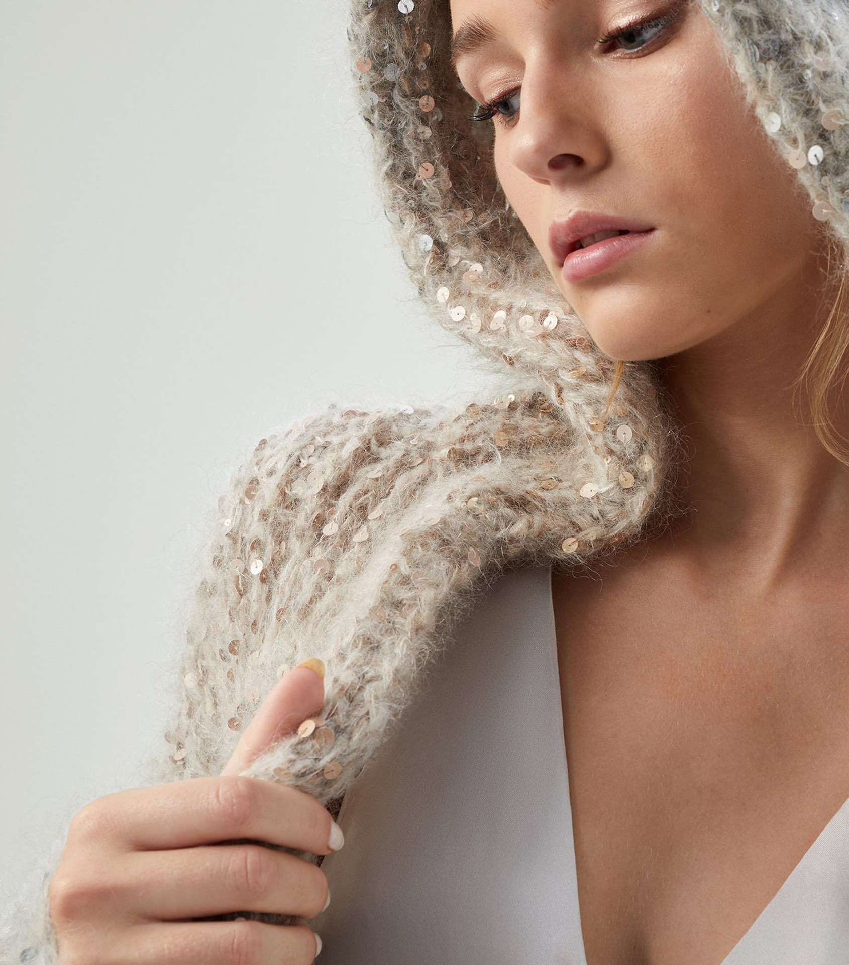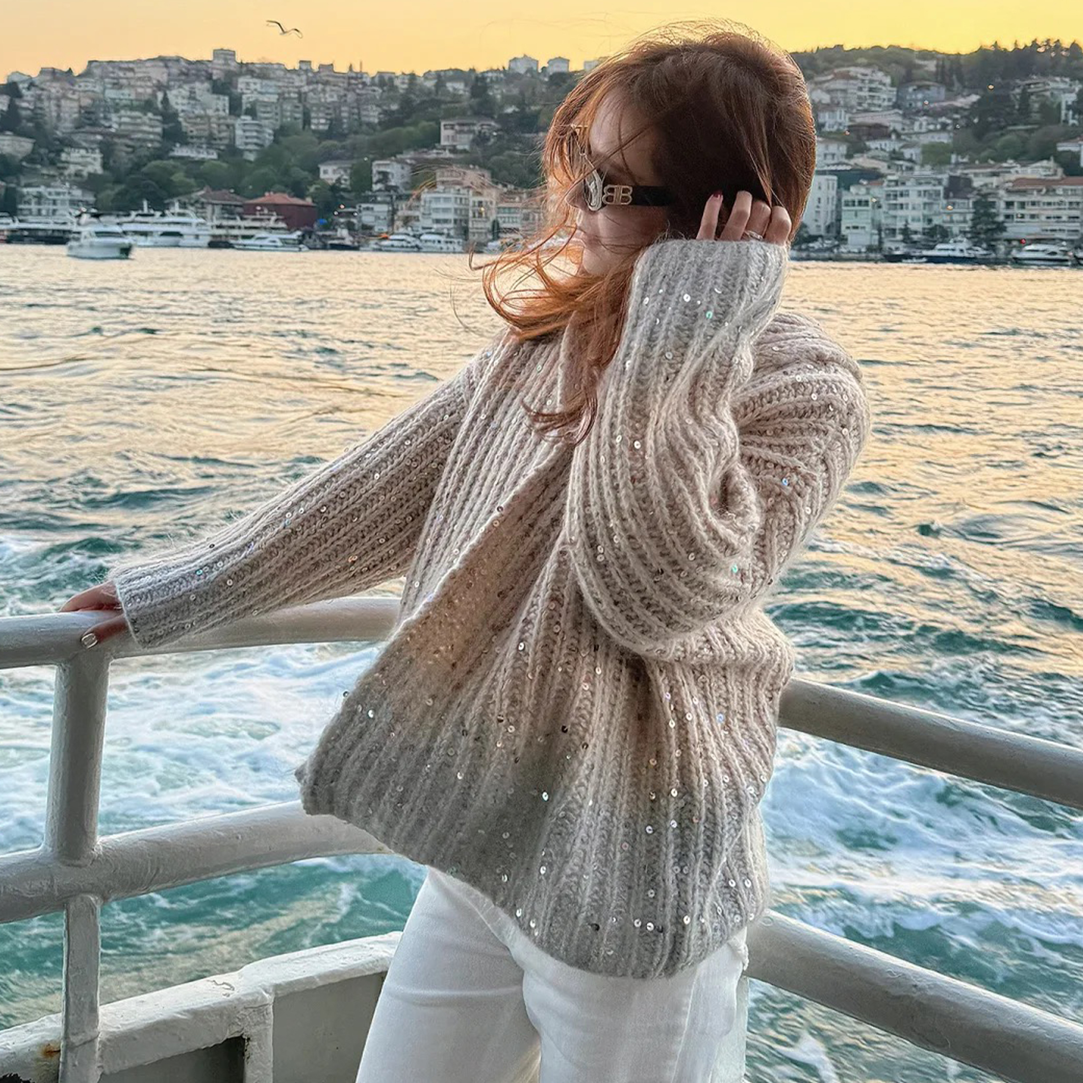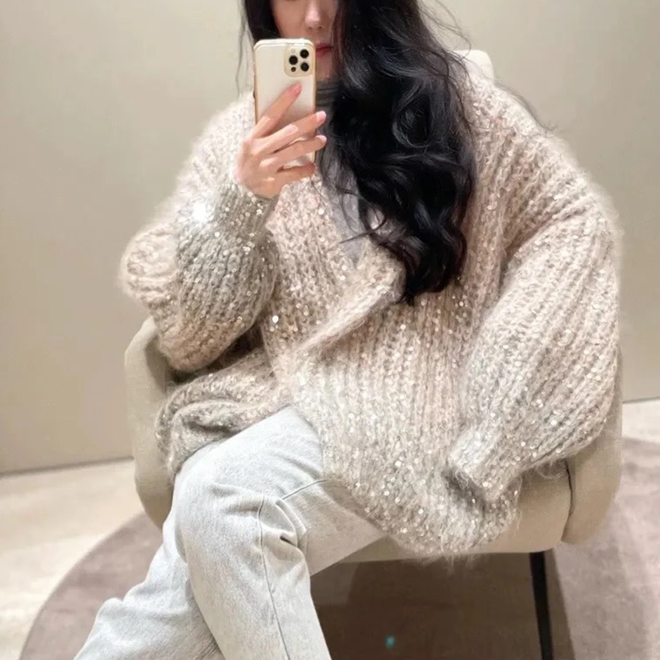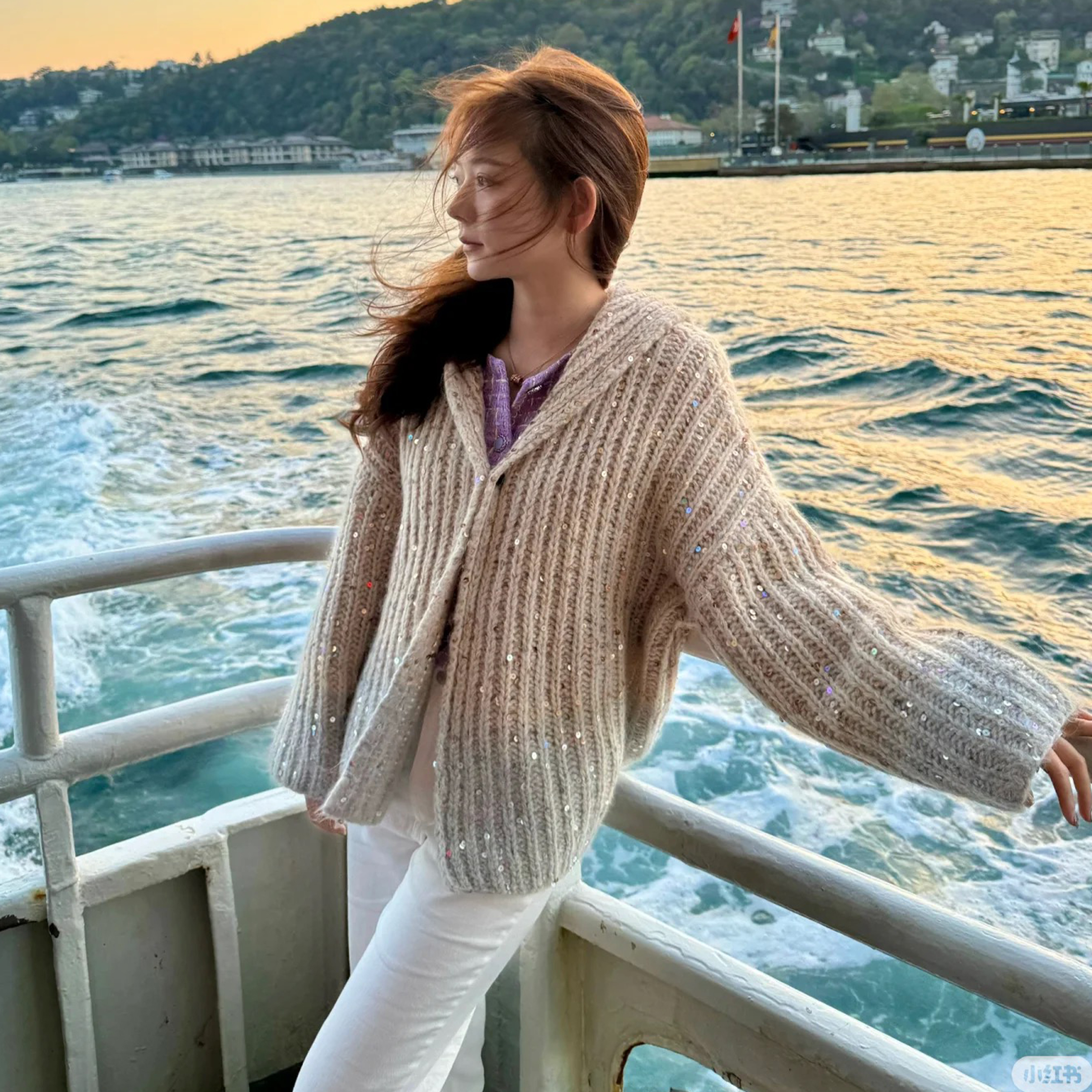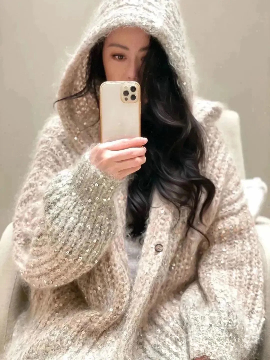 NIGO Brunello Cucinelli Women's Spring and Autumn Gradient Glitter Hooded Knitted Sweater Fashion Casual Knitted Button Open Sweater Ngvp #nigo6624