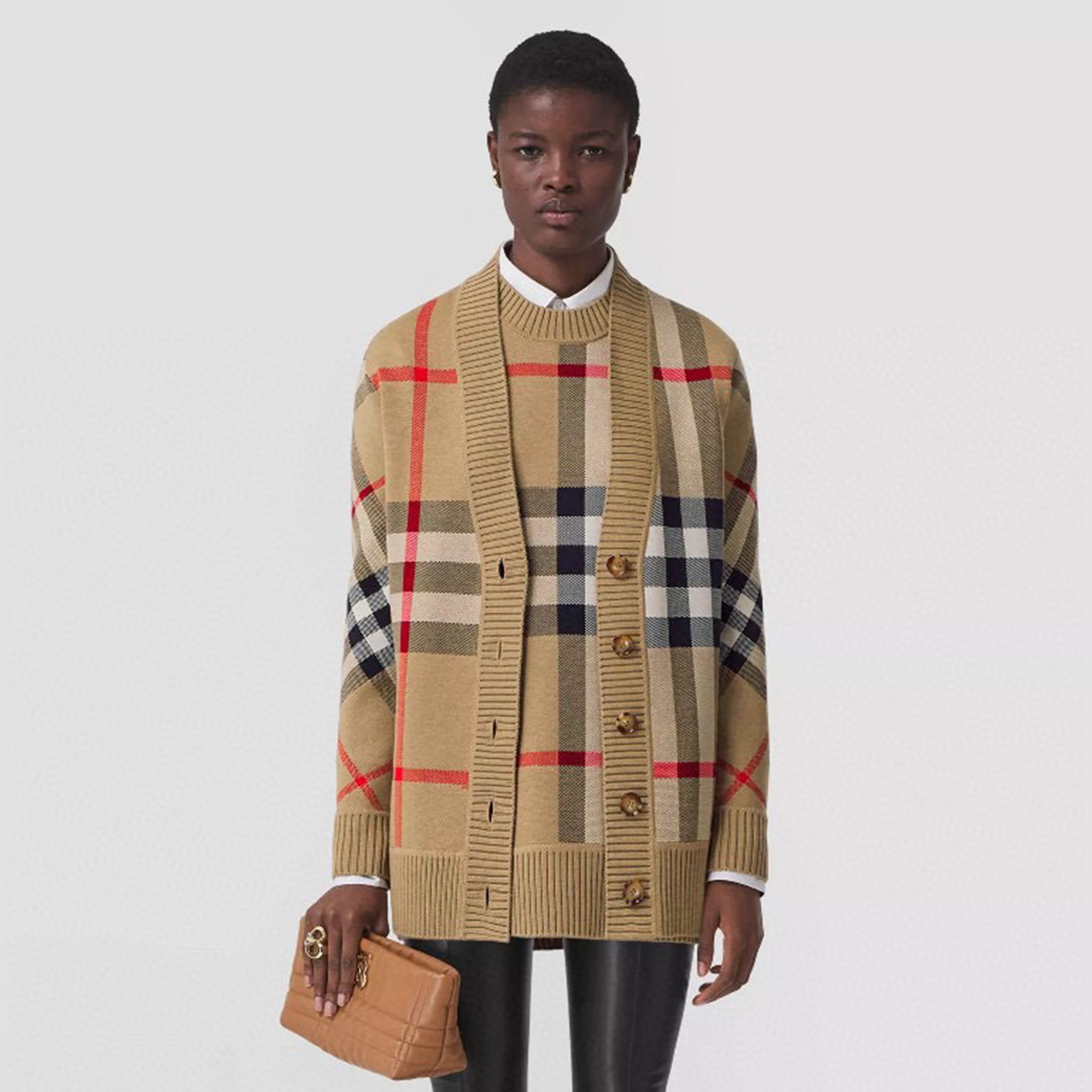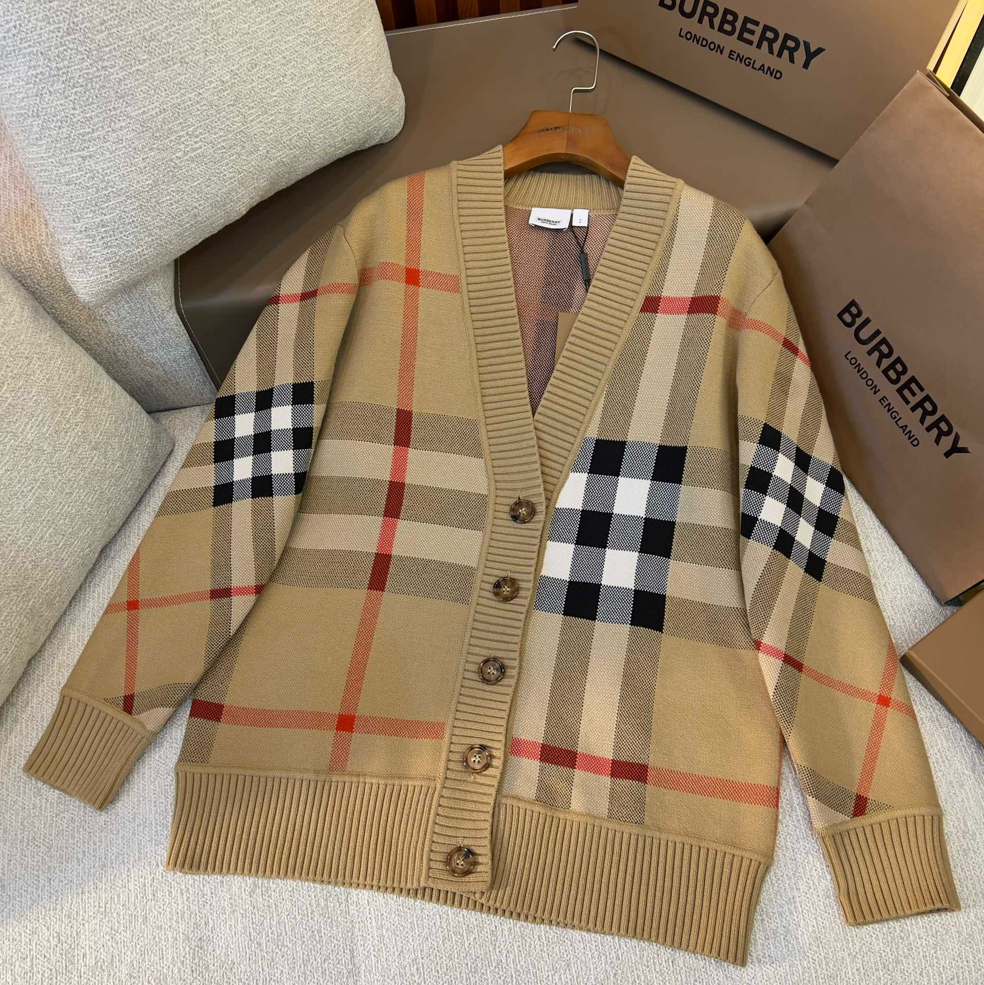 NIGO Burberry Women's Plaid Blended V-neck Jacquard Knitted Cardigan Button Fashion Casual Sweater #nigo71422