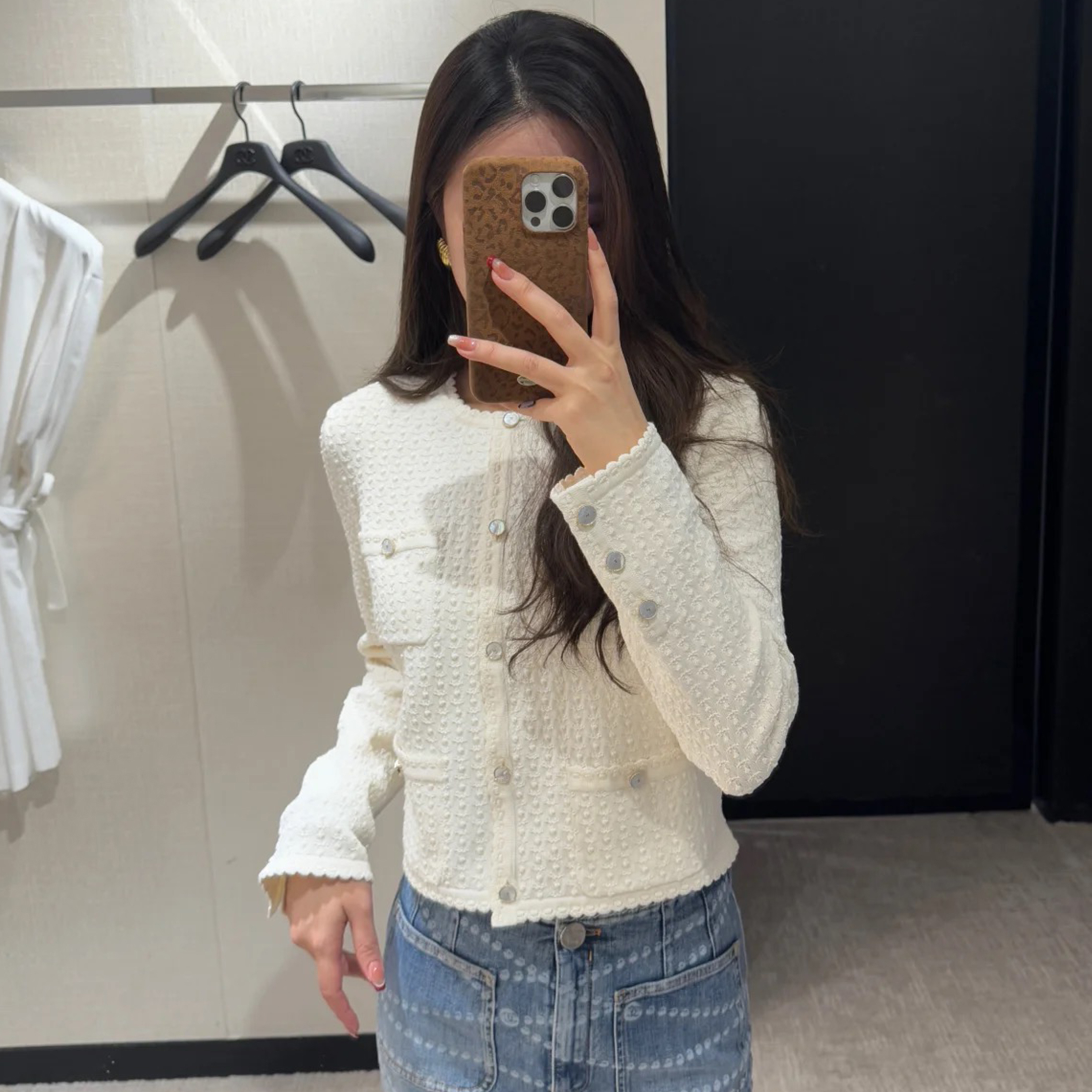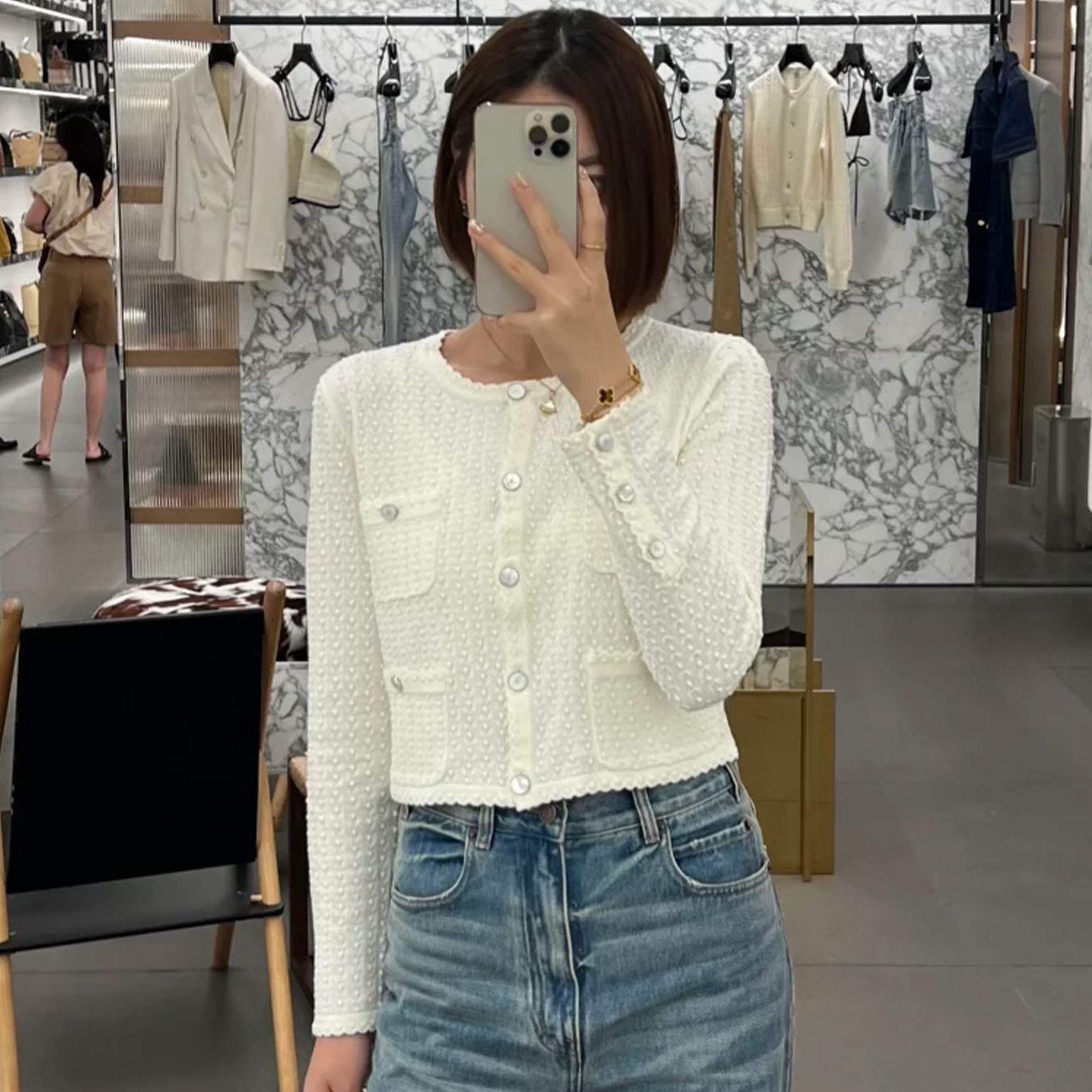 NIGO Chanel Women's Spring And Summer Single-breasted Solid Colour Cardigan Knitted Jumper Simple Versatile Round Neck Single-breasted Knitted Cardigan Ngvp #nigo1624