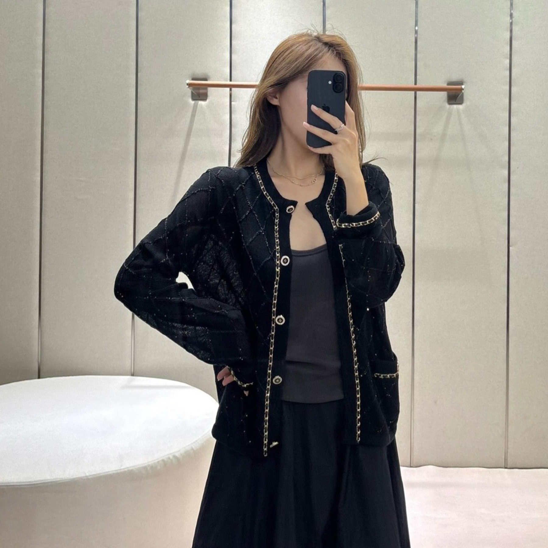 NIGO Chanel Women's Spring/autumn Black And White Double C Series Fashionable Elegant Delicate Cardigan Gold Line Single-breasted Knitted Sweater Ngvp #nigo2242