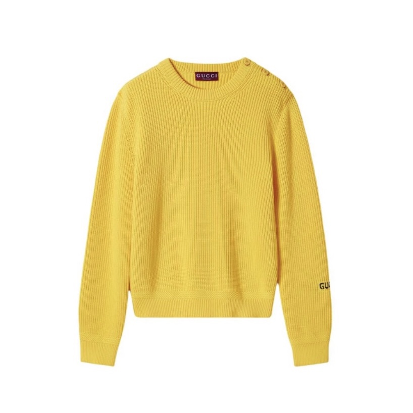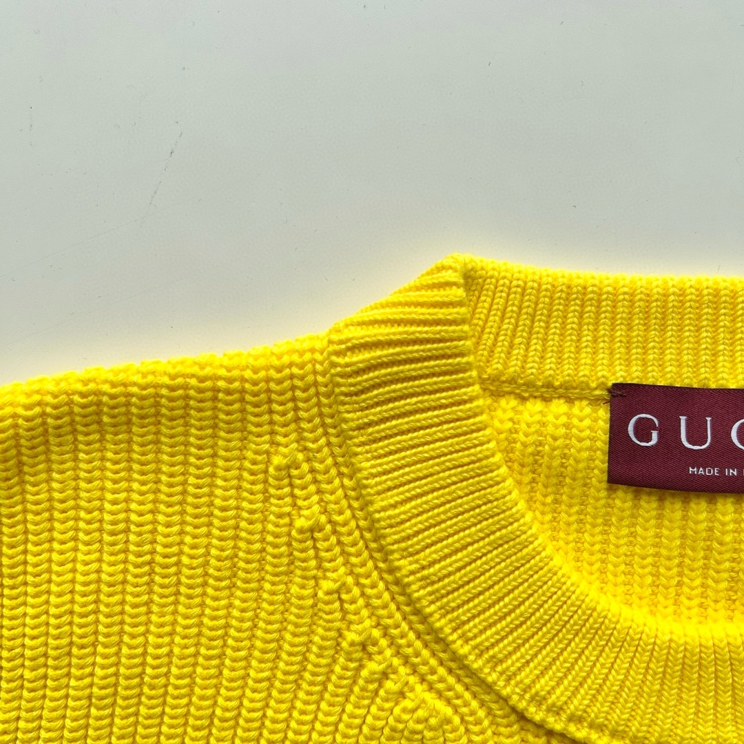 NIGO Gucci Men's Spring Summer Yellow Round Neck Loose Knit Long Sleeve Sweater #nigo72843
