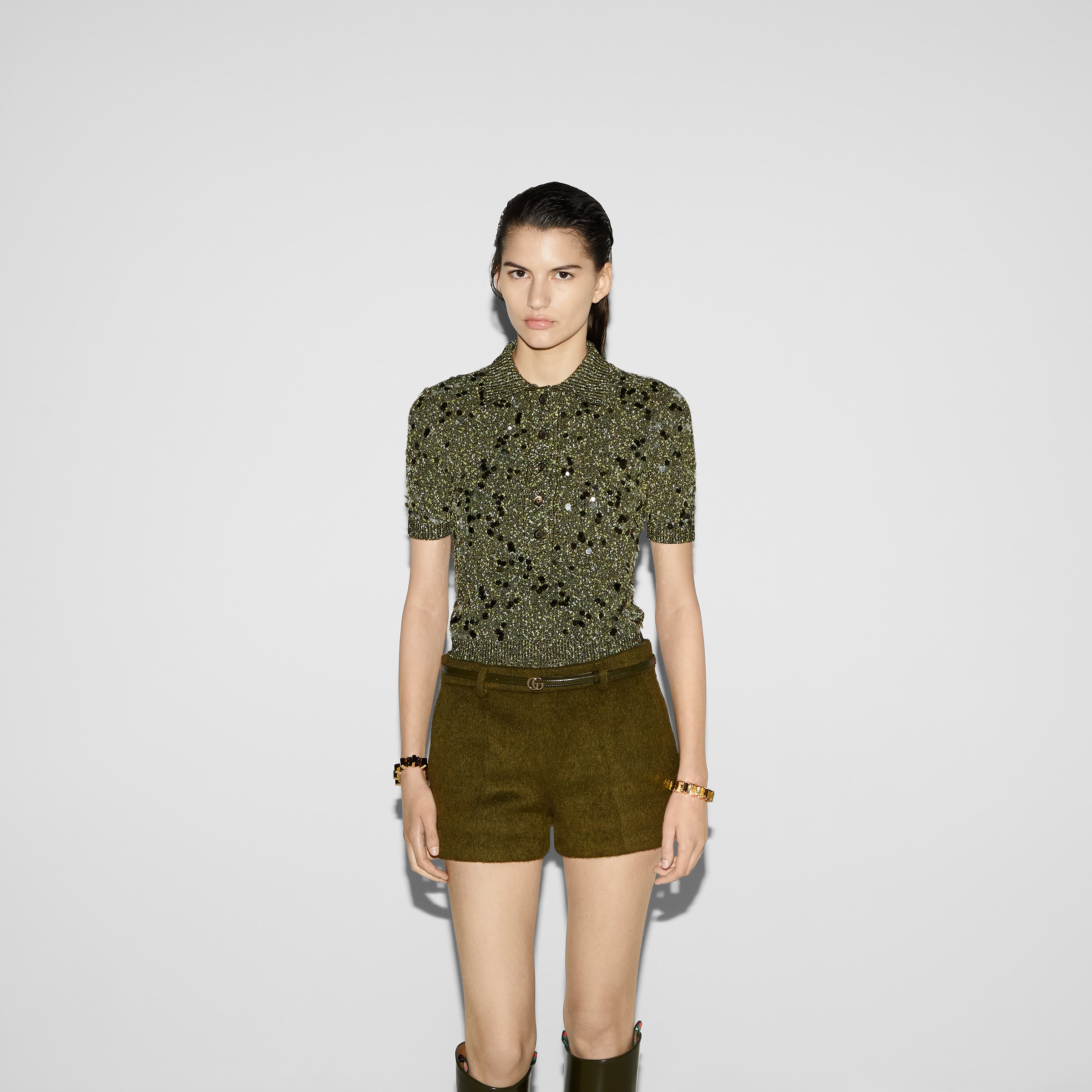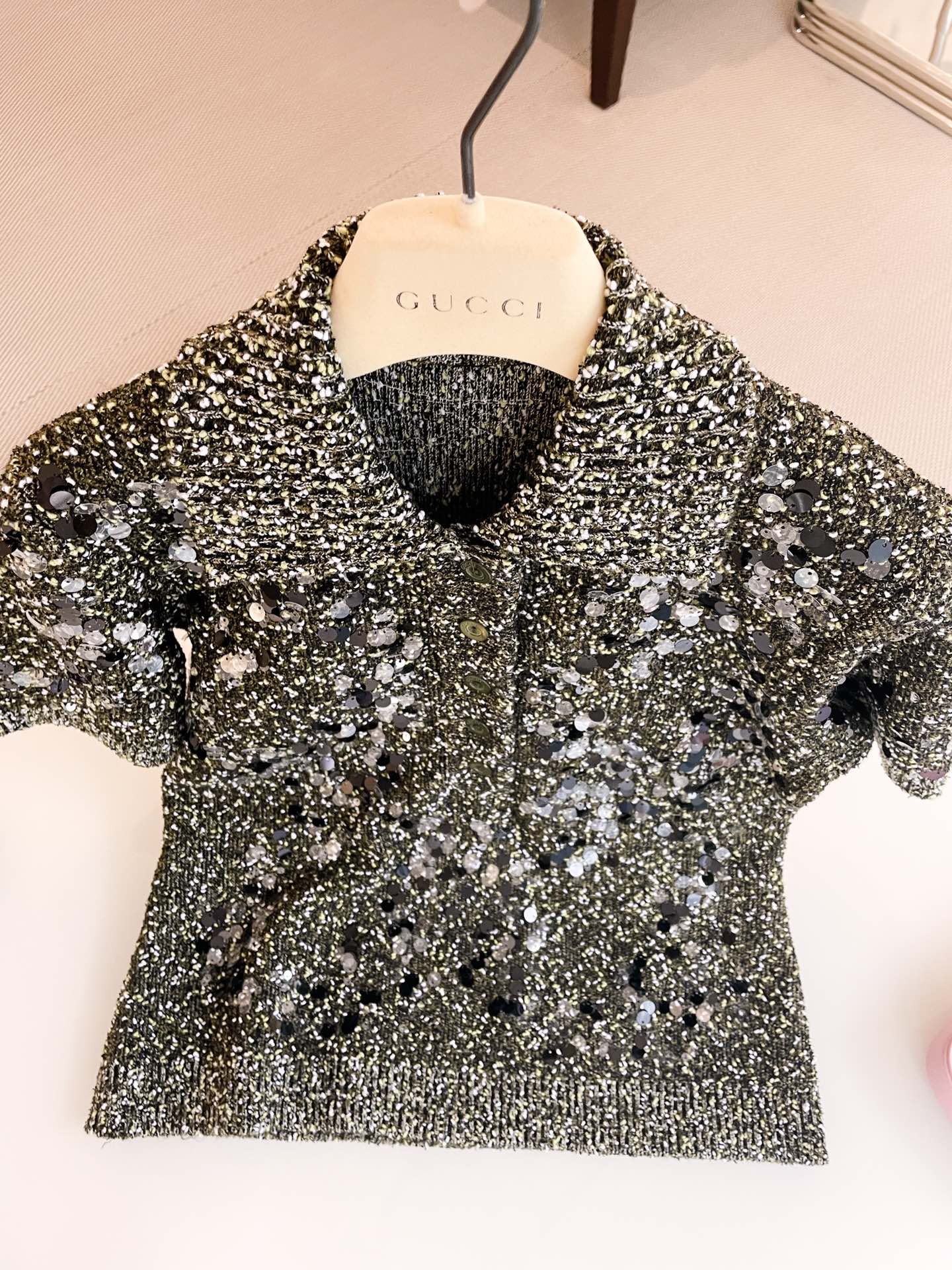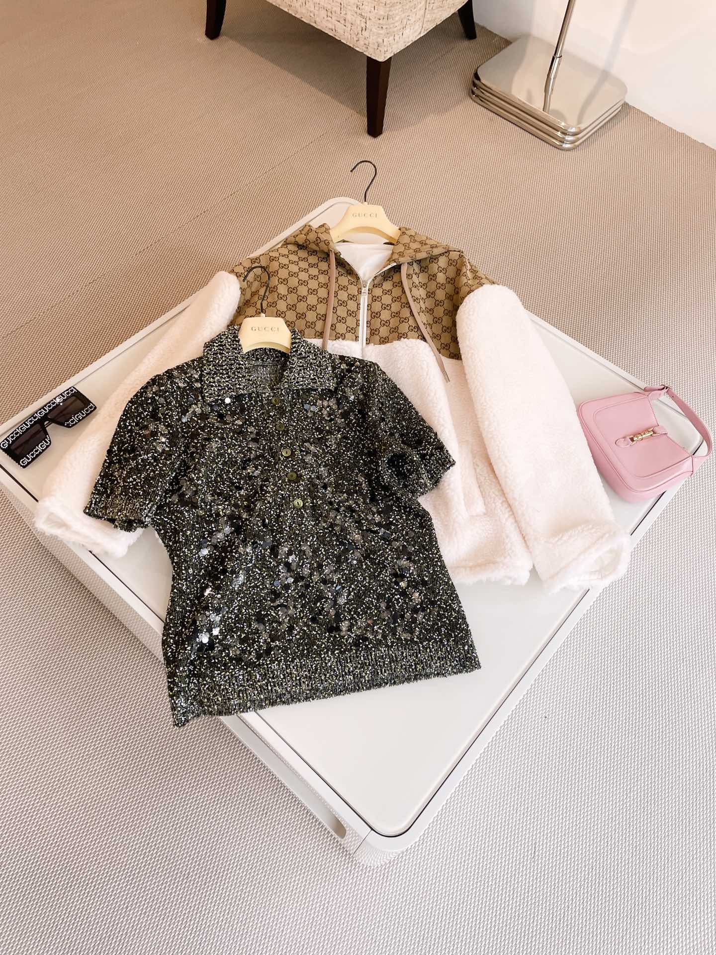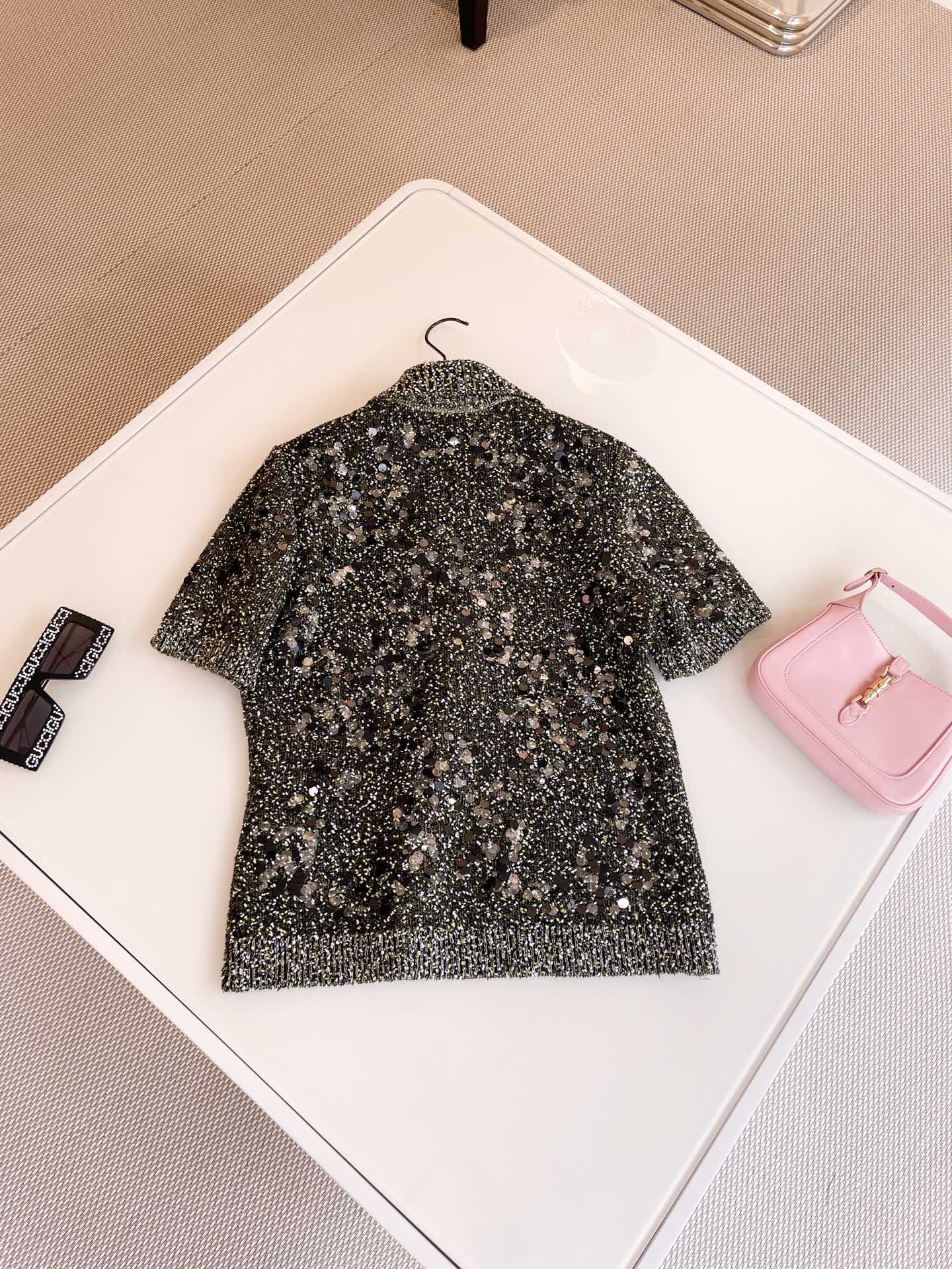 NIGO Gucci Women's Spring, Summer And Fall Full Print Sequin Embroidery Lapel Knit Short Sleeve Polo Shirt Ngvp #nigo9761
