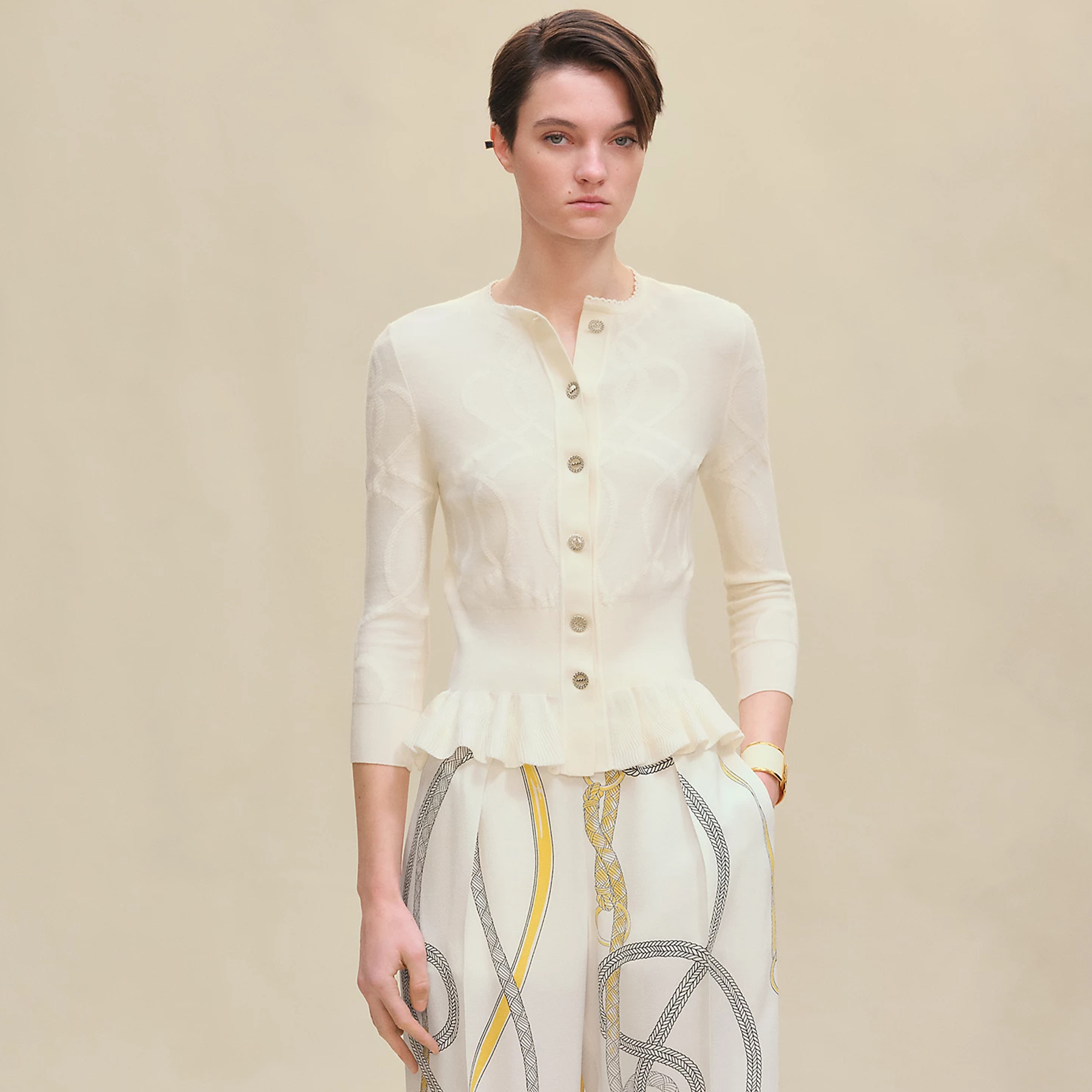 NIGO Hermes Palefroi Remix Light Half-length Sleeves Cardigan Women's Knitted Elegant Lace Single Breasted Knit Sweater Fashion Casual Short Round Neck Sweater Cardigan Ngvp #nigo2228