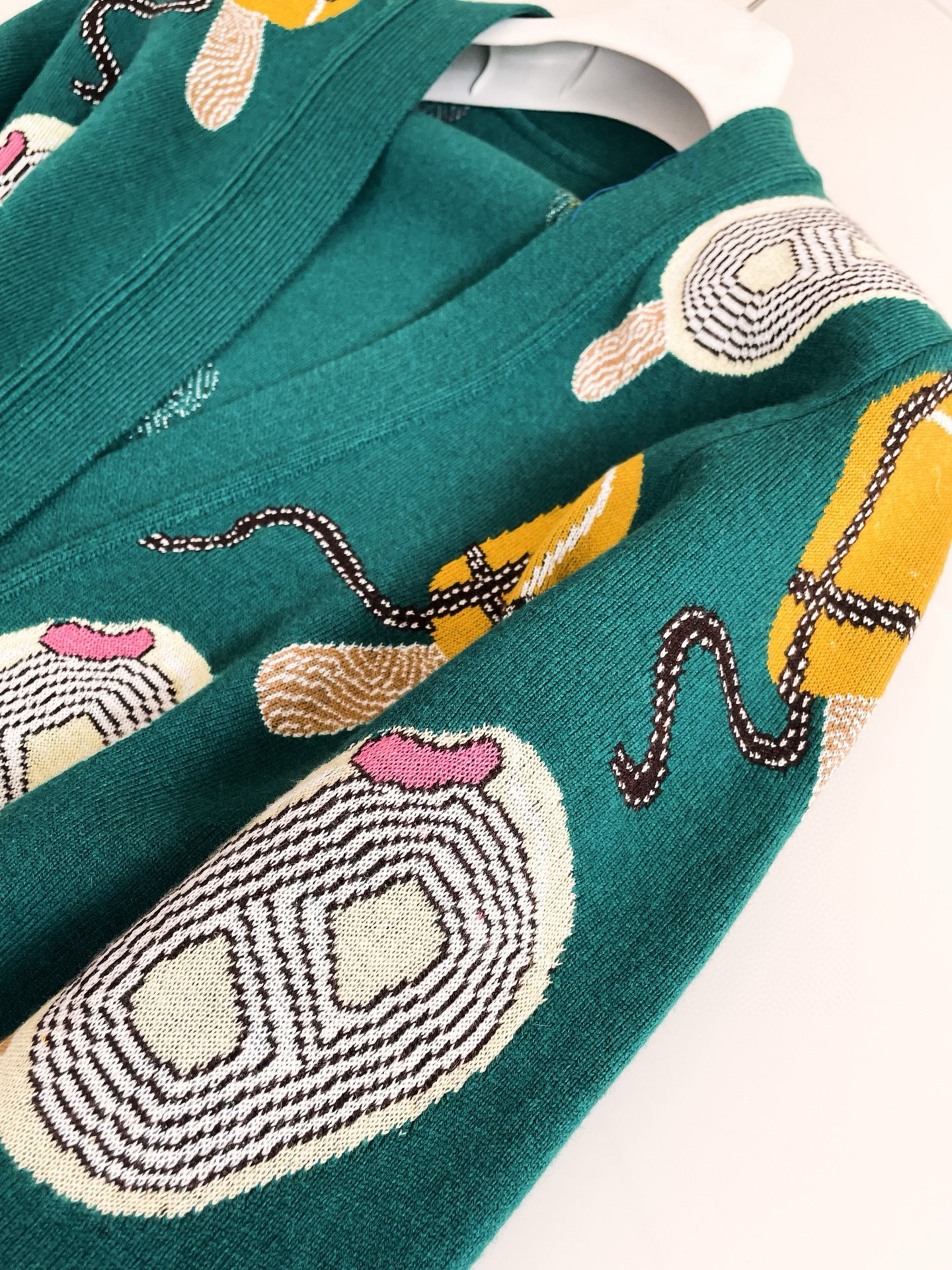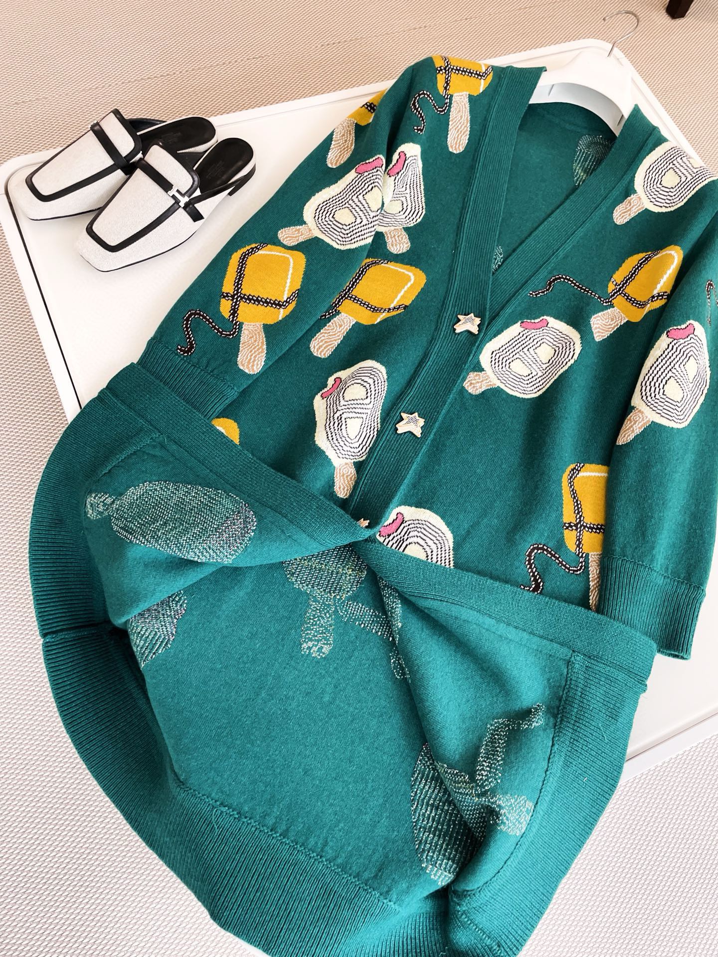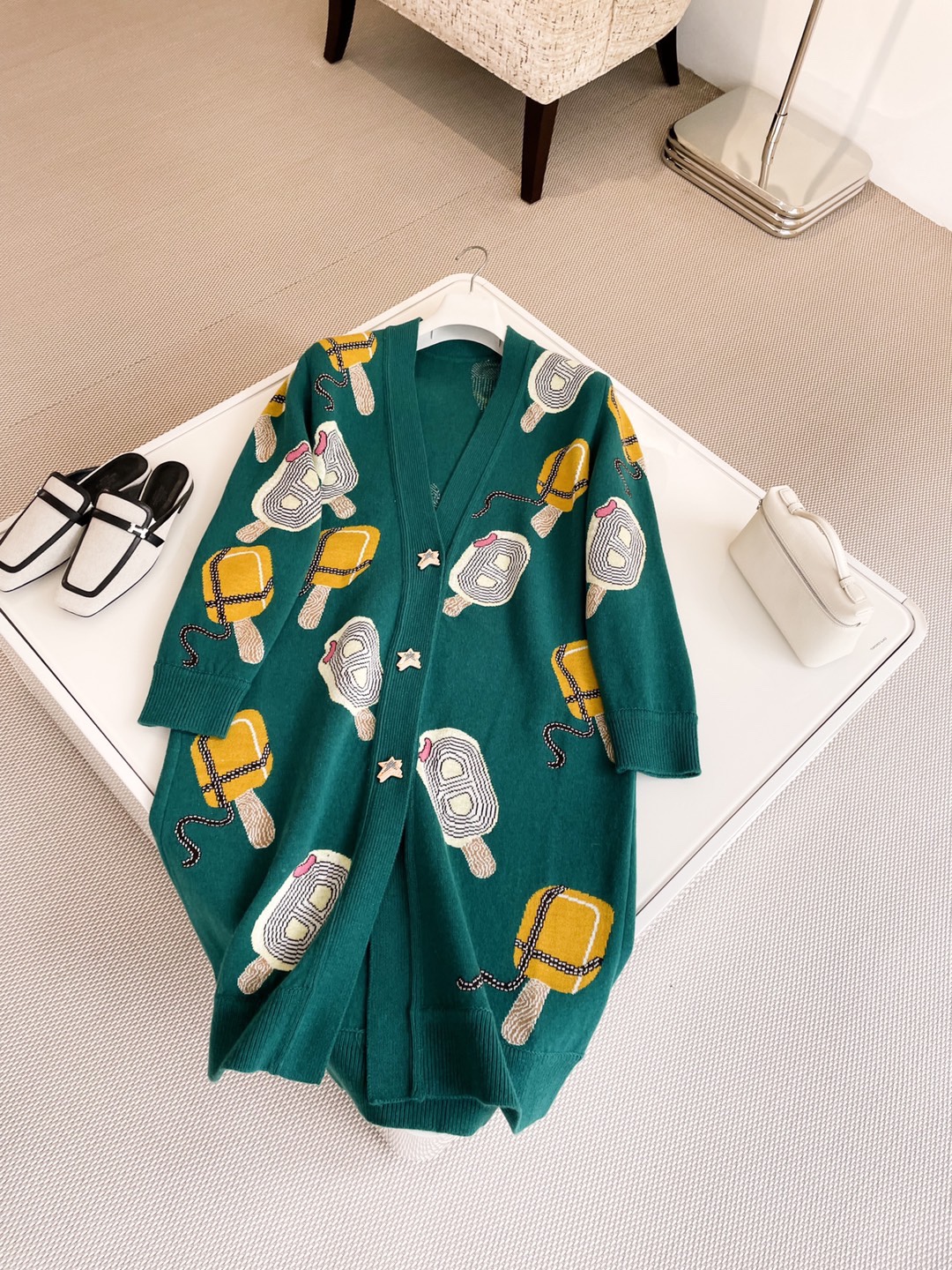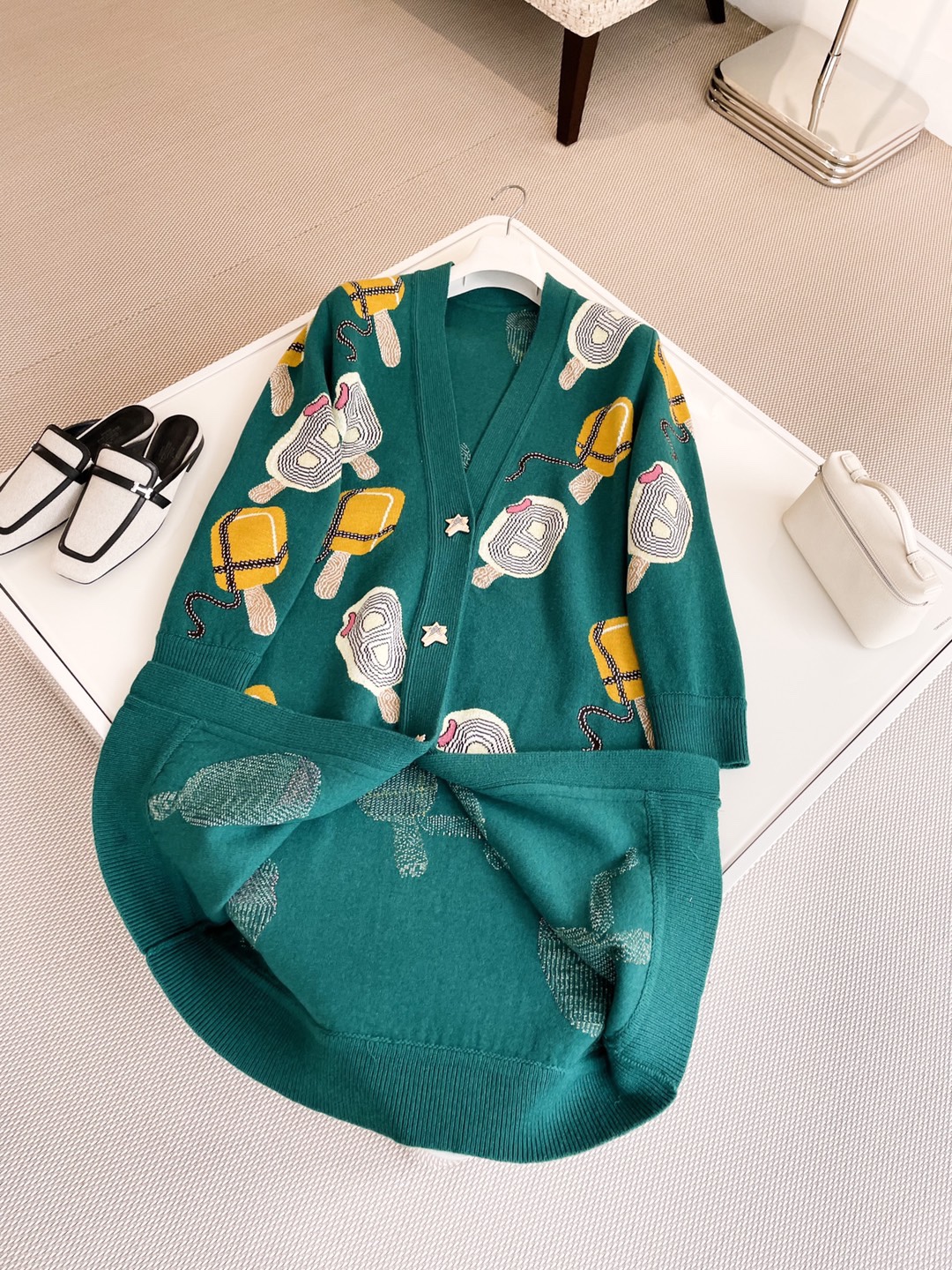 NIGO Hermes Women's Printed Cashmere V-Neck Single-Breasted Spring, Fall And Winter Long Loose Knitted Cardigan Ngvp #nigo9633