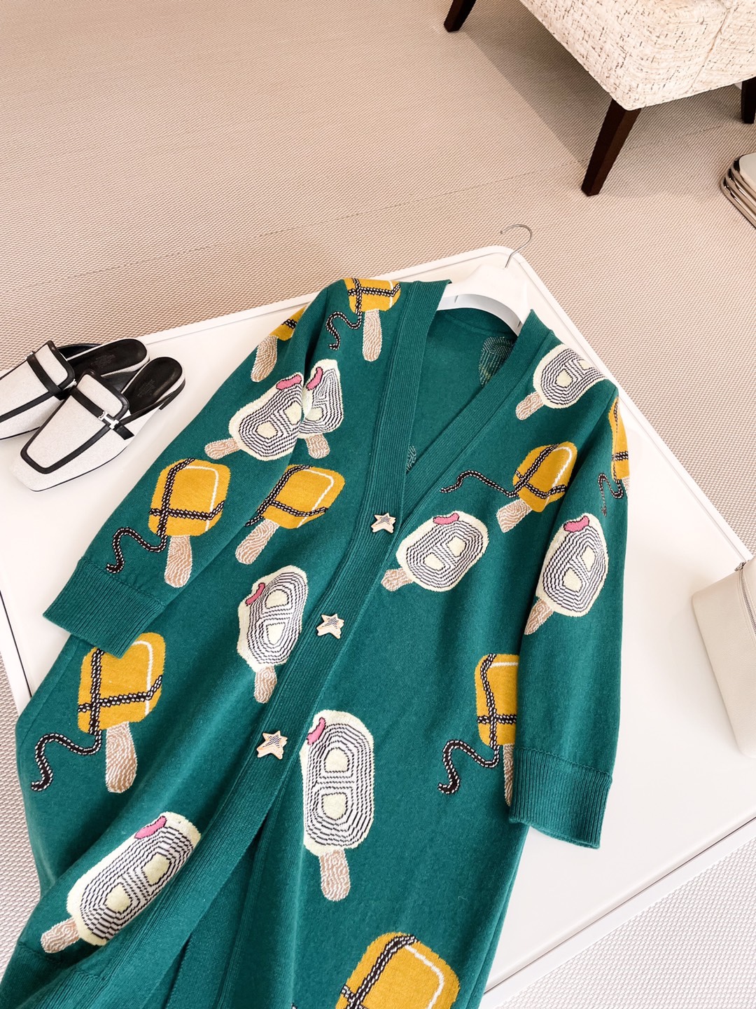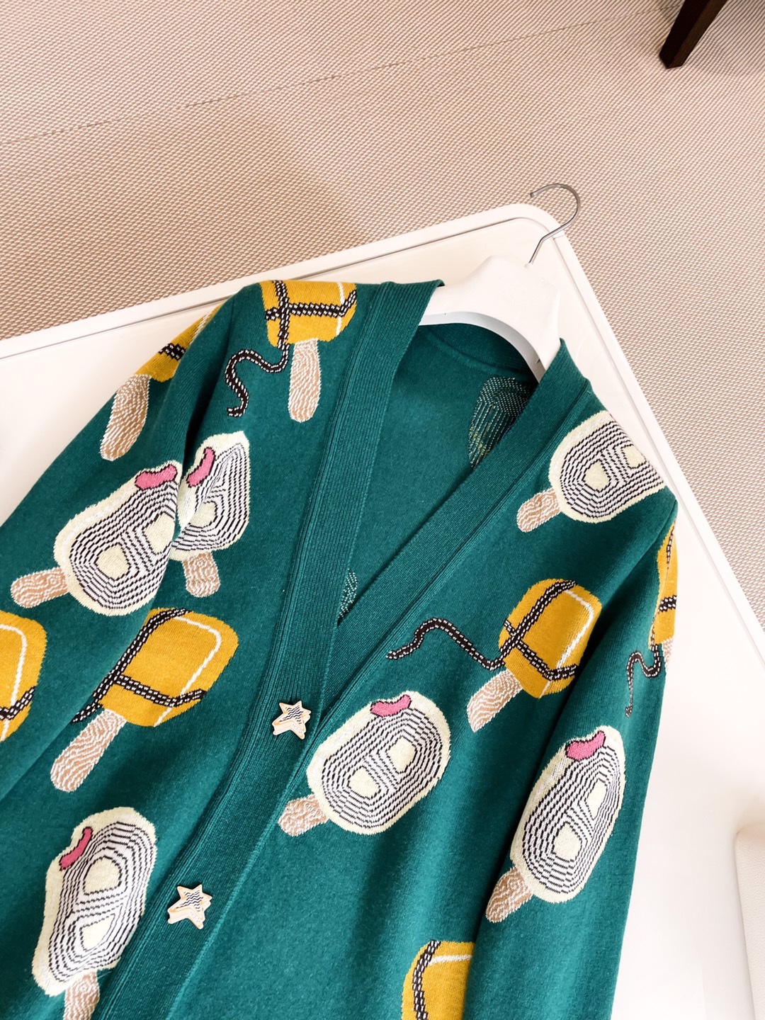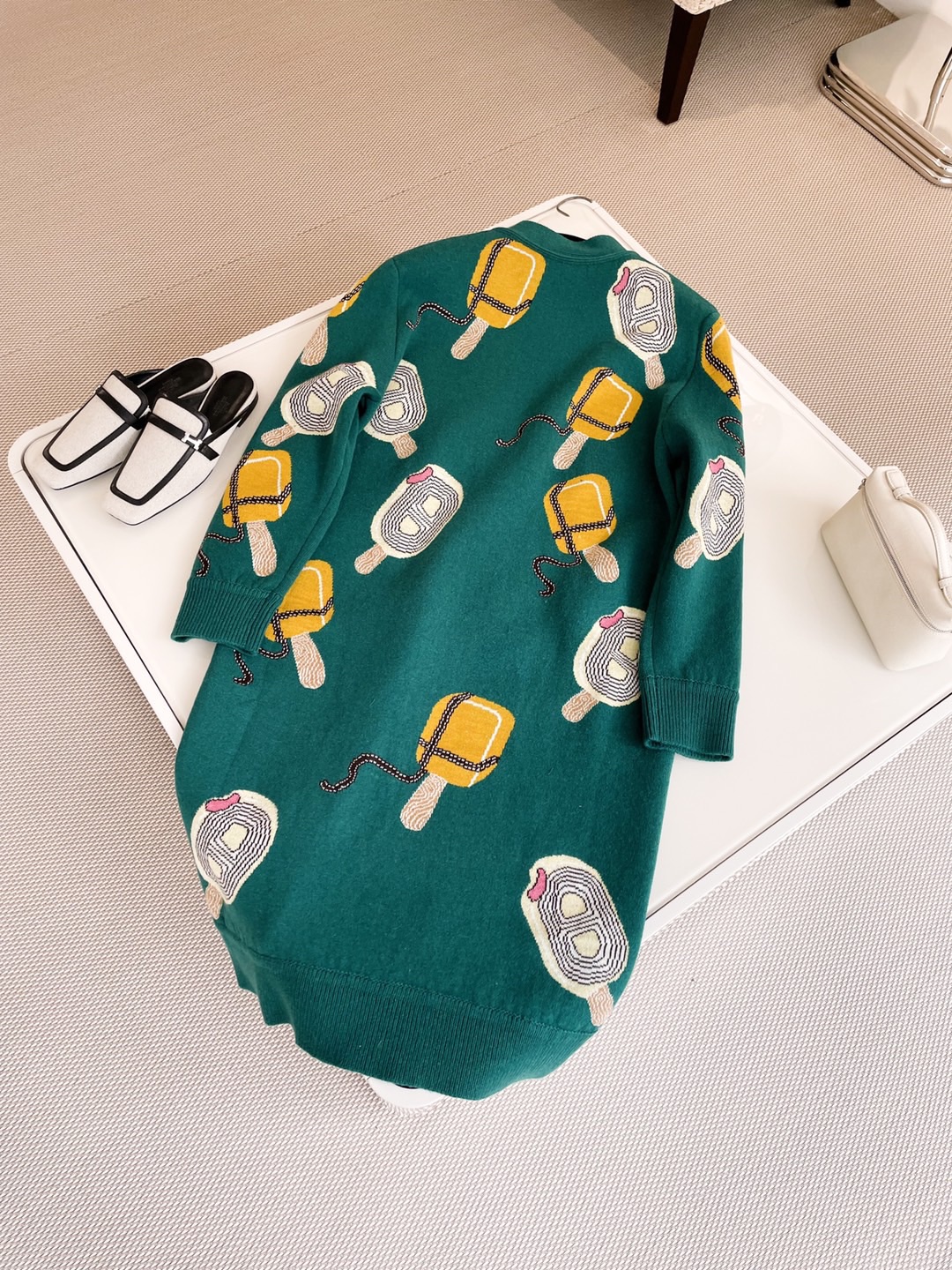 NIGO Hermes Women's Printed Cashmere V-Neck Single-Breasted Spring, Fall And Winter Long Loose Knitted Cardigan Ngvp #nigo9633