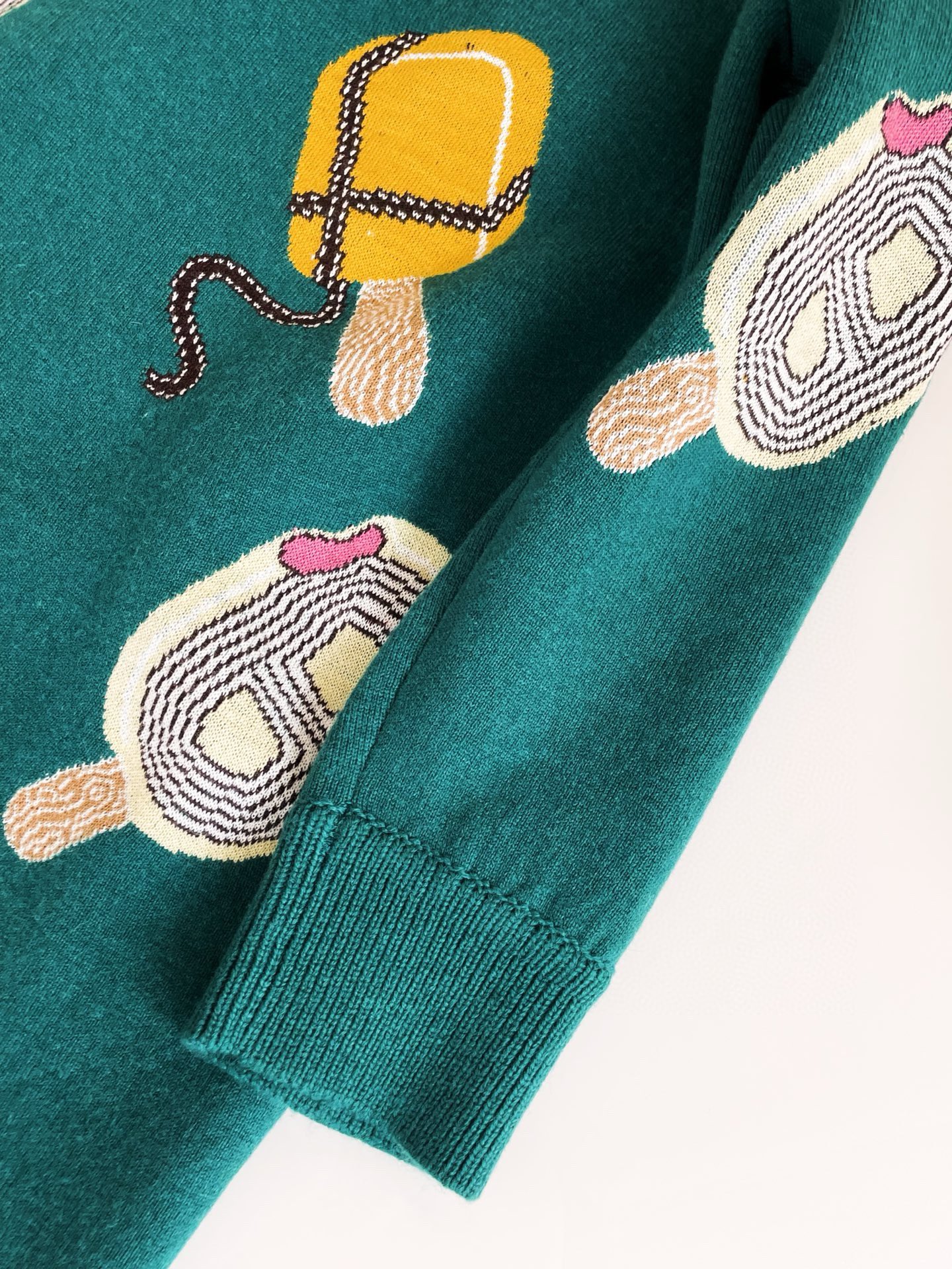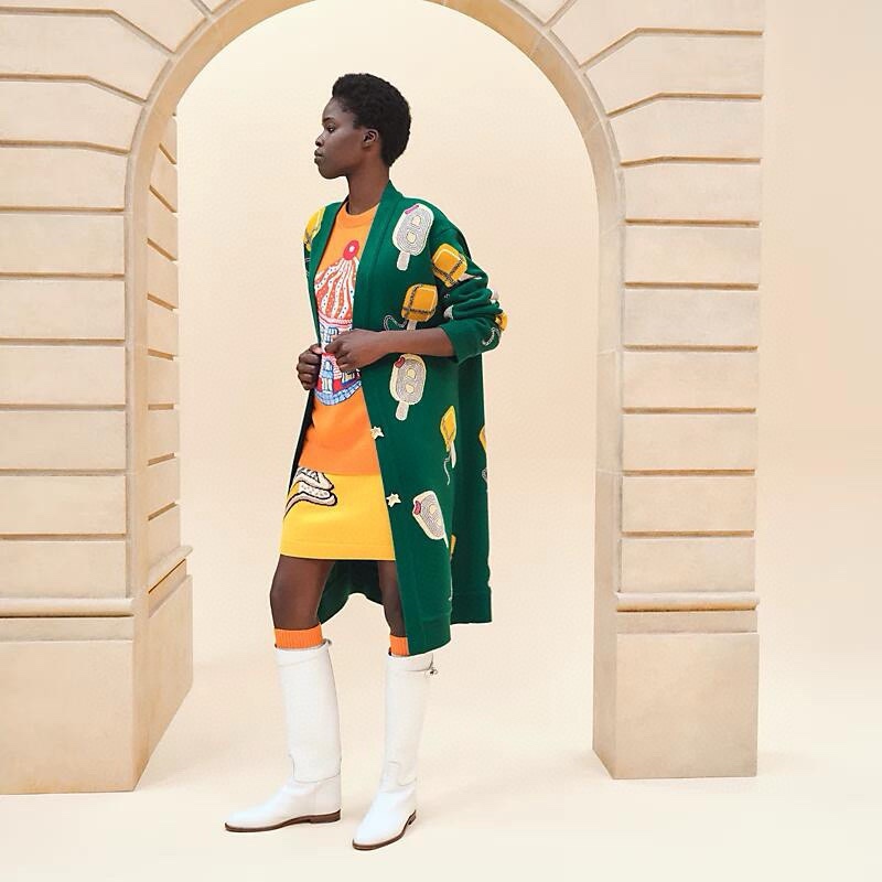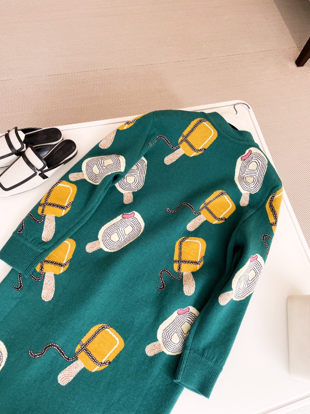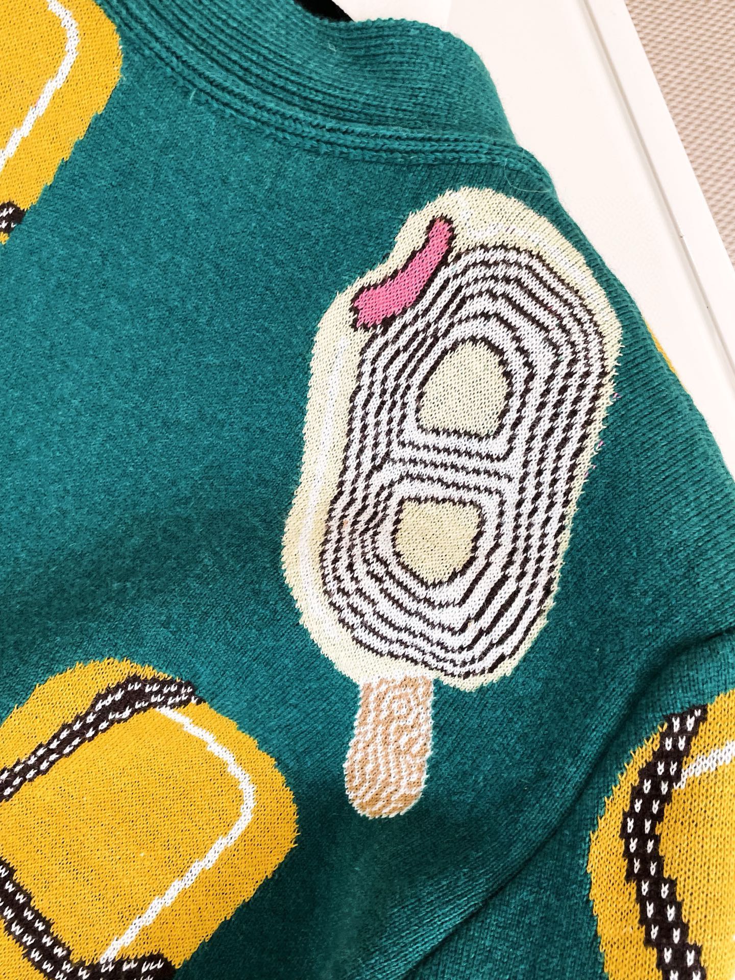 NIGO Hermes Women's Printed Cashmere V-Neck Single-Breasted Spring, Fall And Winter Long Loose Knitted Cardigan Ngvp #nigo9633