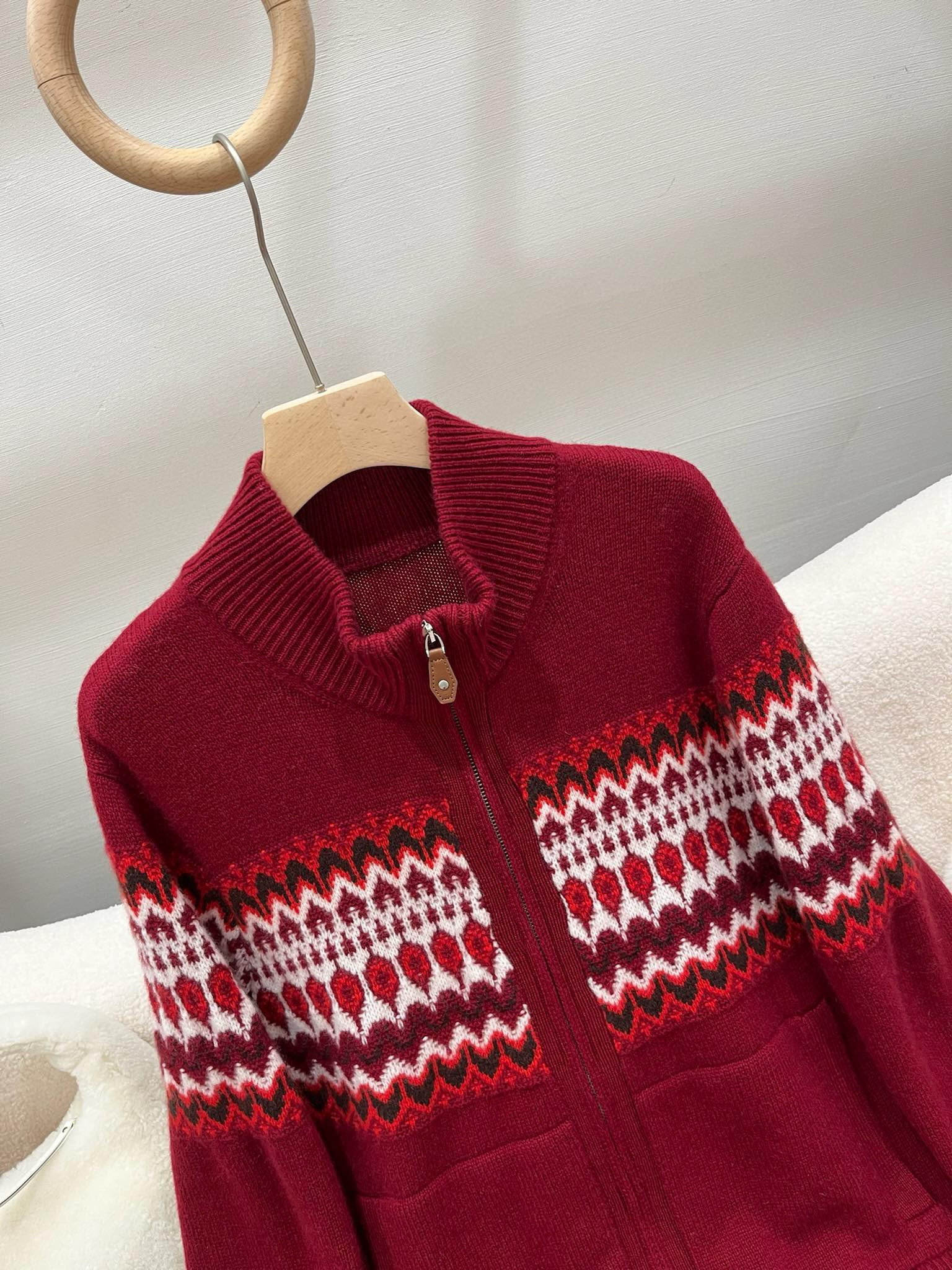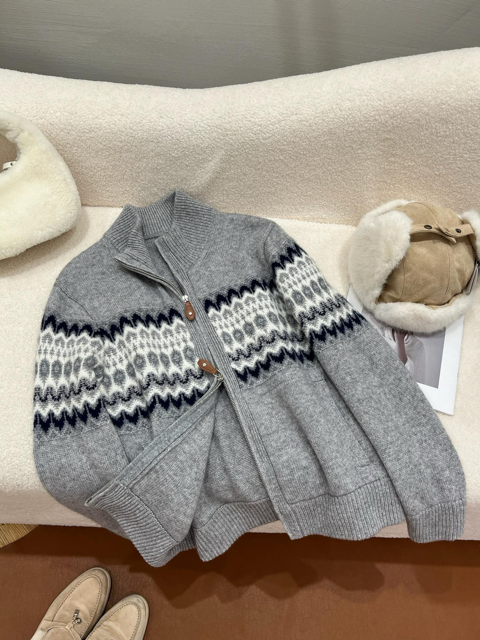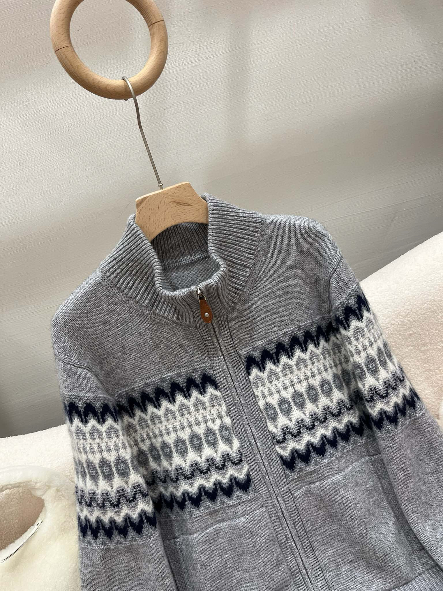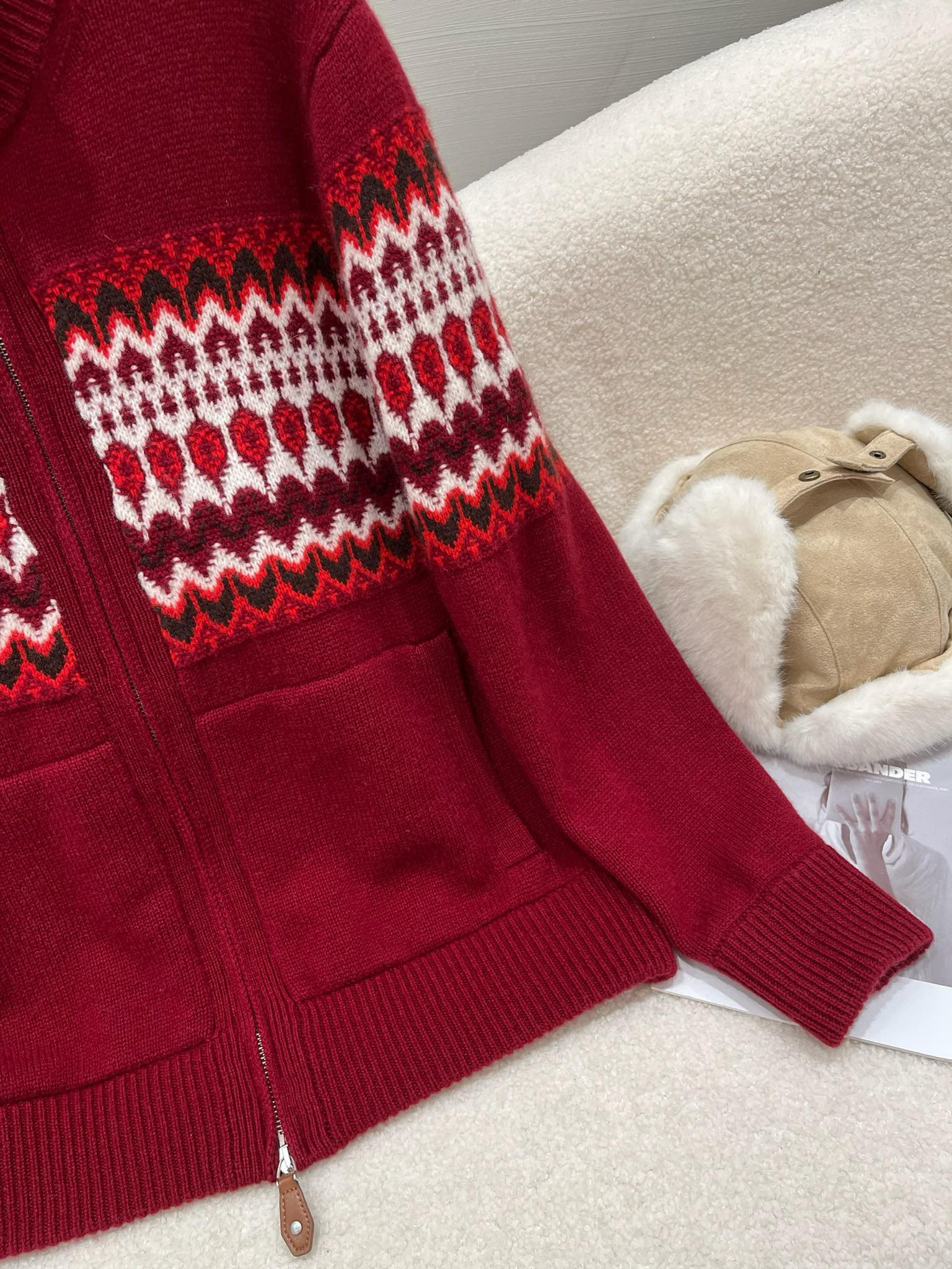 NIGO Loro Piana Women's Alpe Pile Women's Aviator Sweater Christmas Holiday Cubic Jacquard Cashmere Cardigan Knitted Sweater Ngvp #nigo9855