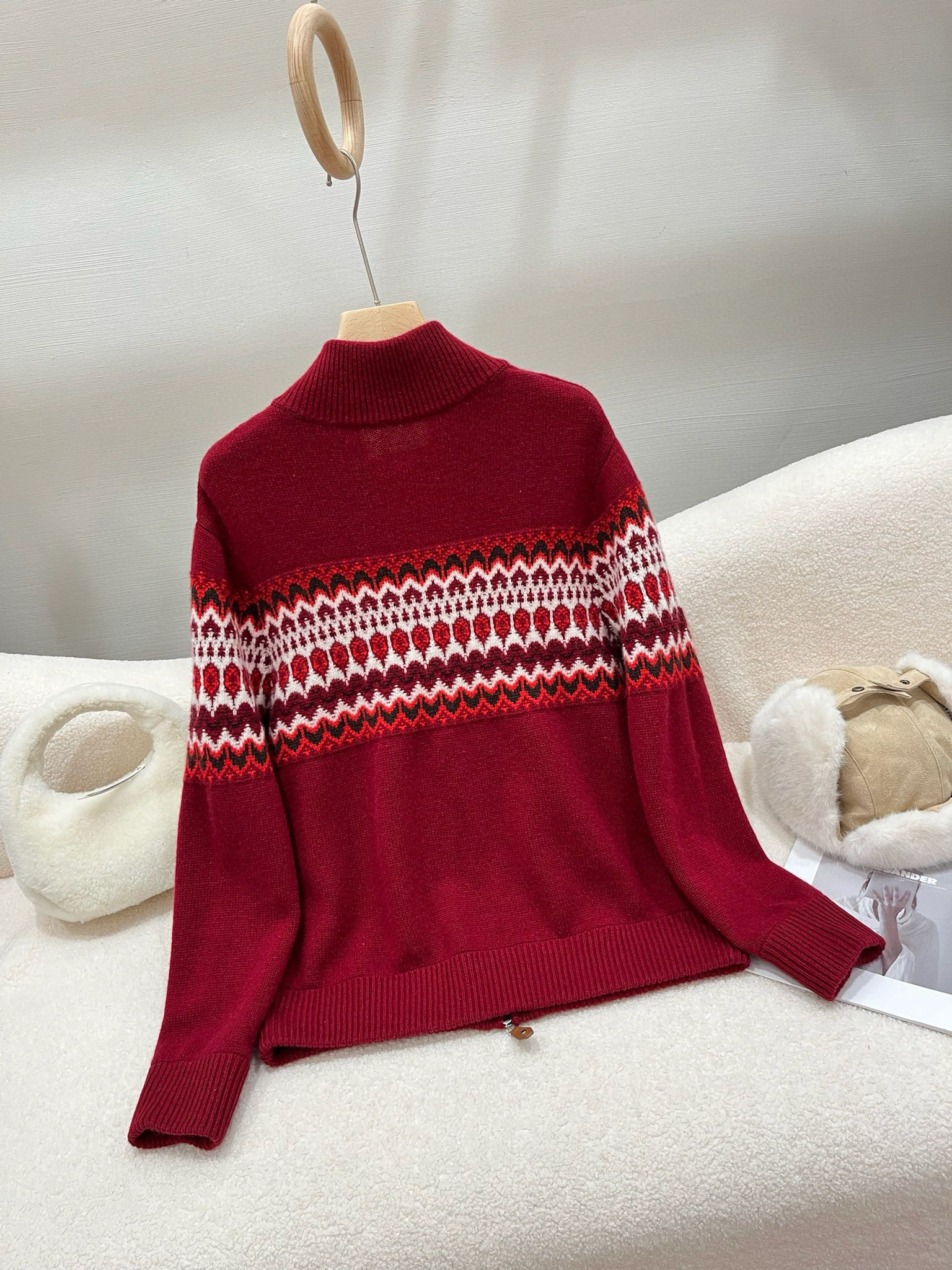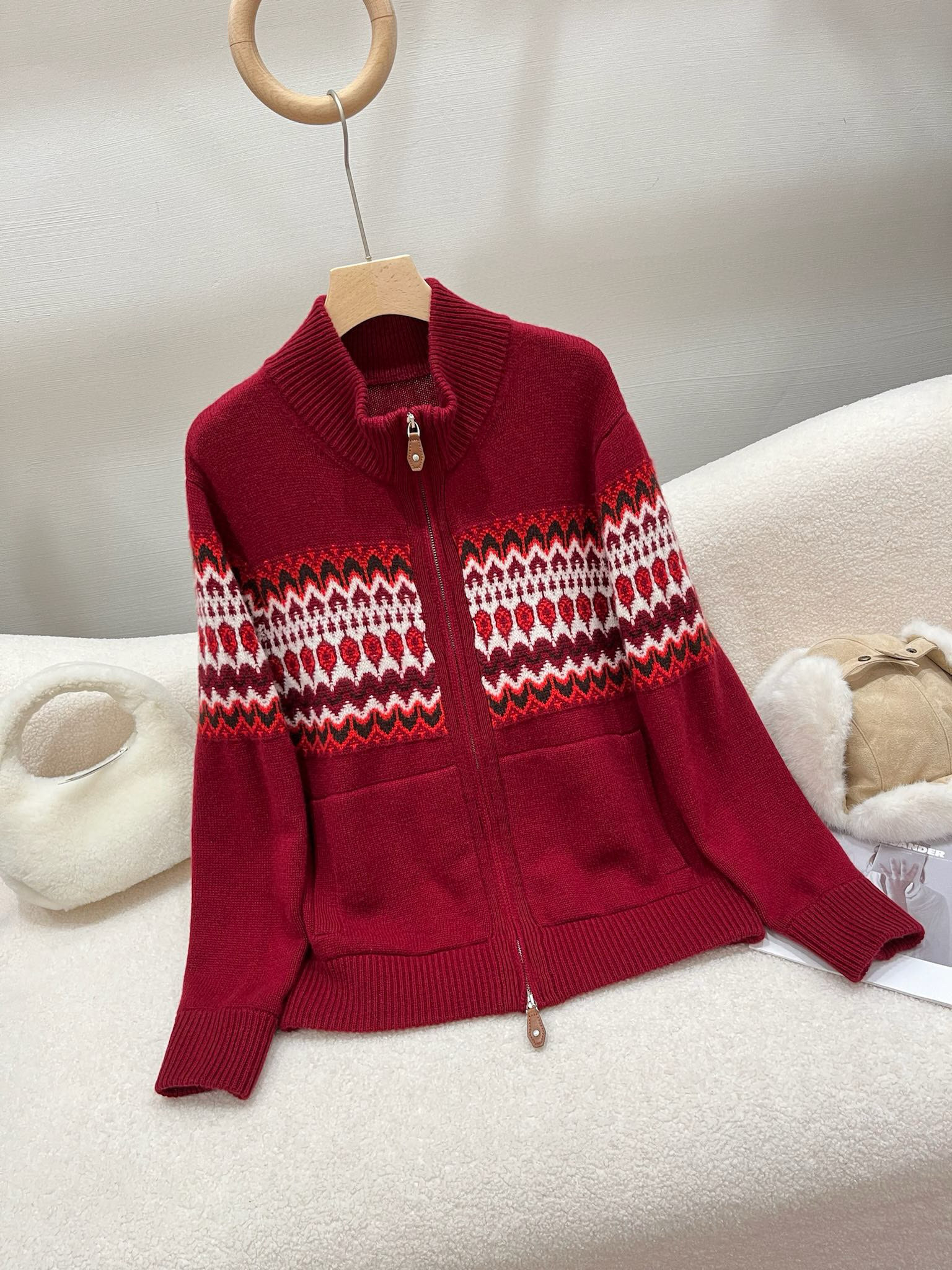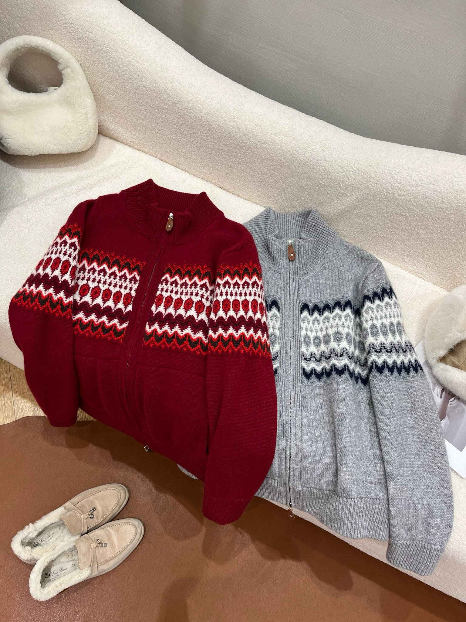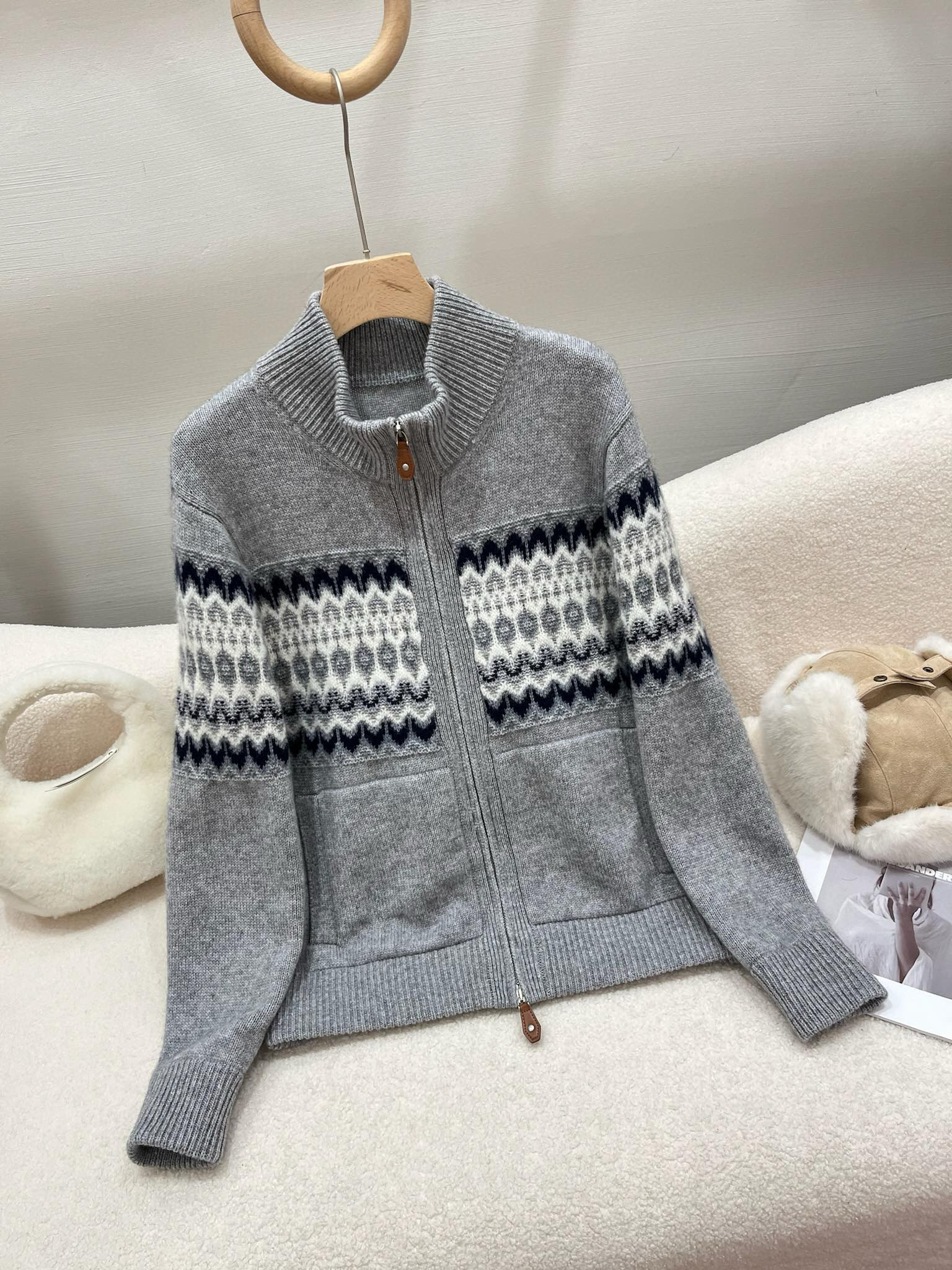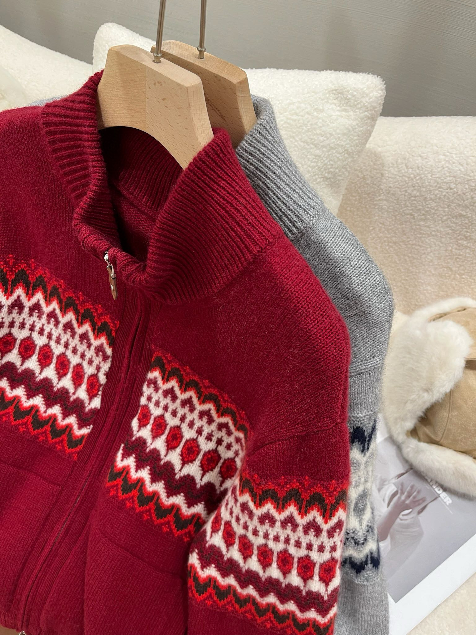 NIGO Loro Piana Women's Alpe Pile Women's Aviator Sweater Christmas Holiday Cubic Jacquard Cashmere Cardigan Knitted Sweater Ngvp #nigo9855