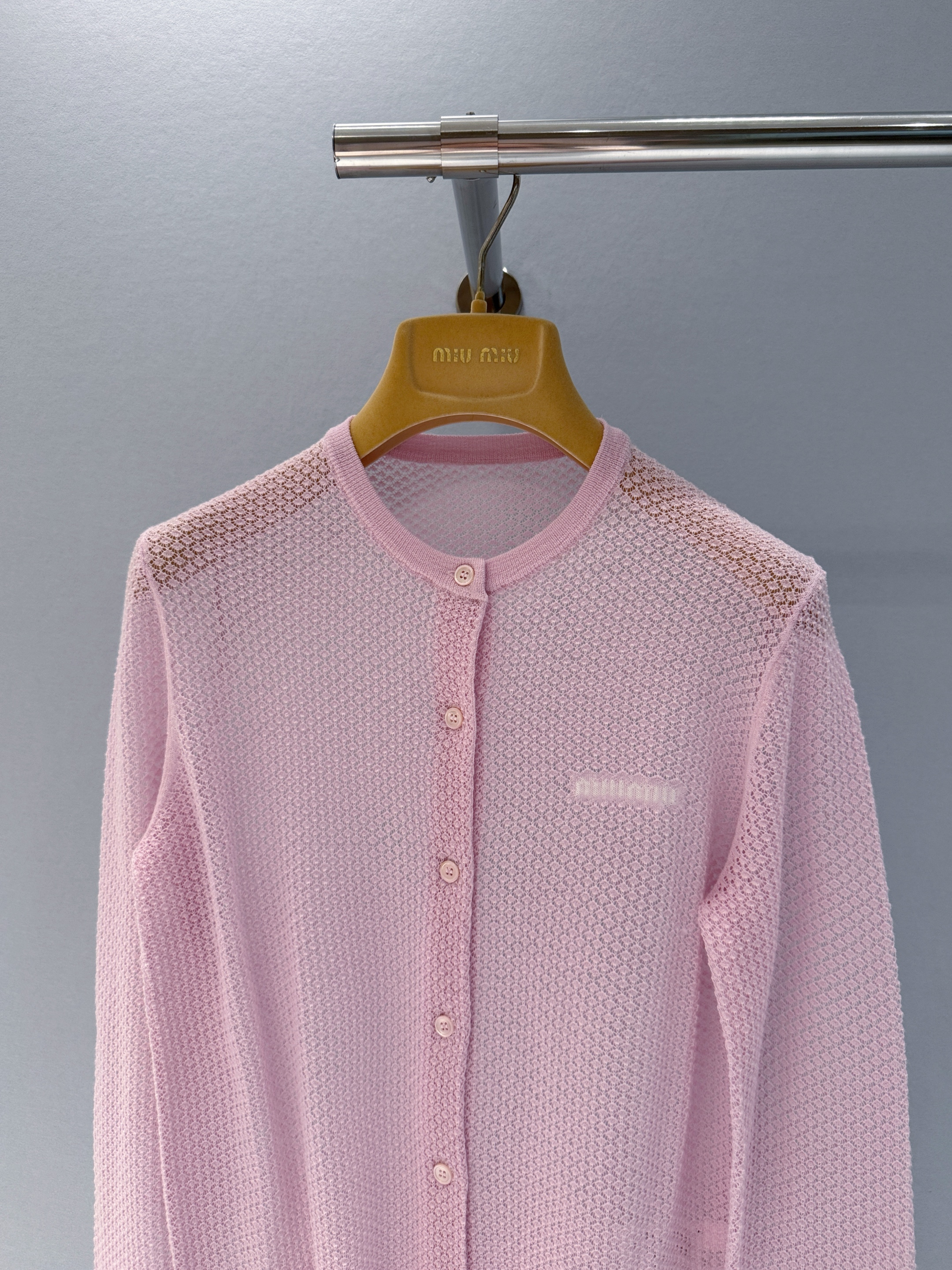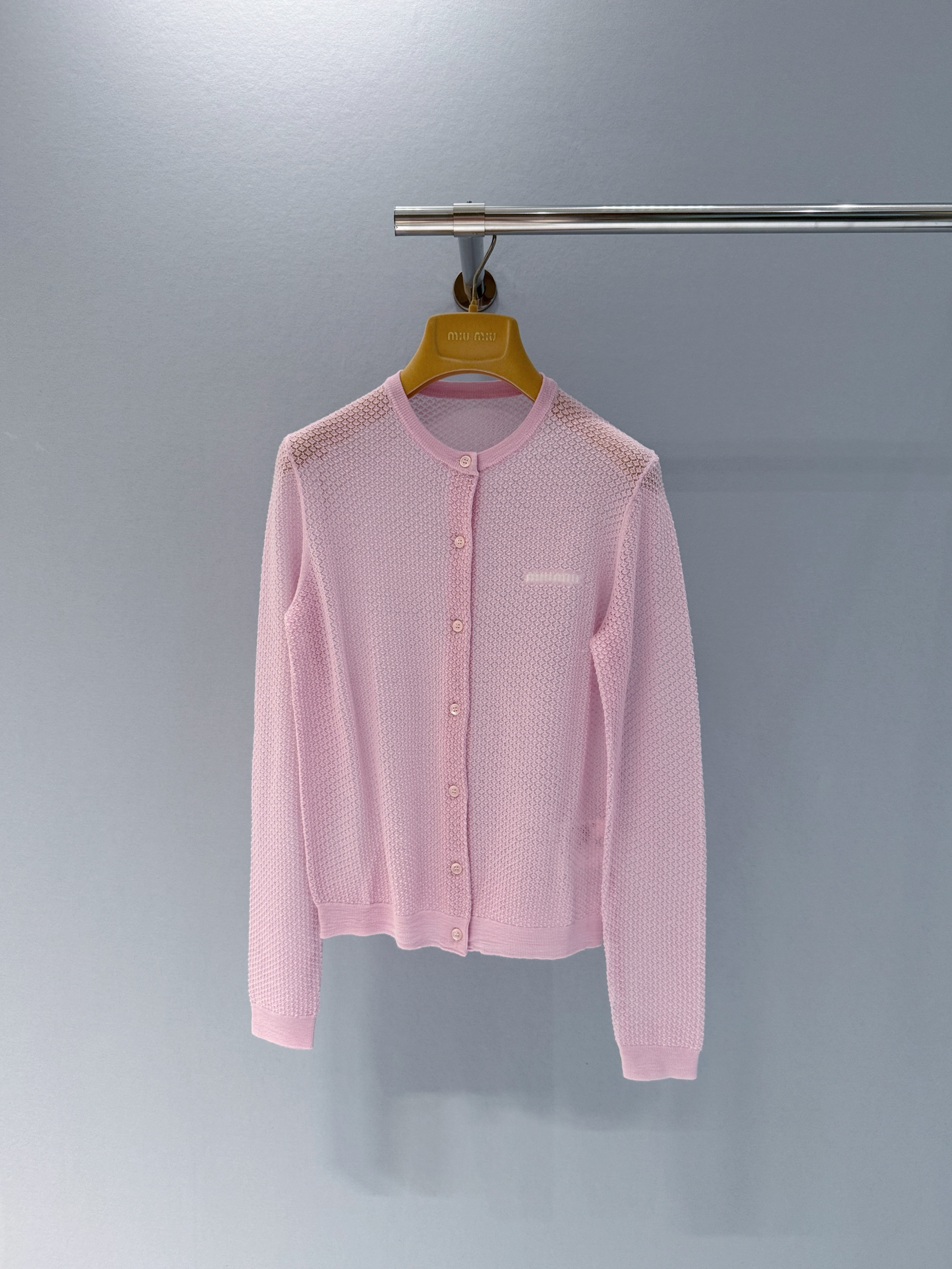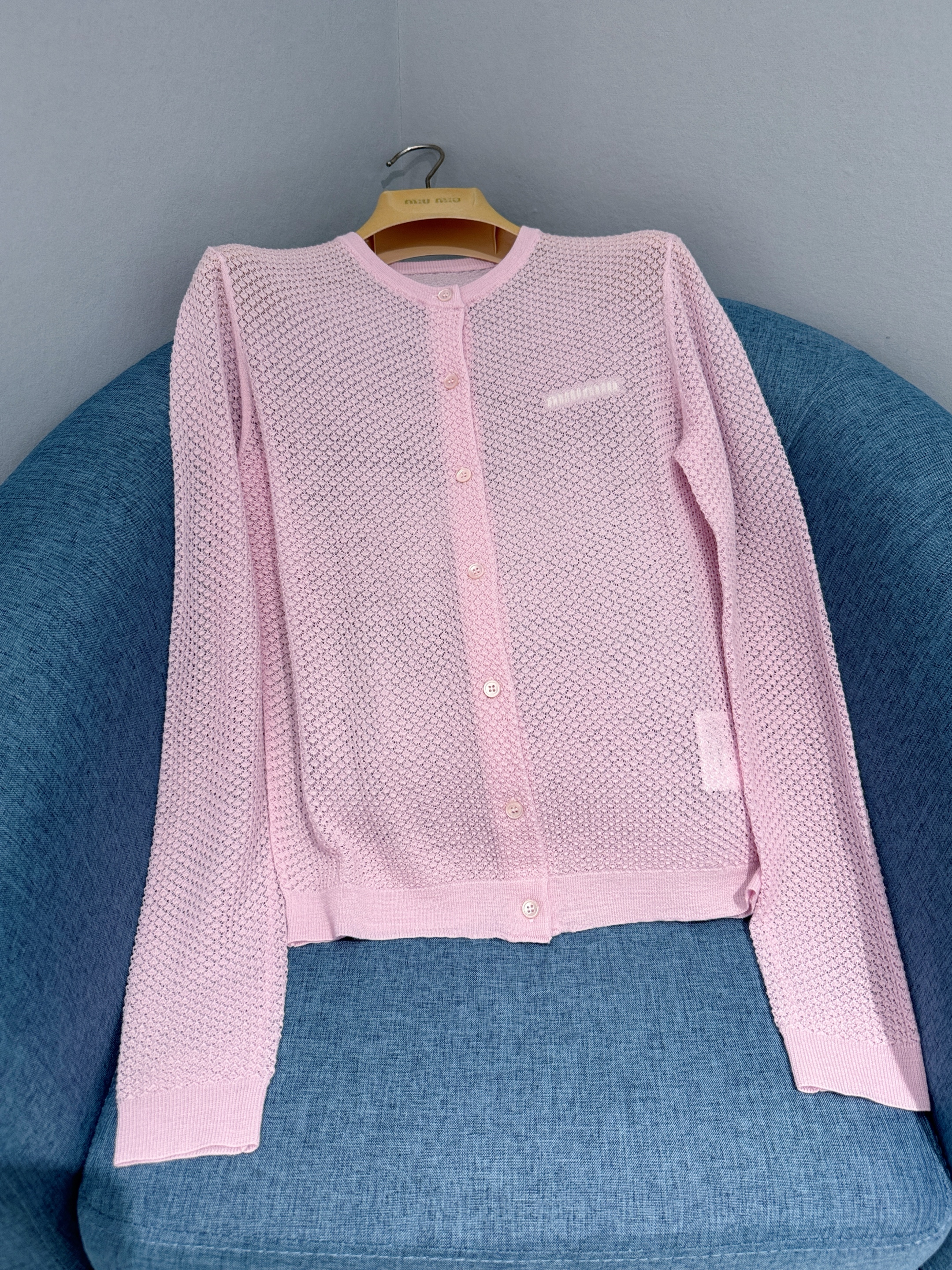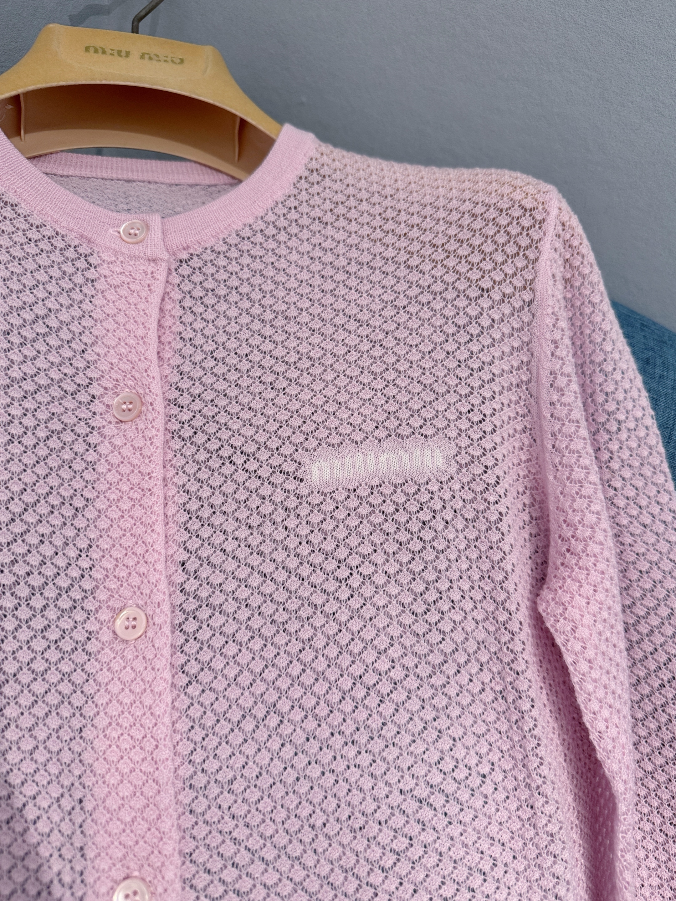 NIGO MiuMiu Women's Spring And Summer Logo Hollow Knitted Cardigan Fashion Round Neck Long-sleeved Single-breasted Girls Youth Tops #nigo81246