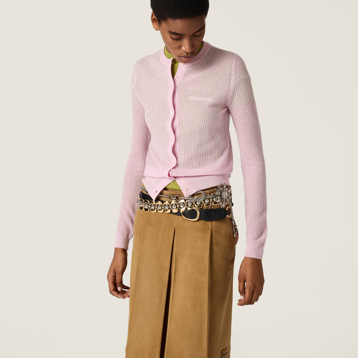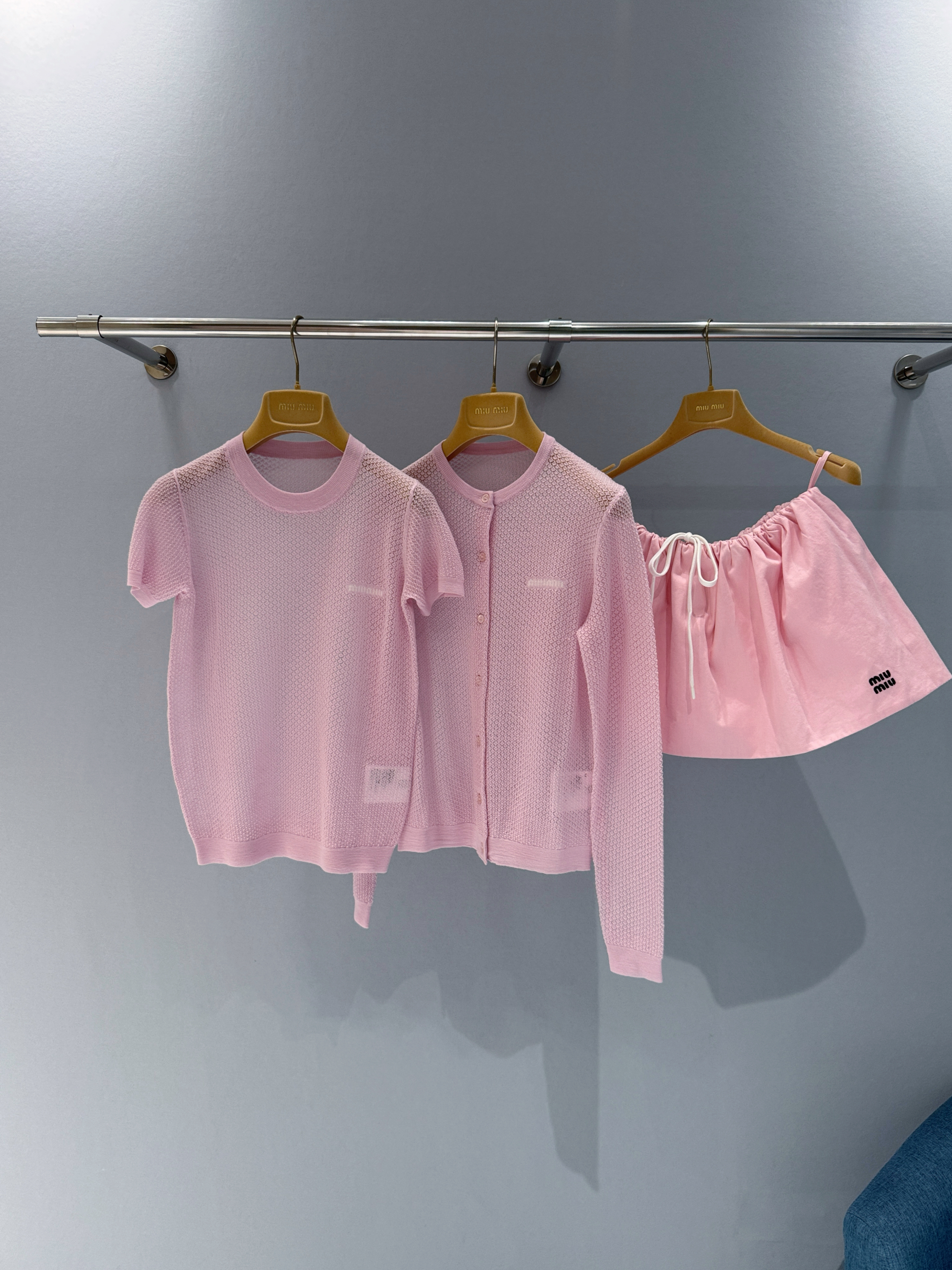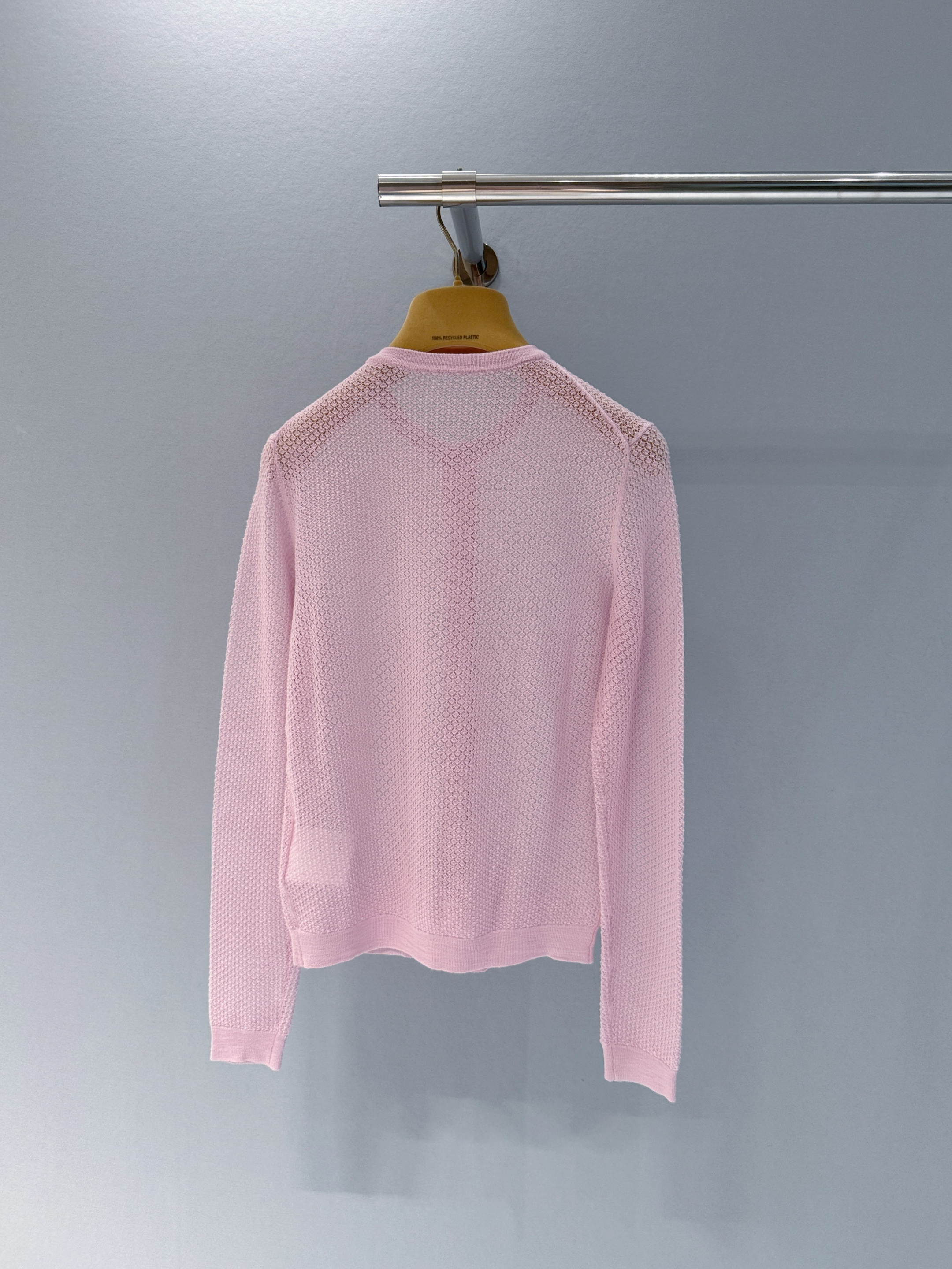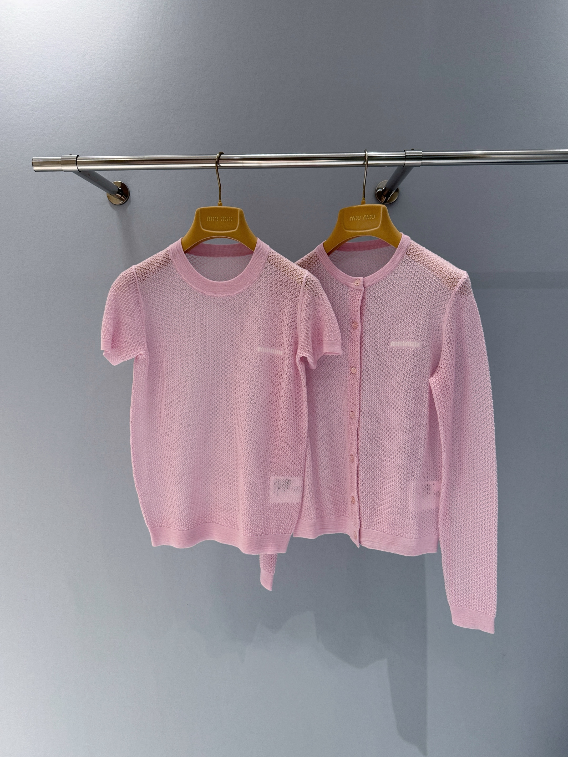 NIGO MiuMiu Women's Spring And Summer Logo Hollow Knitted Cardigan Fashion Round Neck Long-sleeved Single-breasted Girls Youth Tops #nigo81246
