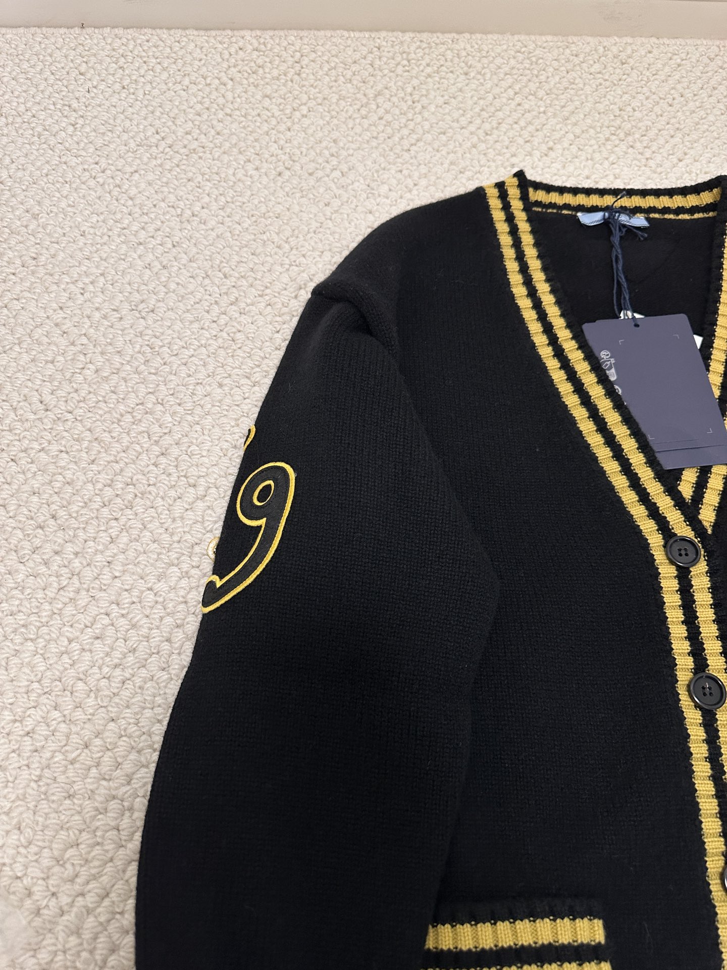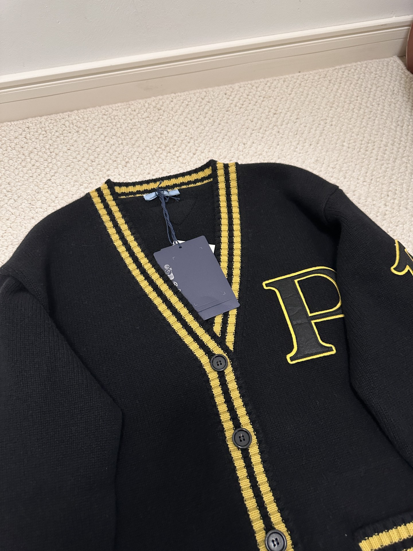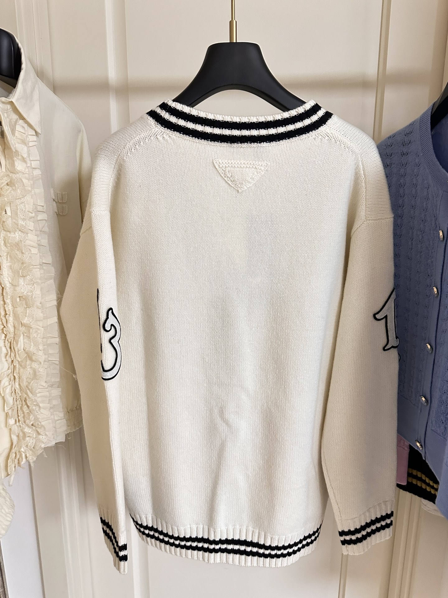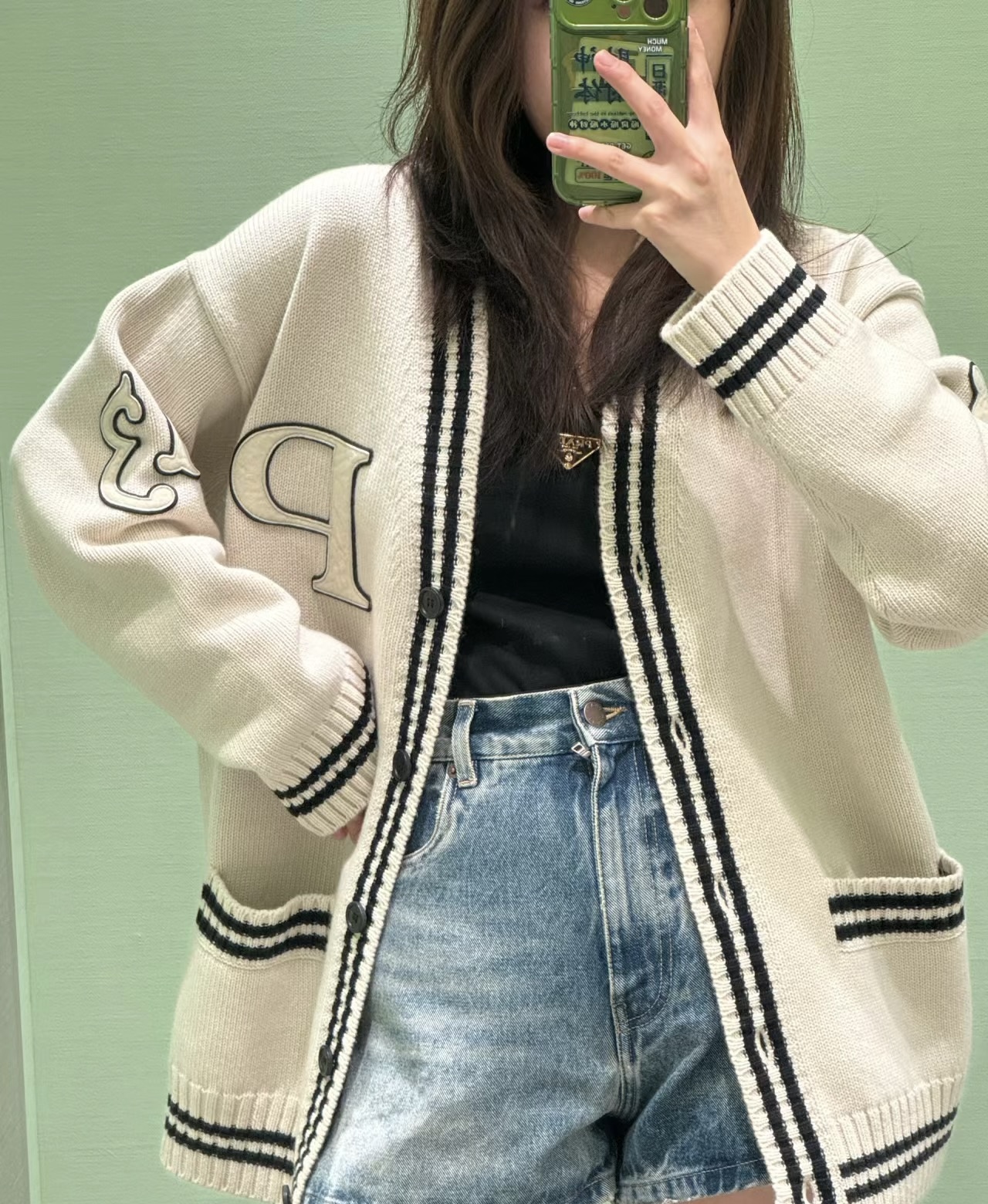 NIGO Prada Women's Fall And Winter Oversize College Style Splicing Letters Embroidery Wool Cardigan Sweater Fashion Casual Single-breasted Knit Sweater Knitted Ngvp #nigo9246