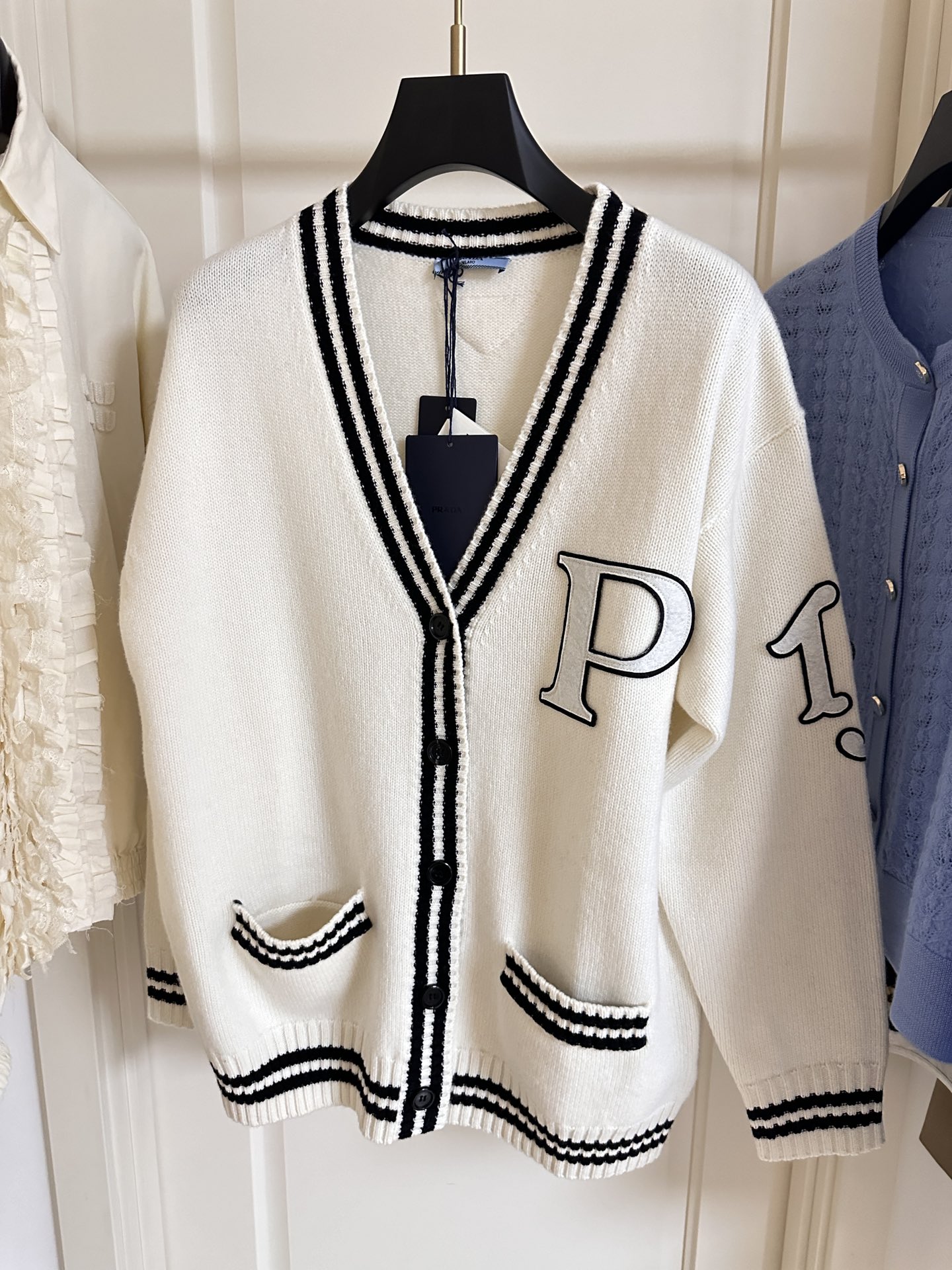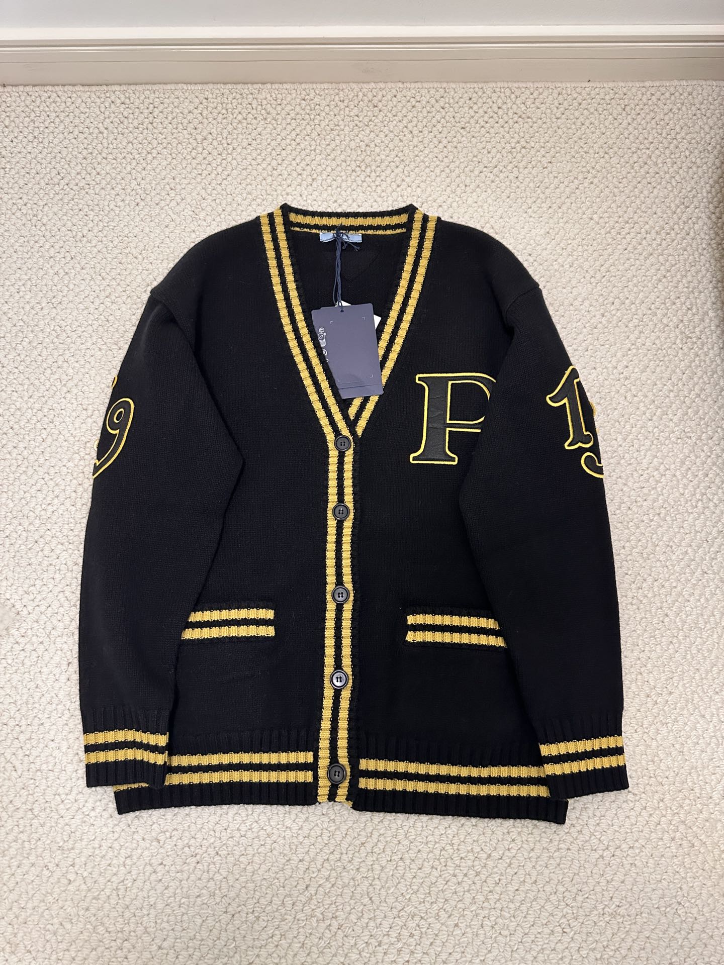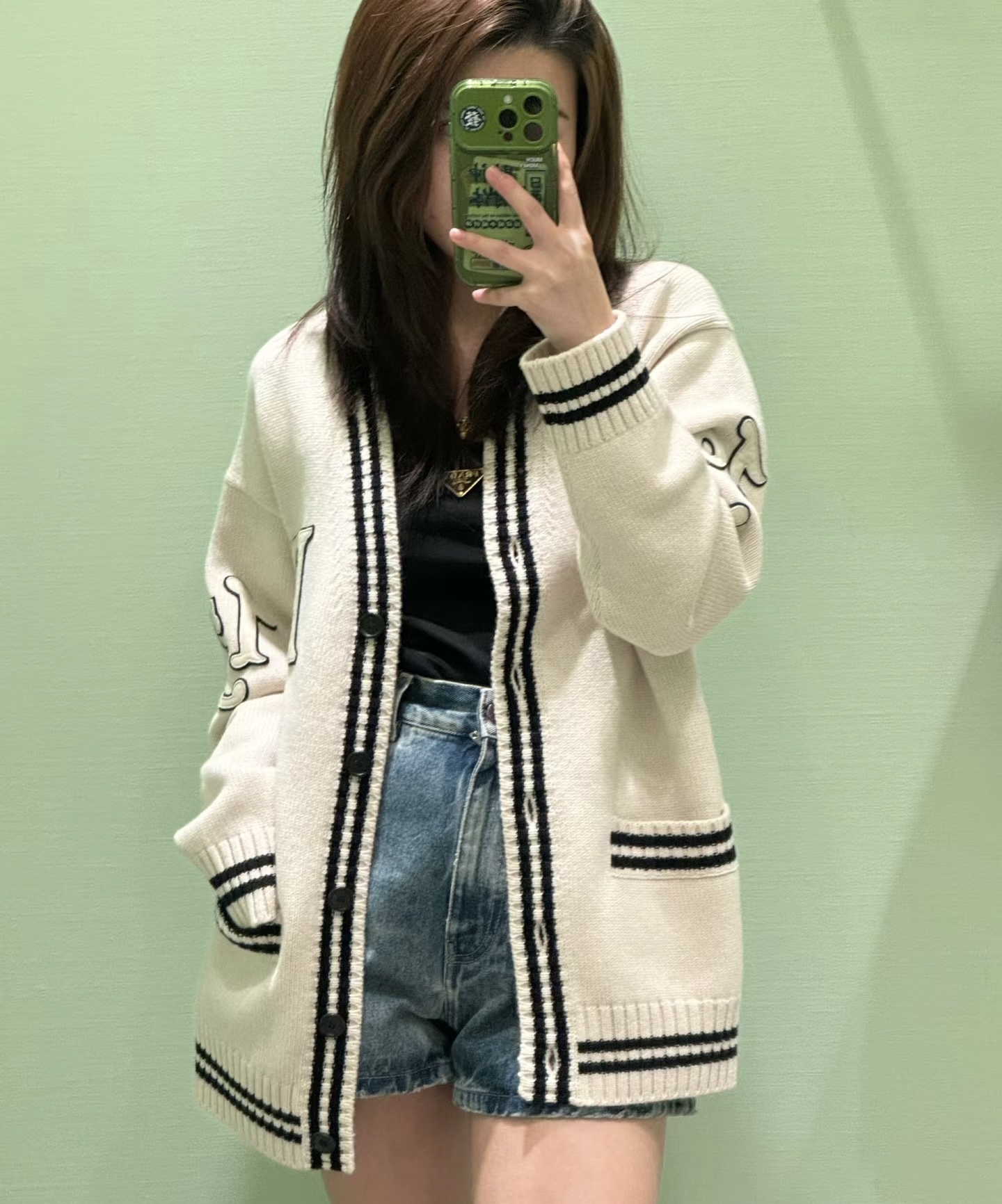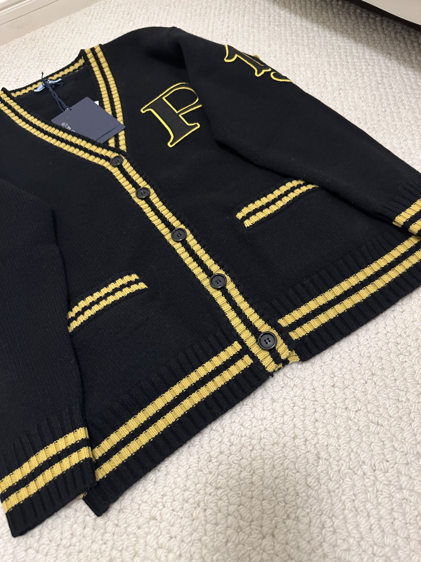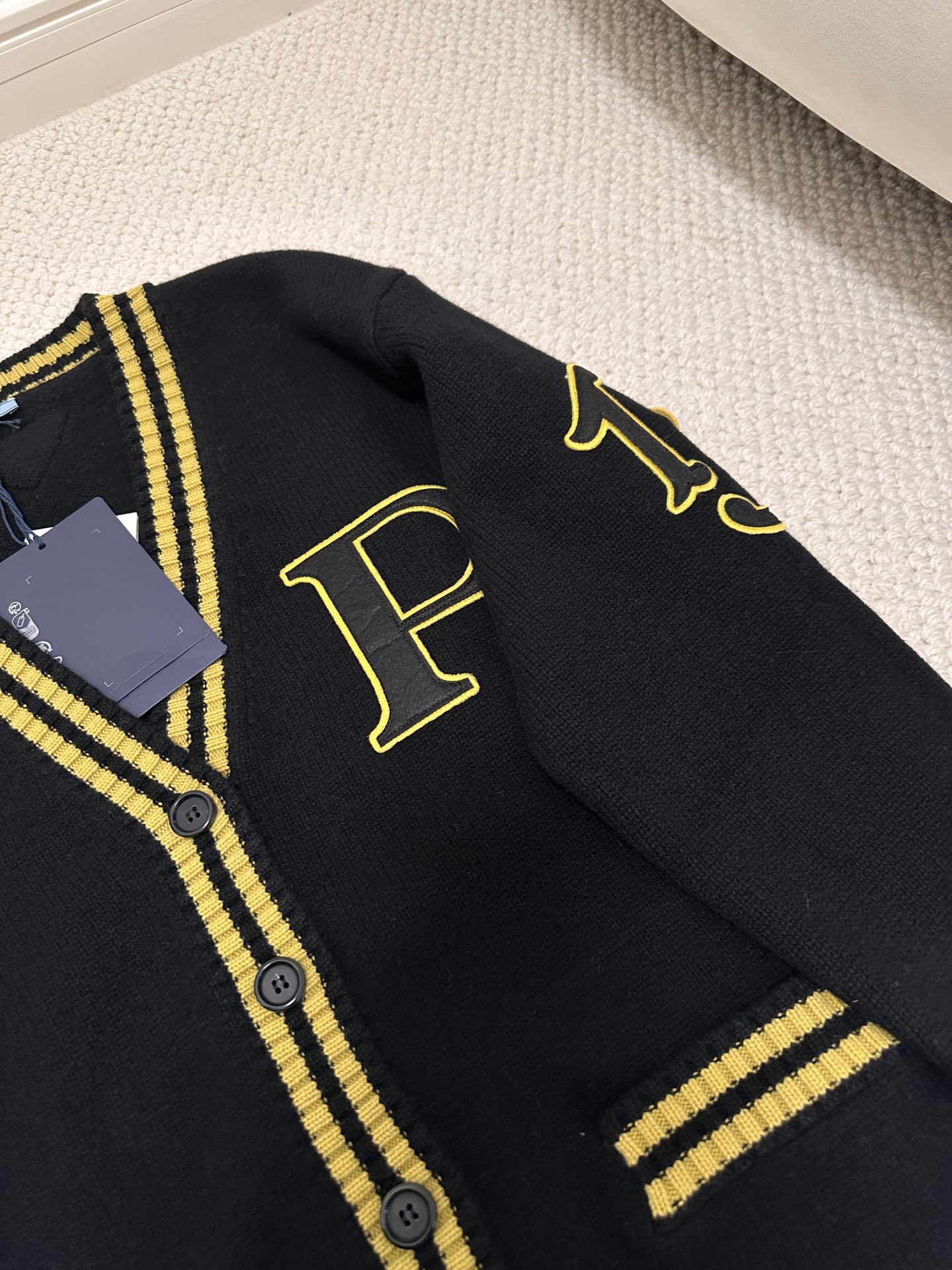 NIGO Prada Women's Fall And Winter Oversize College Style Splicing Letters Embroidery Wool Cardigan Sweater Fashion Casual Single-breasted Knit Sweater Knitted Ngvp #nigo9246