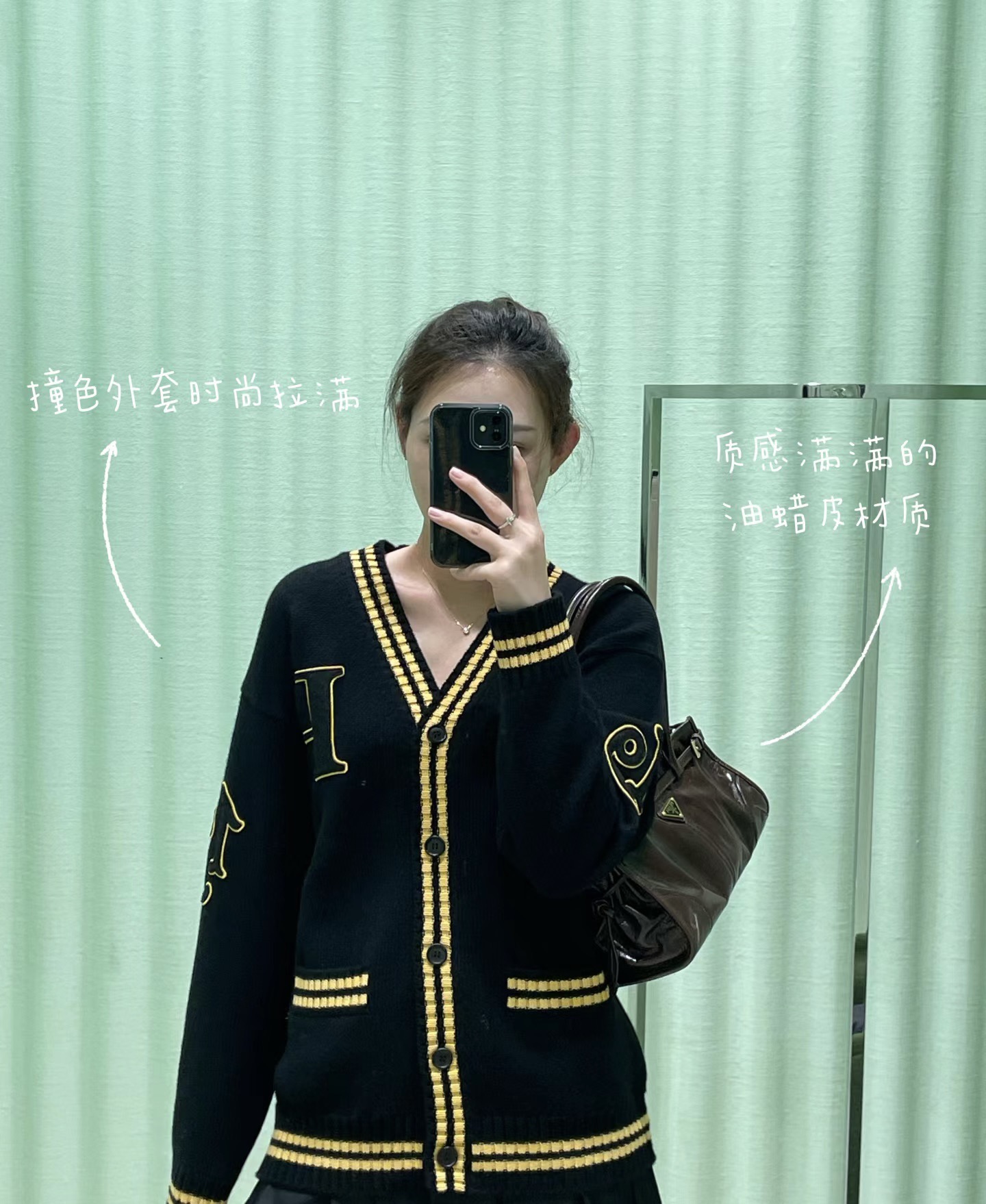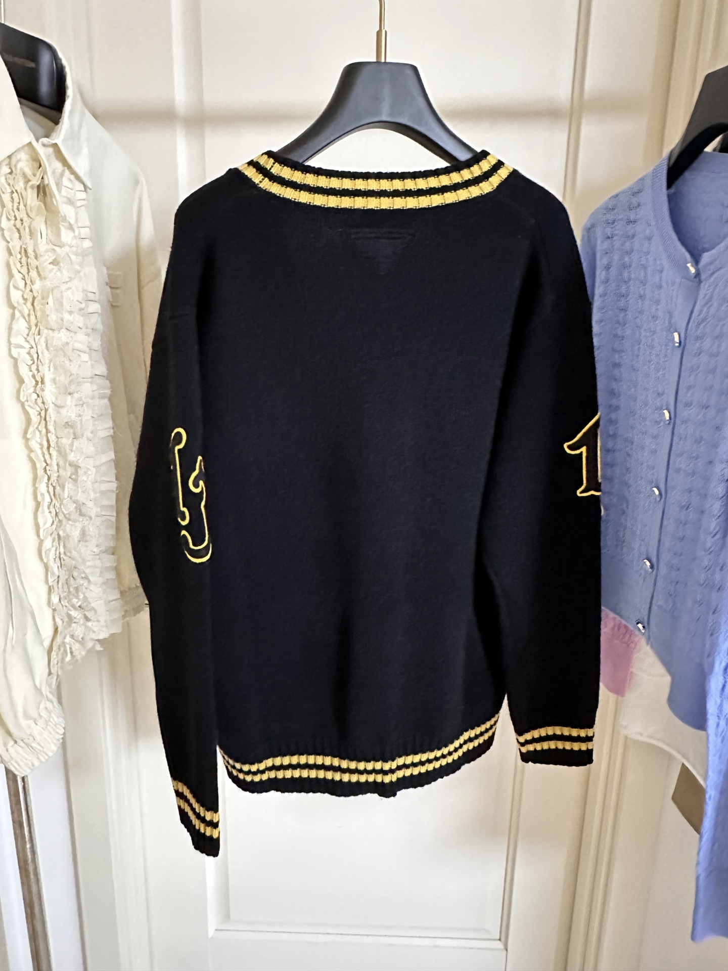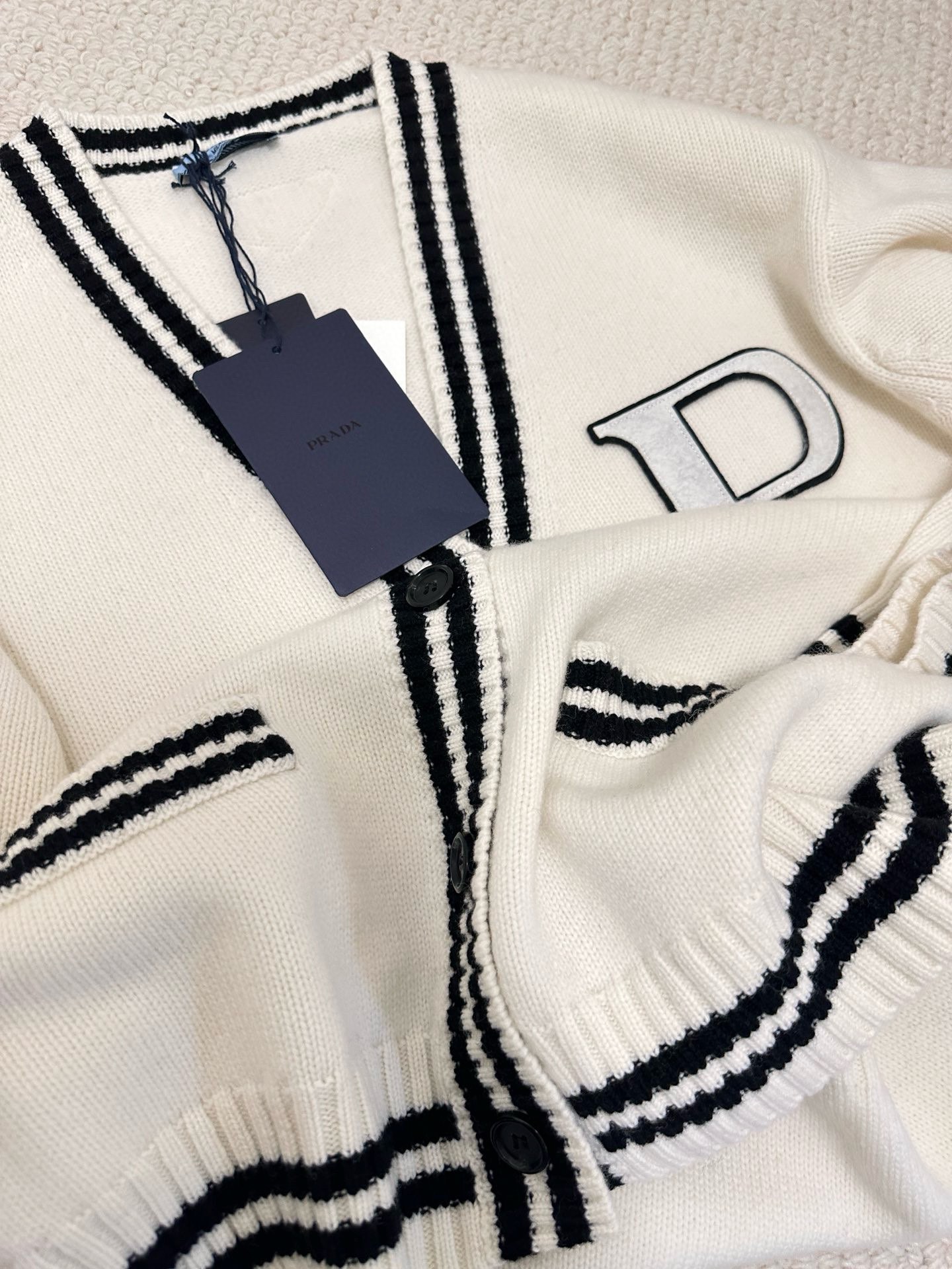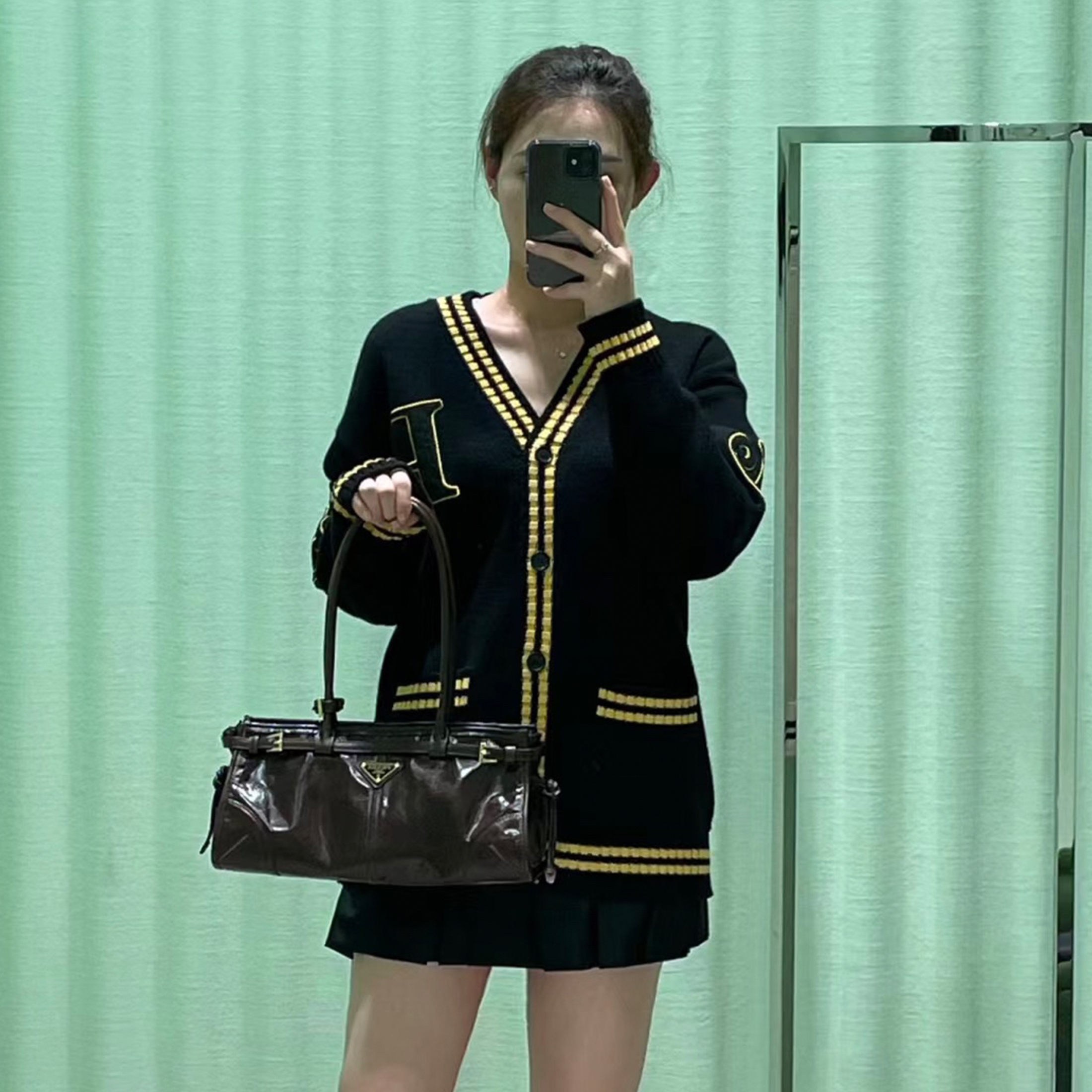 NIGO Prada Women's Fall And Winter Oversize College Style Splicing Letters Embroidery Wool Cardigan Sweater Fashion Casual Single-breasted Knit Sweater Knitted Ngvp #nigo9246