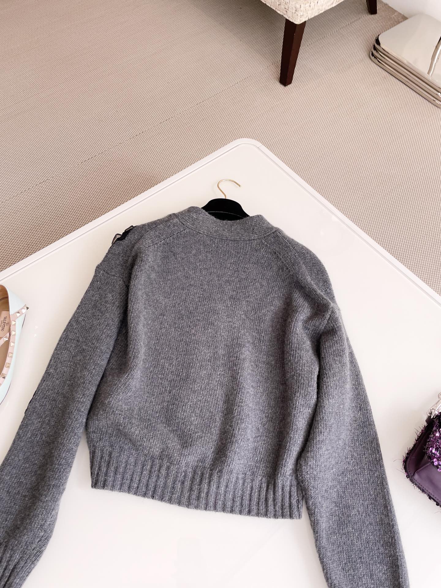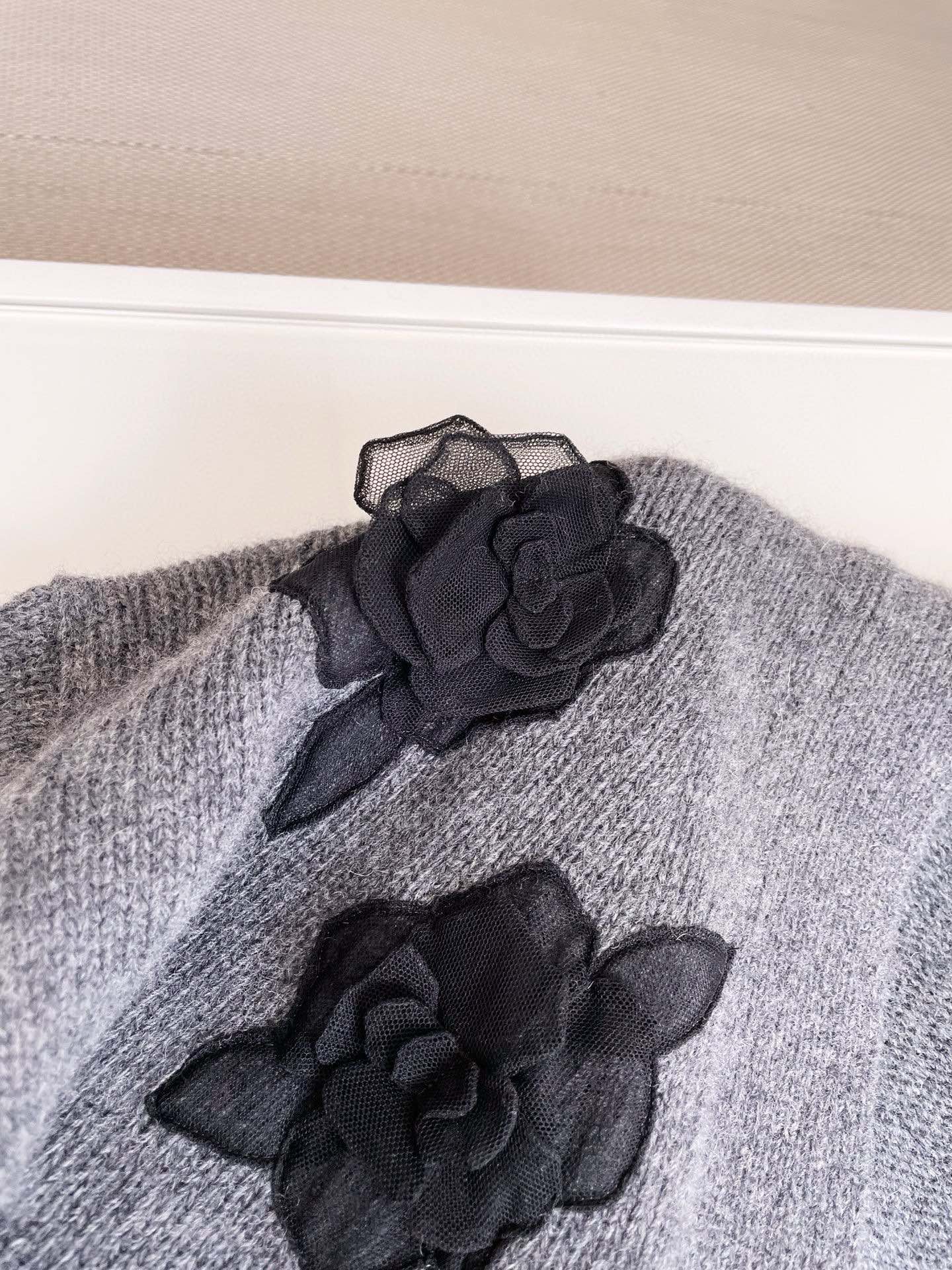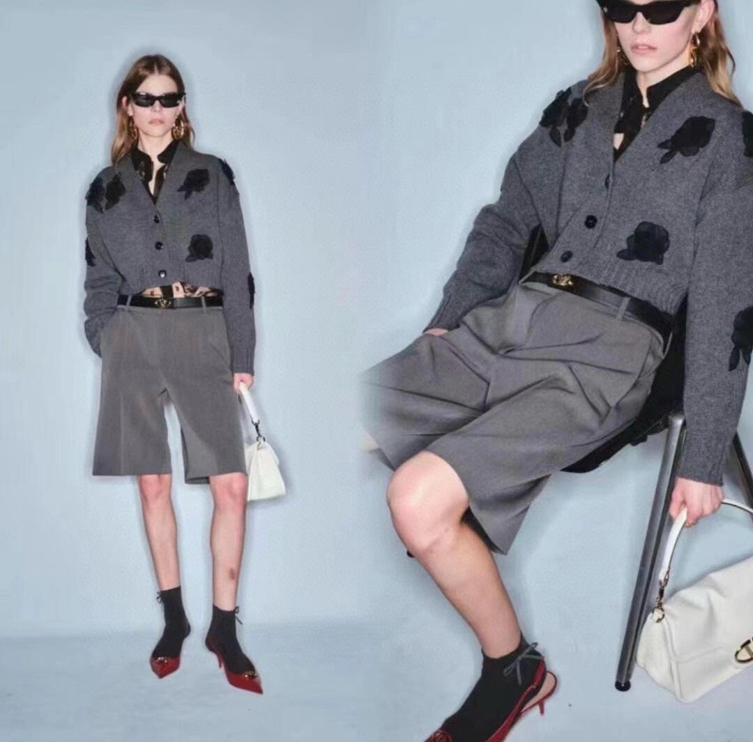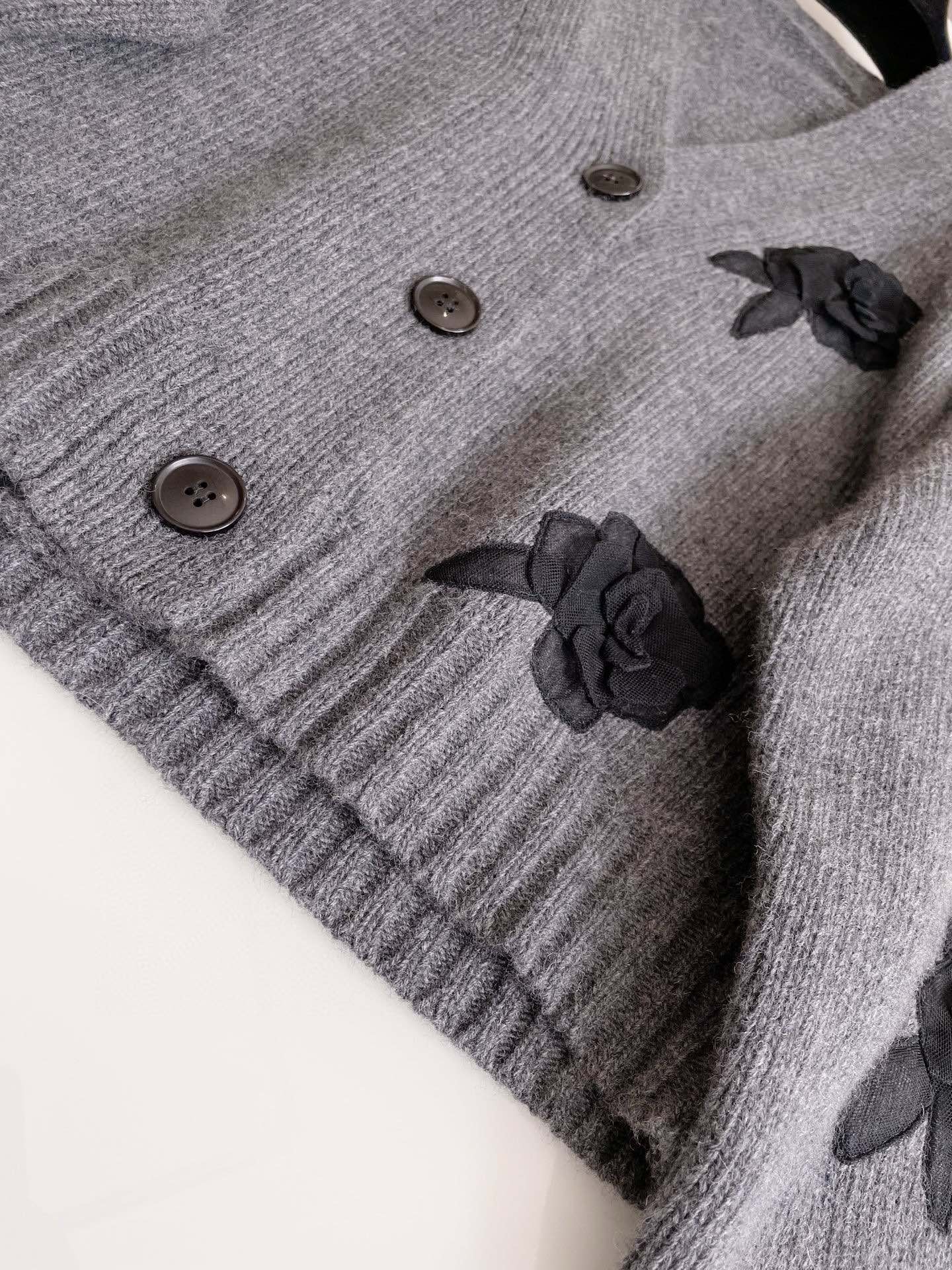 NIGO Valentino Women's Spring And Autumn Rose Embroidery Single Breasted V-Neck Gray Long Sleeve Cardigan Wool Sweater Ngvp #nigo9476