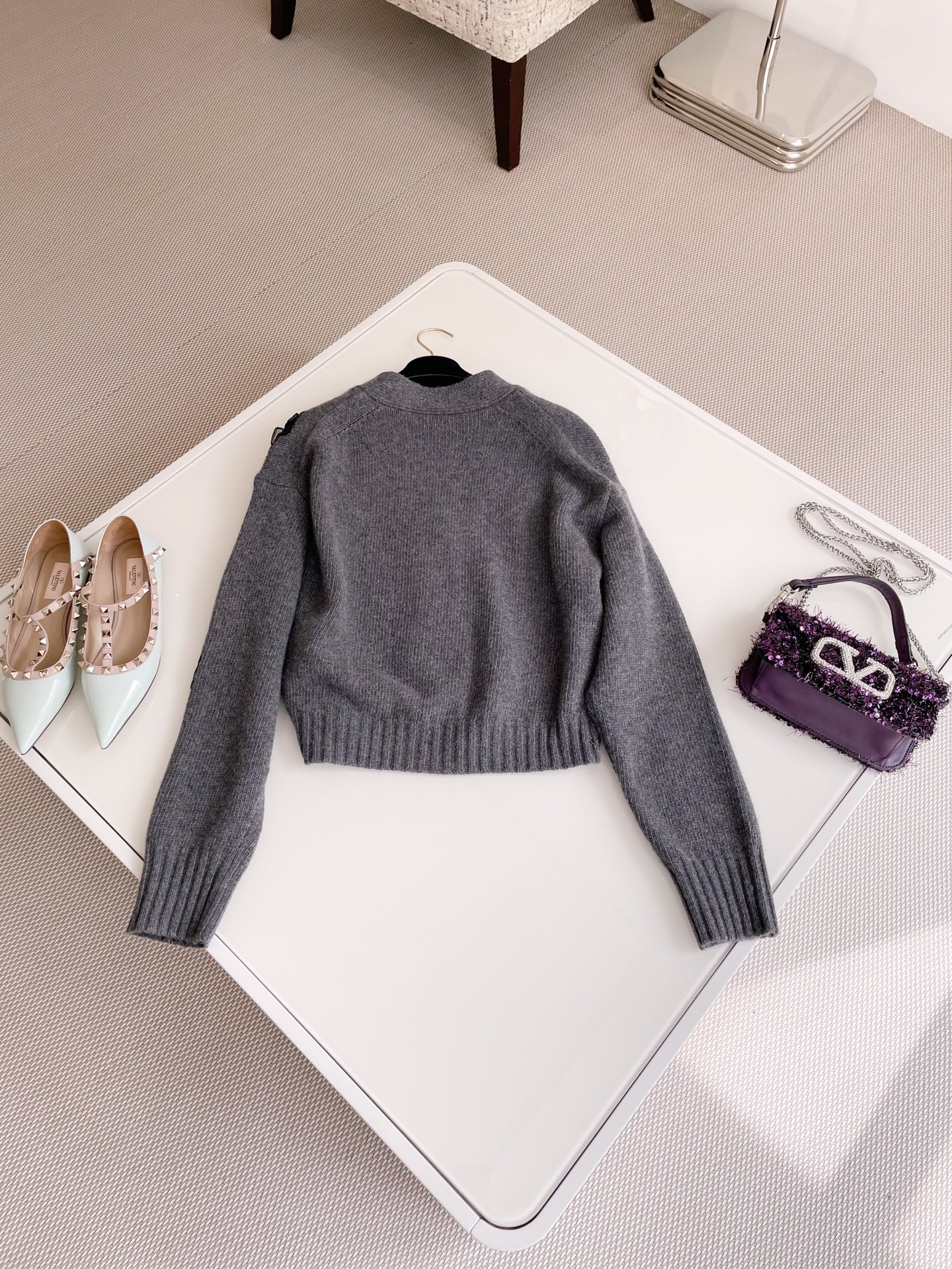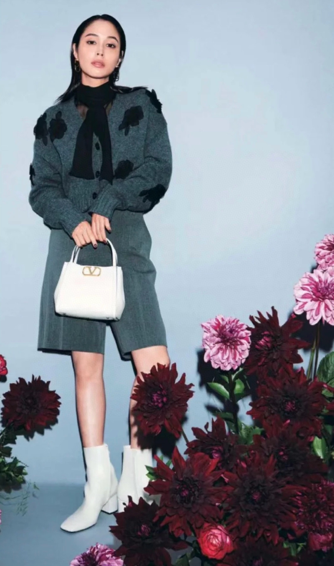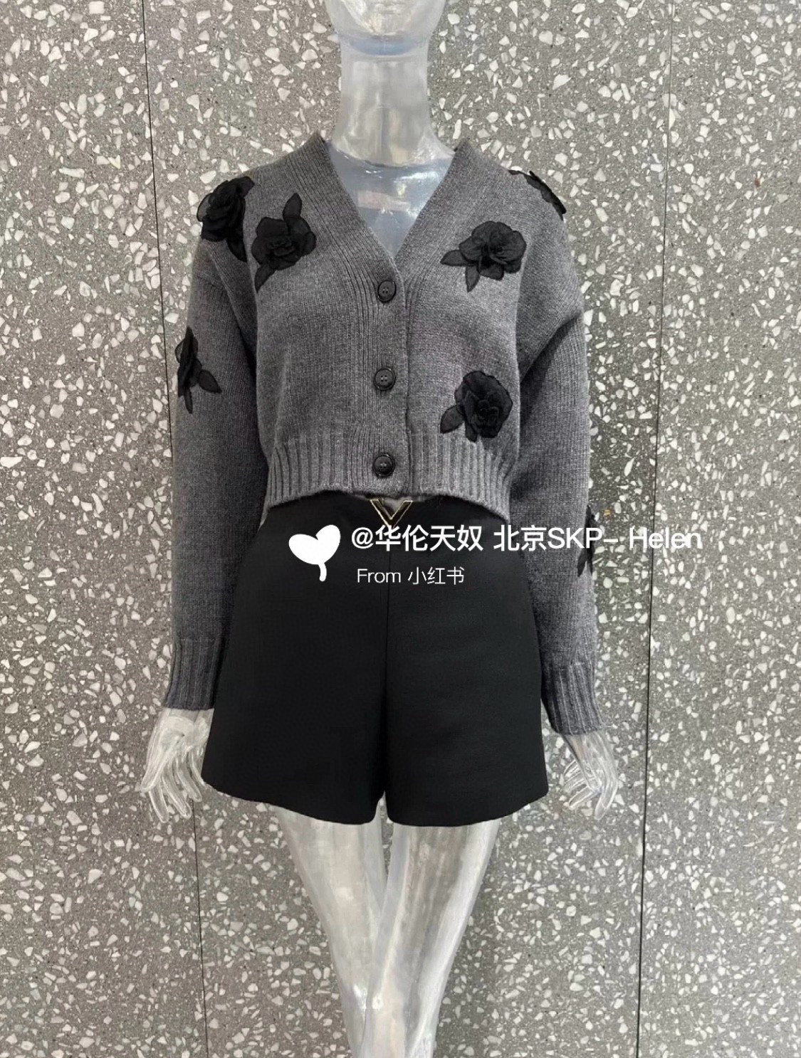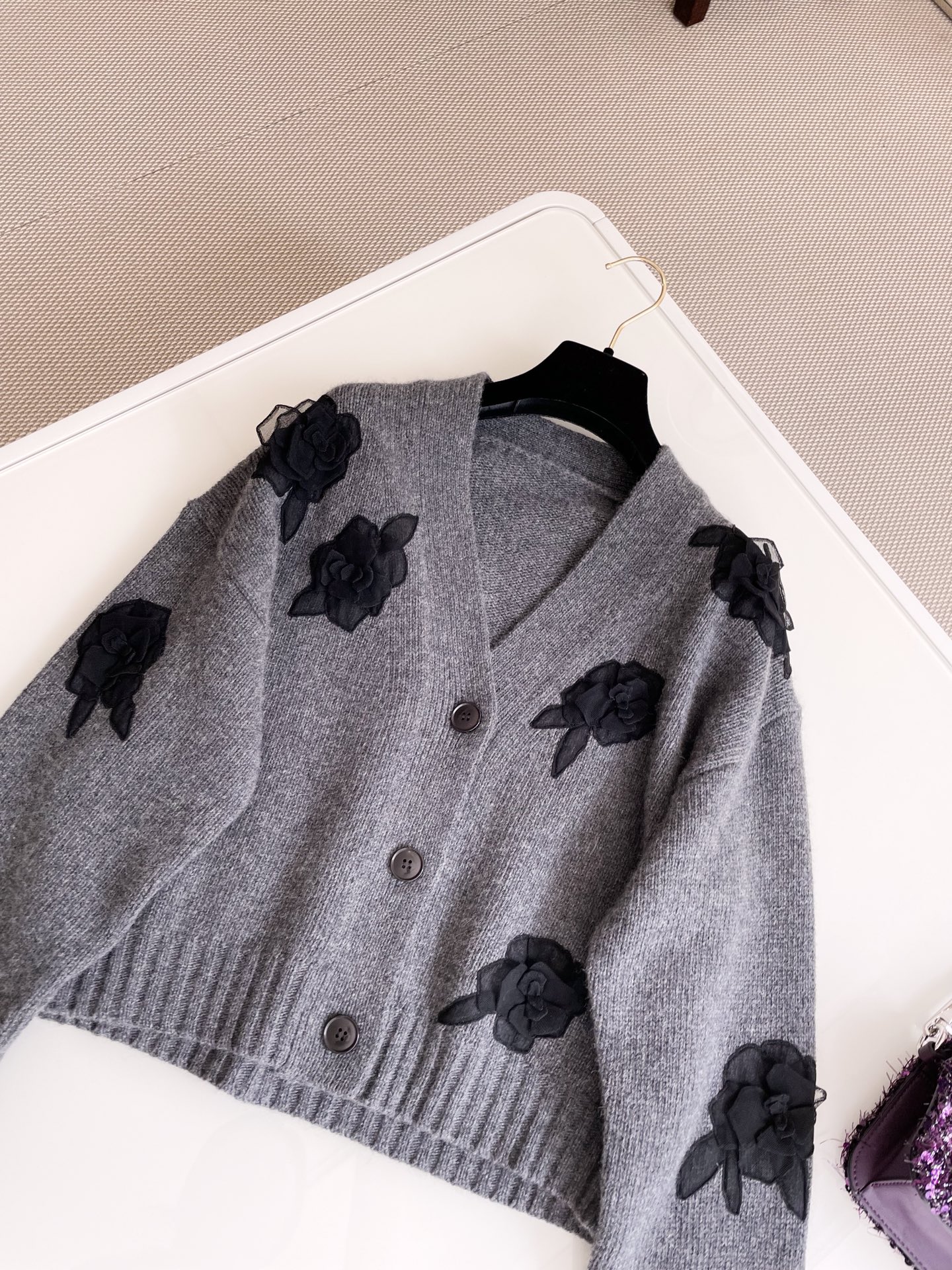 NIGO Valentino Women's Spring And Autumn Rose Embroidery Single Breasted V-Neck Gray Long Sleeve Cardigan Wool Sweater Ngvp #nigo9476