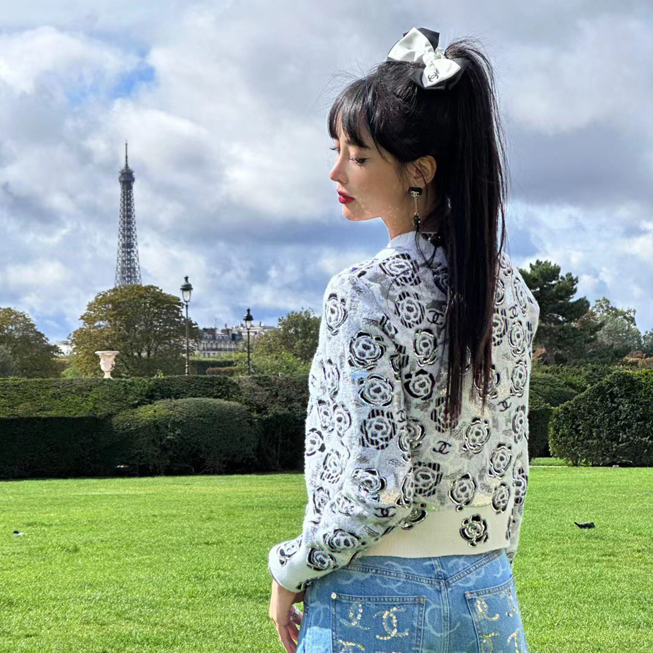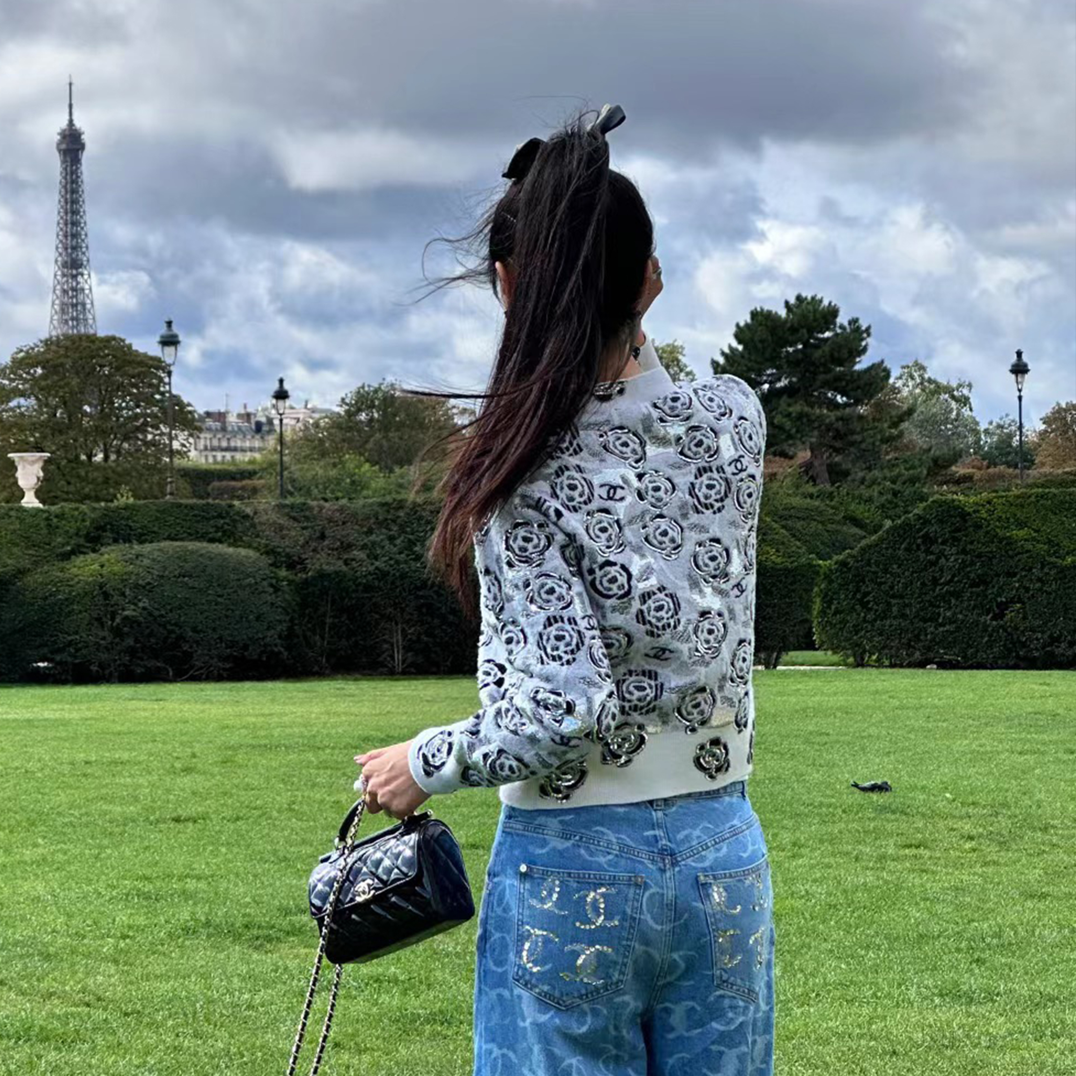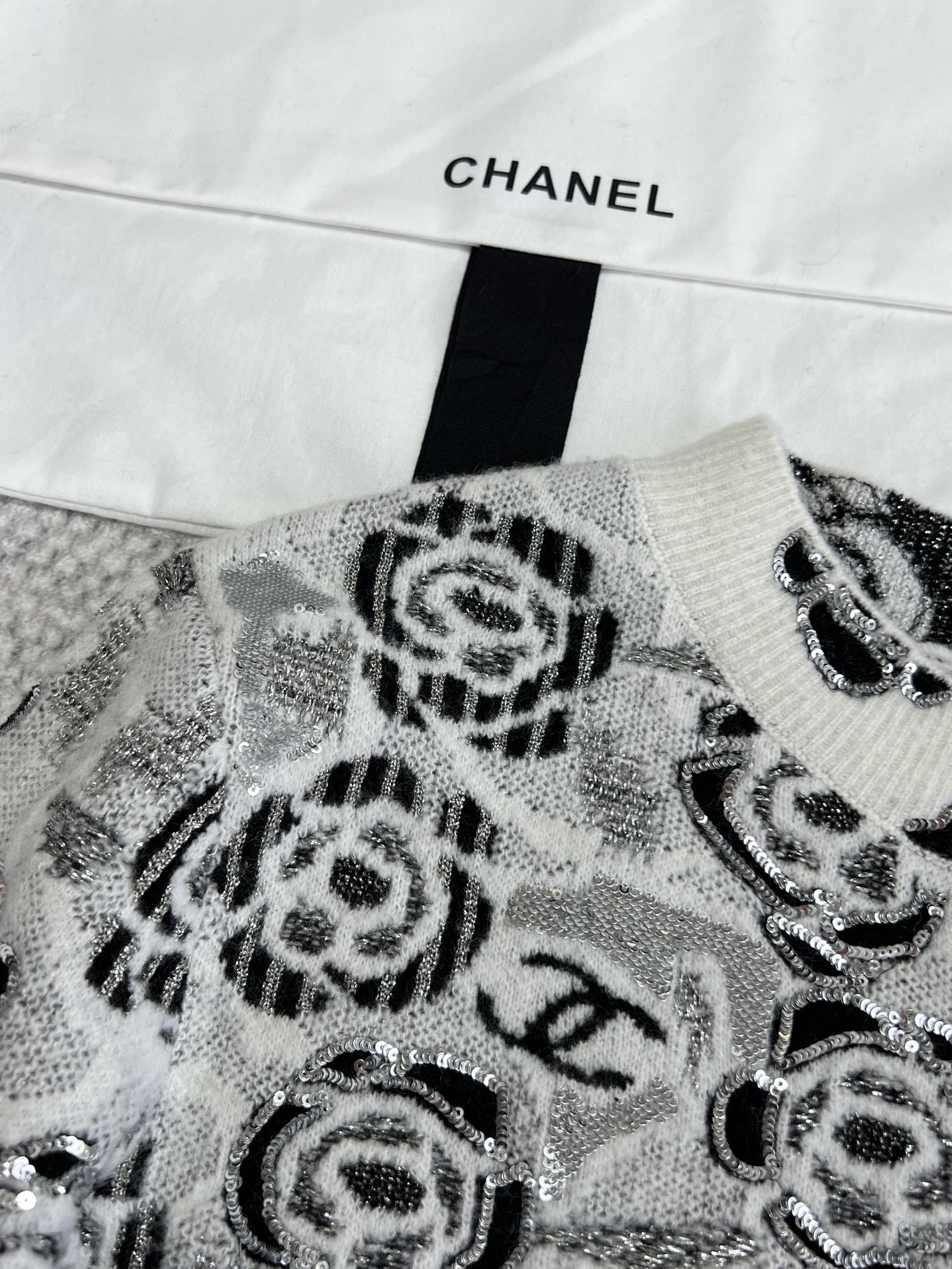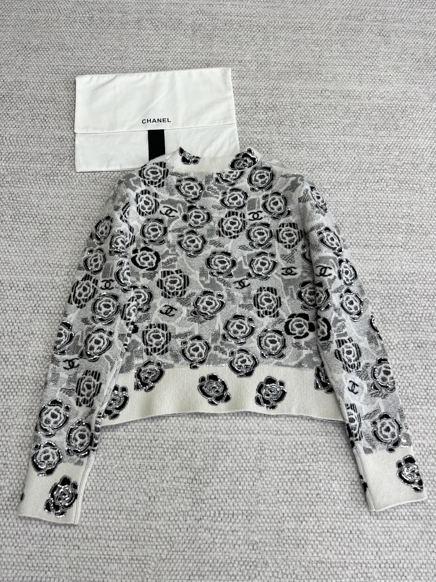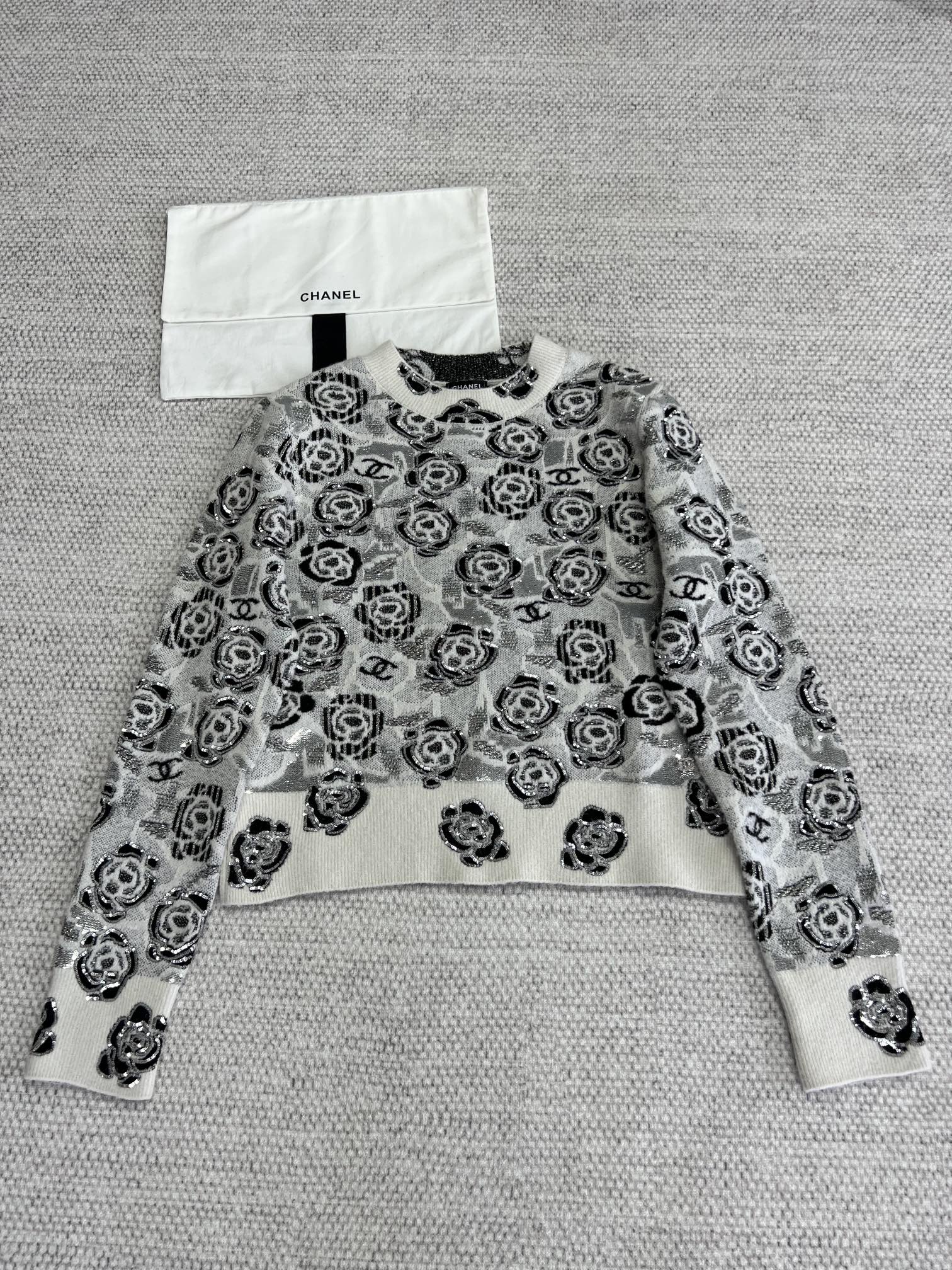 NIGO Women's Fall And Winter Sequin Cashmere Sweater Camellia Logo Jacquard Knit Pullover Sweater Knitted #nigo71656