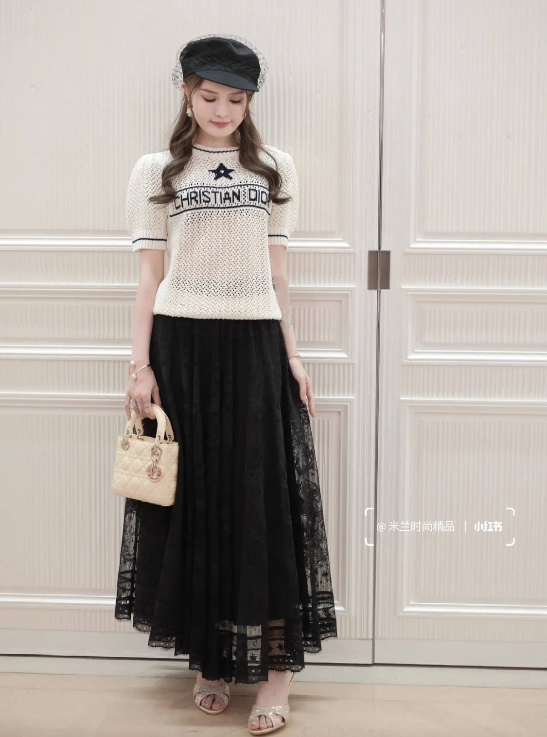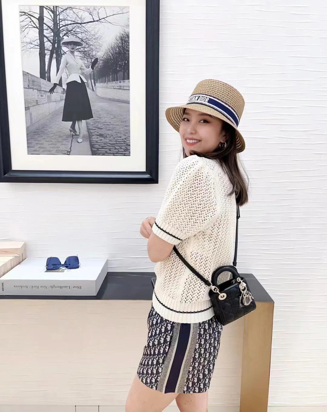 NIGO Dior Women's Spring And Autumn Logo Embroidery Hollow Cotton Round Neck Knit Short Sleeve Sweater #nigo71365