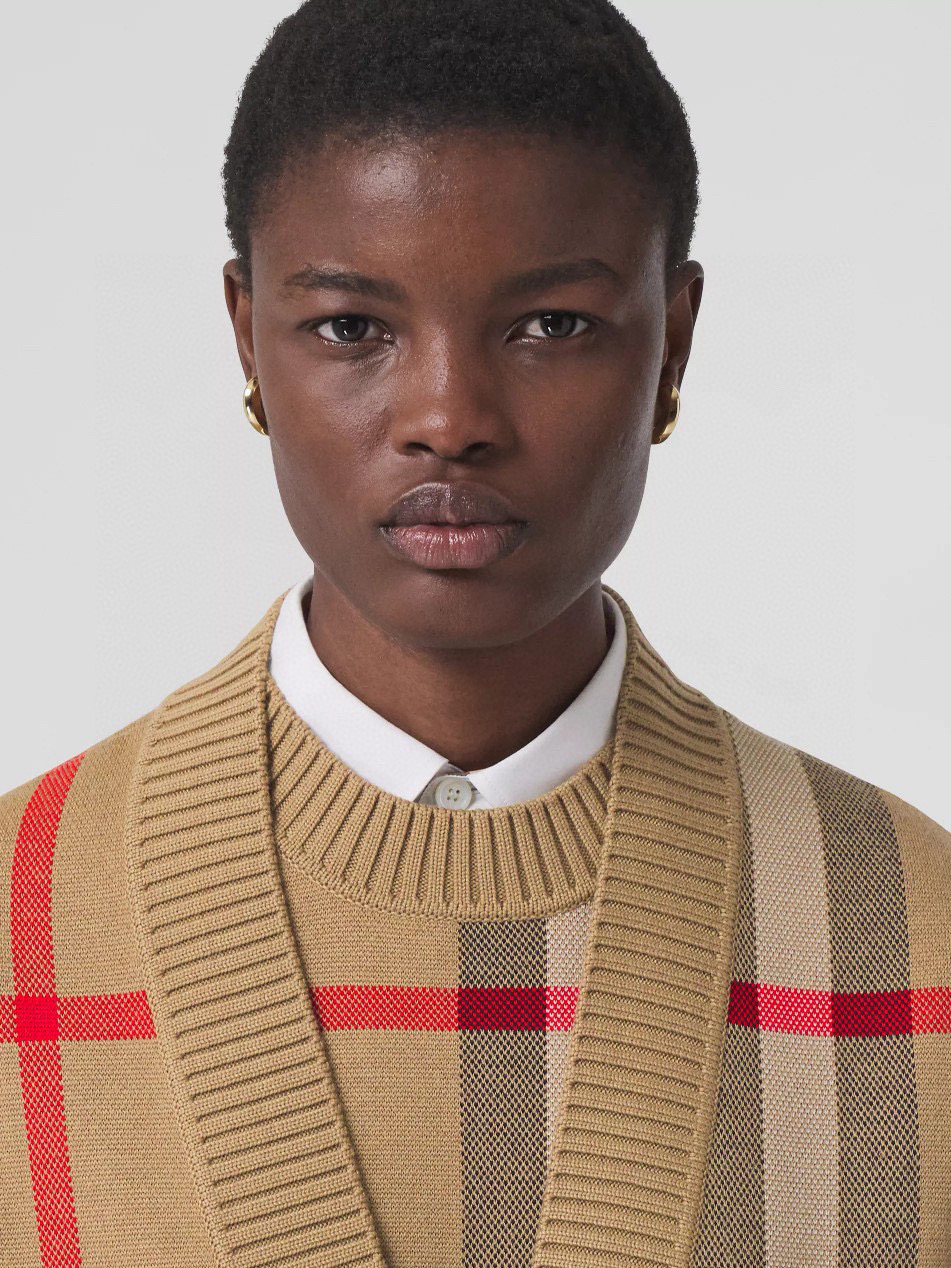 NIGO Burberry Women's Plaid Blended V-neck Jacquard Knitted Cardigan Button Fashion Casual Sweater #nigo71422