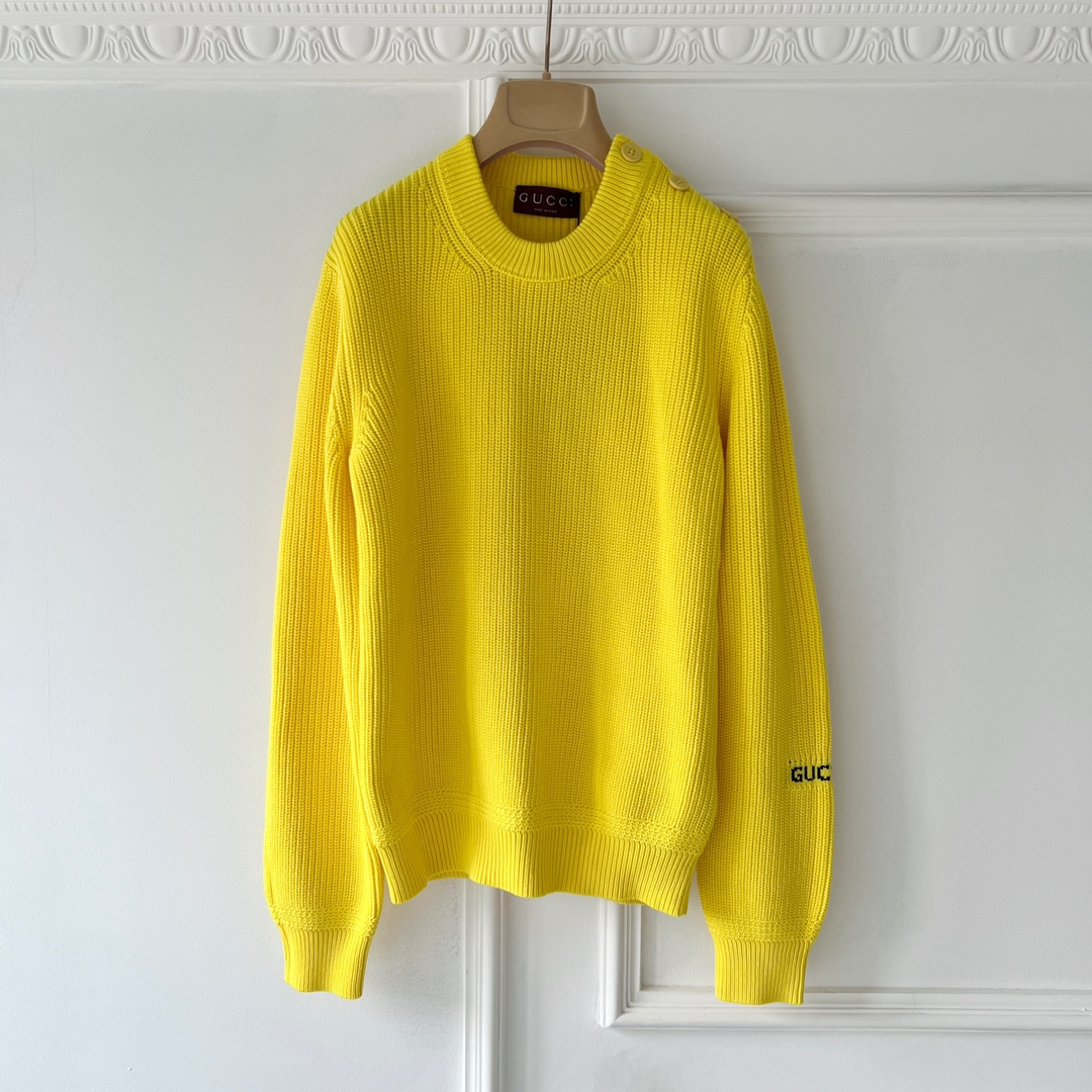 NIGO Gucci Men's Spring Summer Yellow Round Neck Loose Knit Long Sleeve Sweater #nigo72843