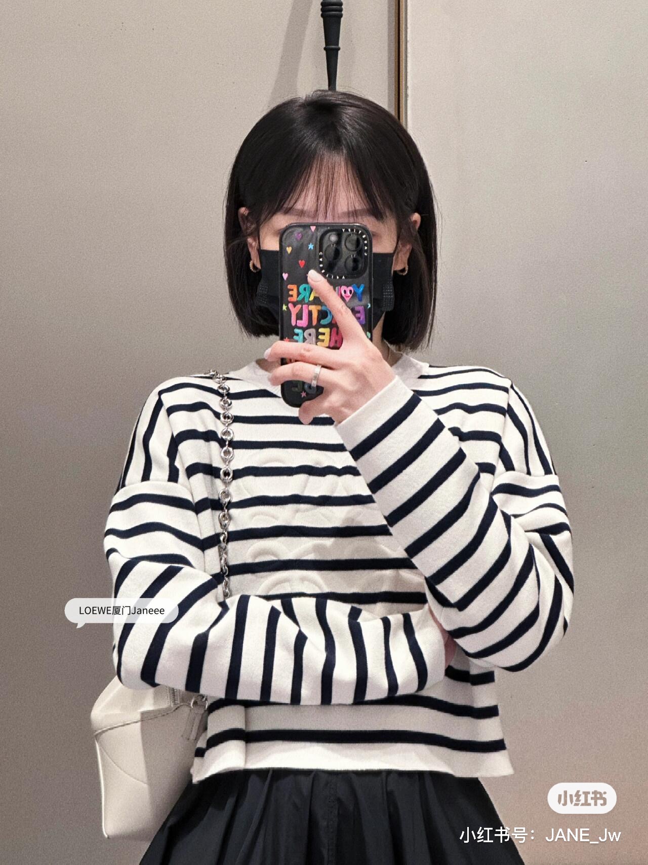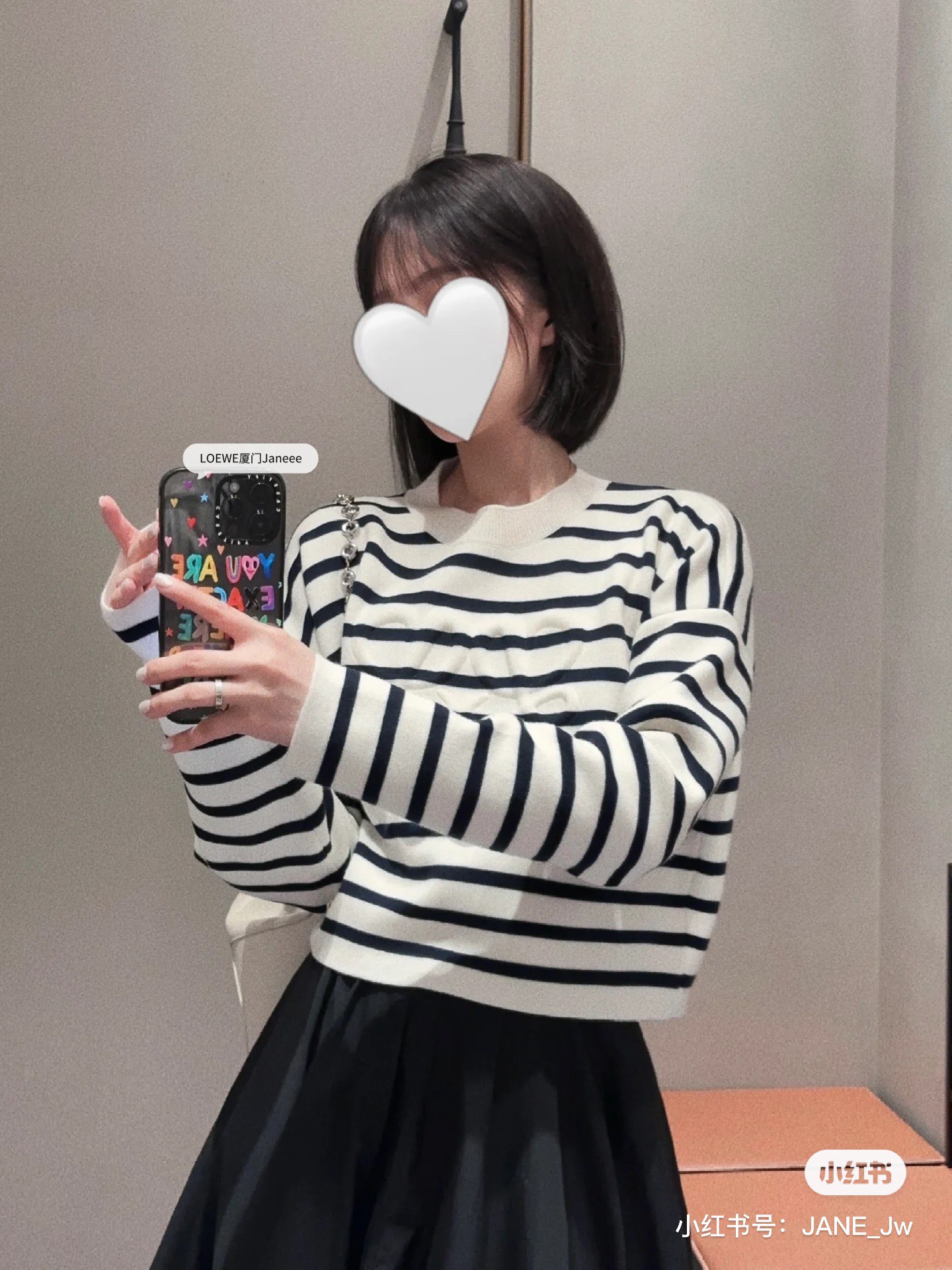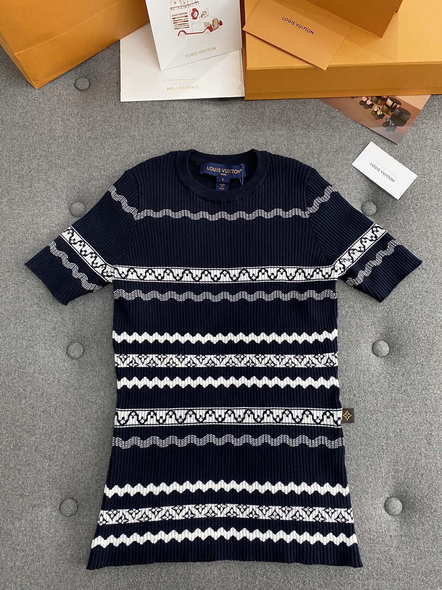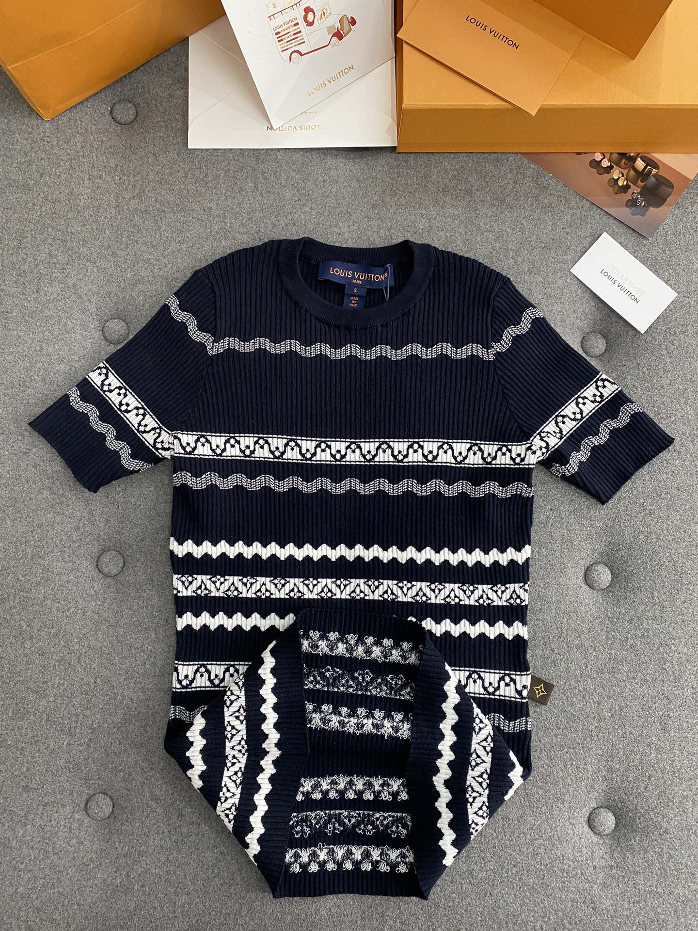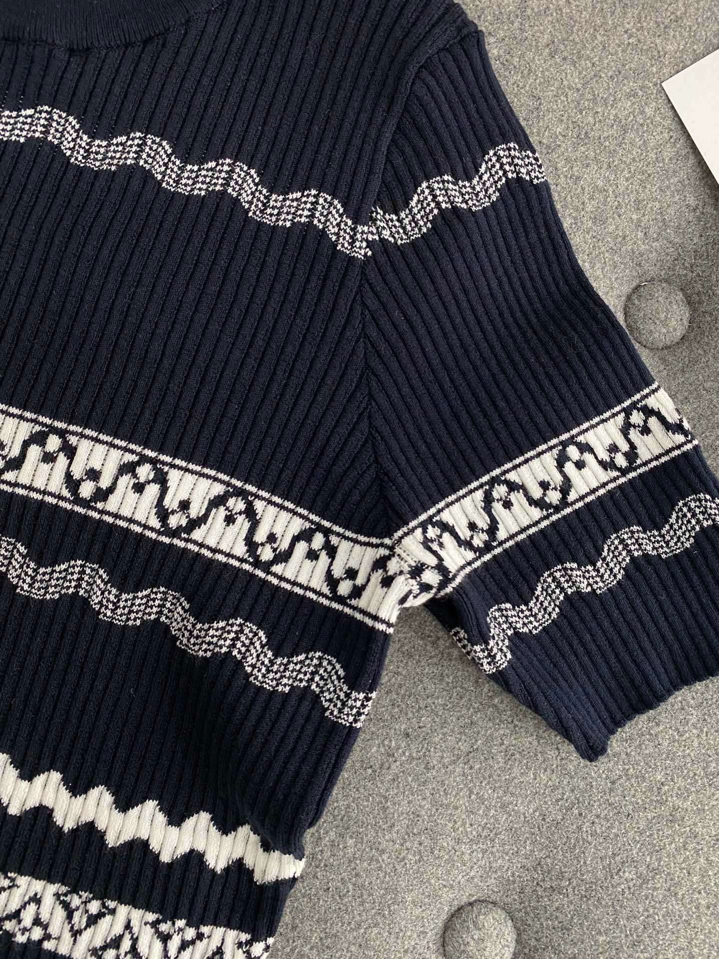 NIGO Louis Vuitton Women's Summer Solid Color Scalloped Stripe Crew Neck Pullover Fitted Knit Sweater #nigo71474
