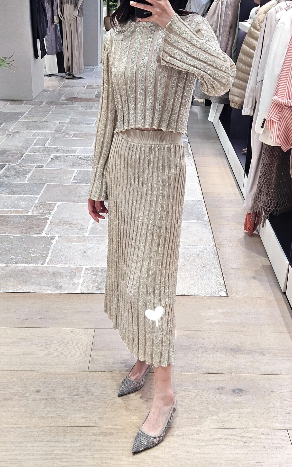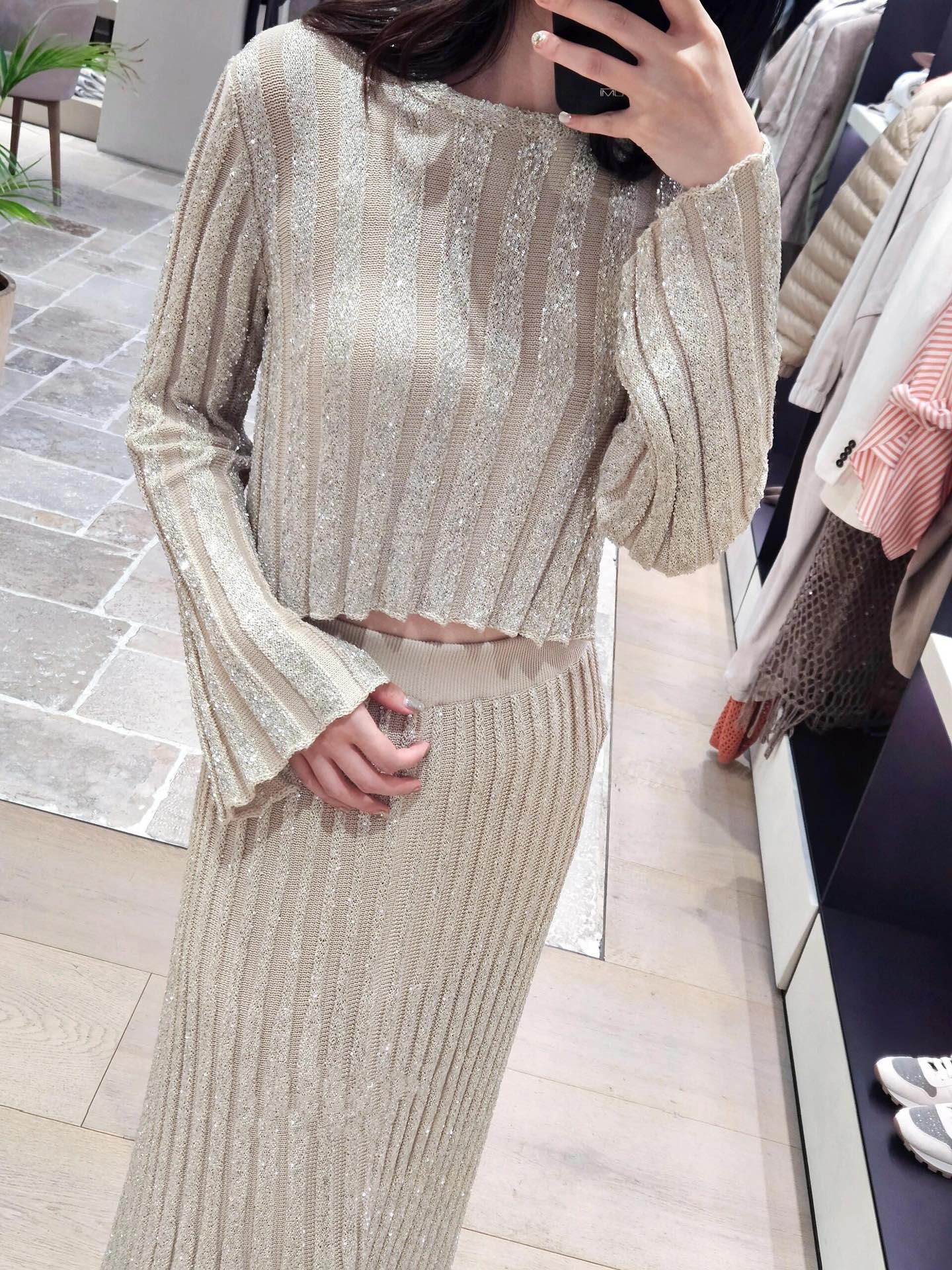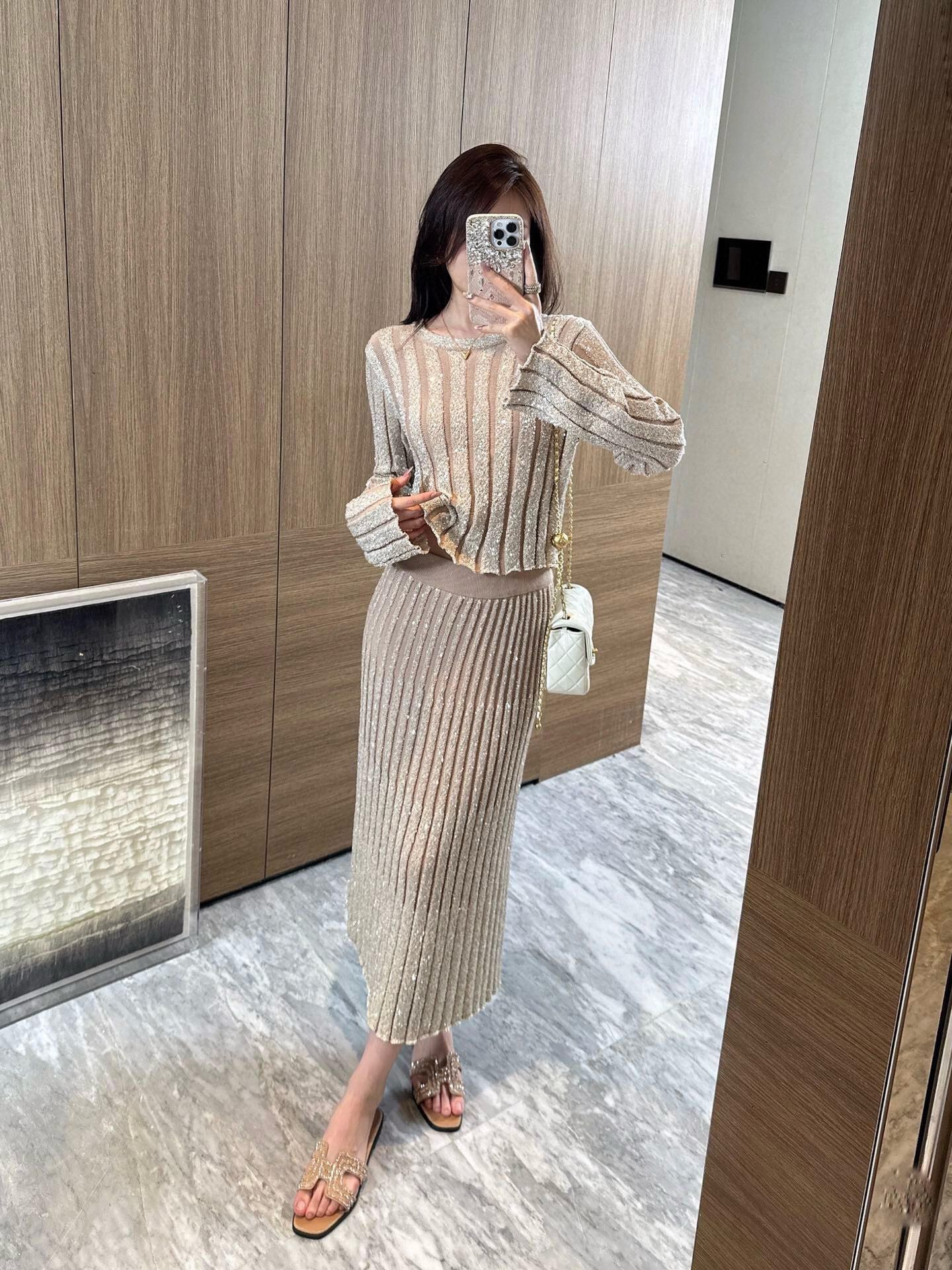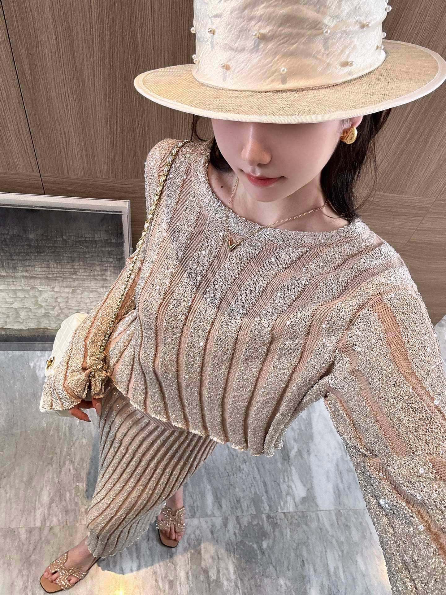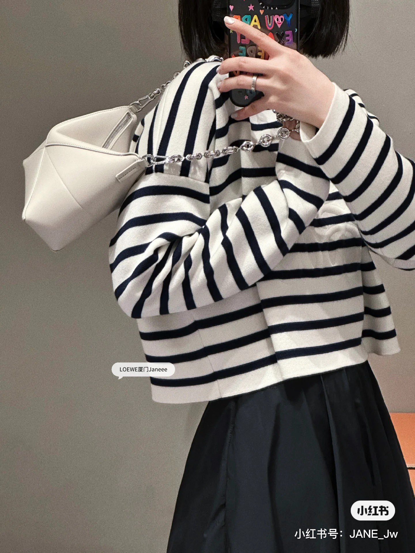 NIGO Louis Vuitton Women's Summer Solid Color Scalloped Stripe Crew Neck Pullover Fitted Knit Sweater #nigo71474