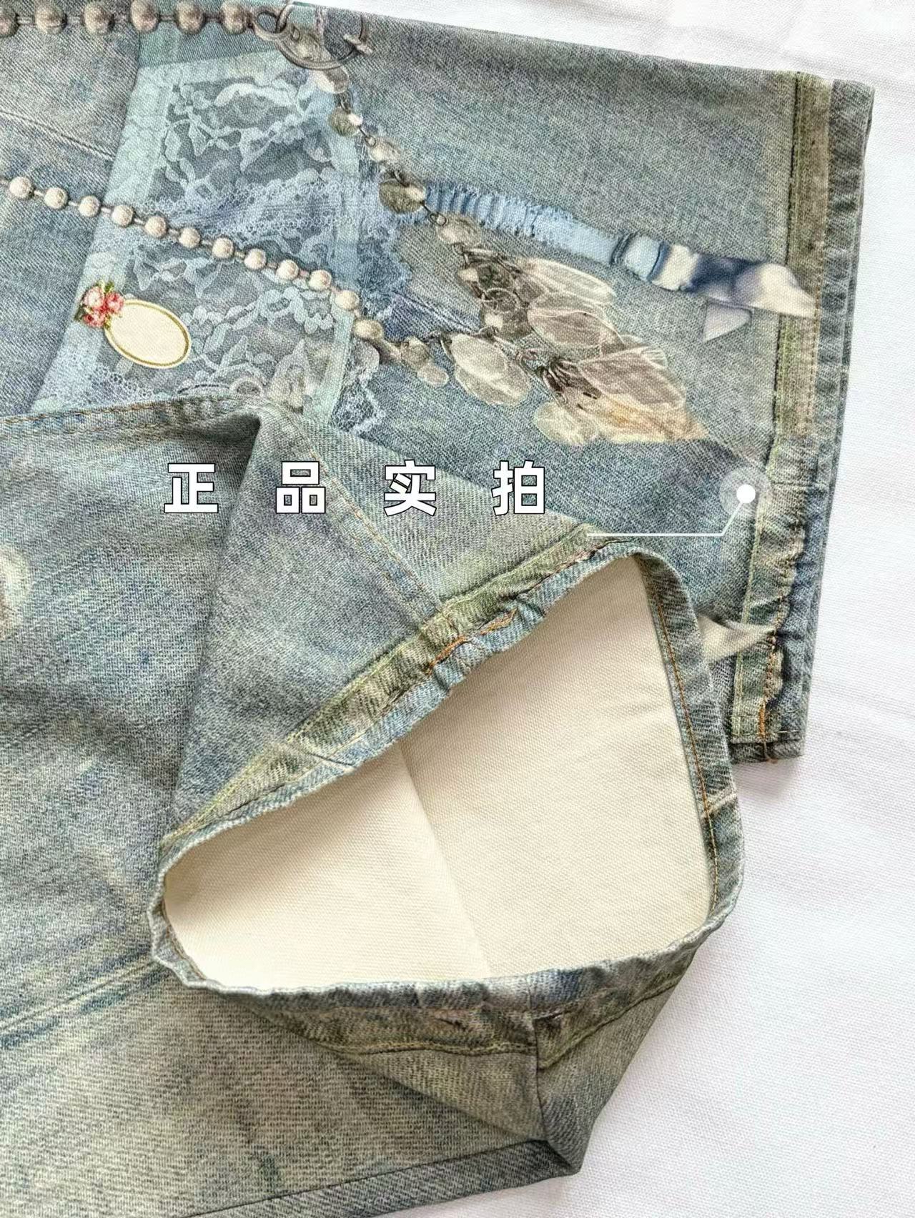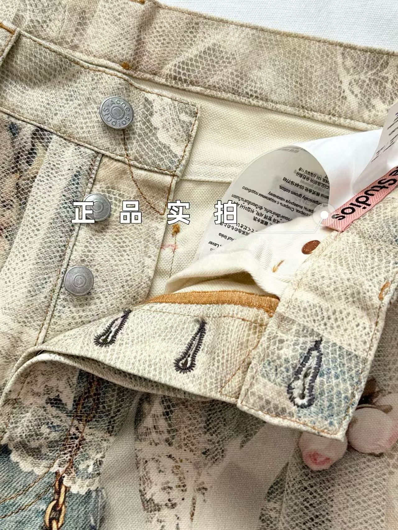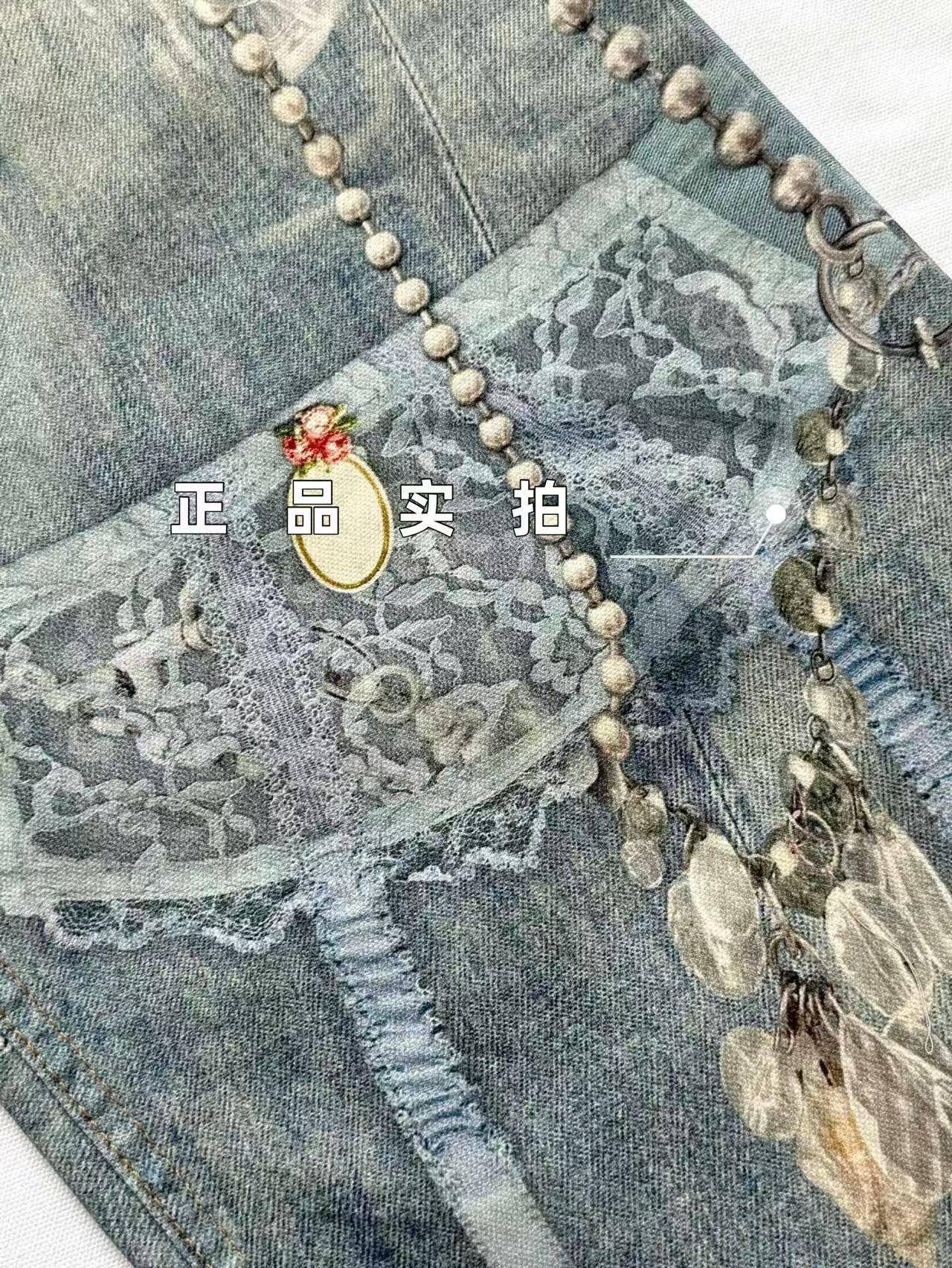 NIGO Acne Studios Men's Women's Four Seasons Lace Pearl Chain Printed Zipper Loose Low Waisted Denim Pants Wide Leg Machete Pants Ngvp #nigo1938