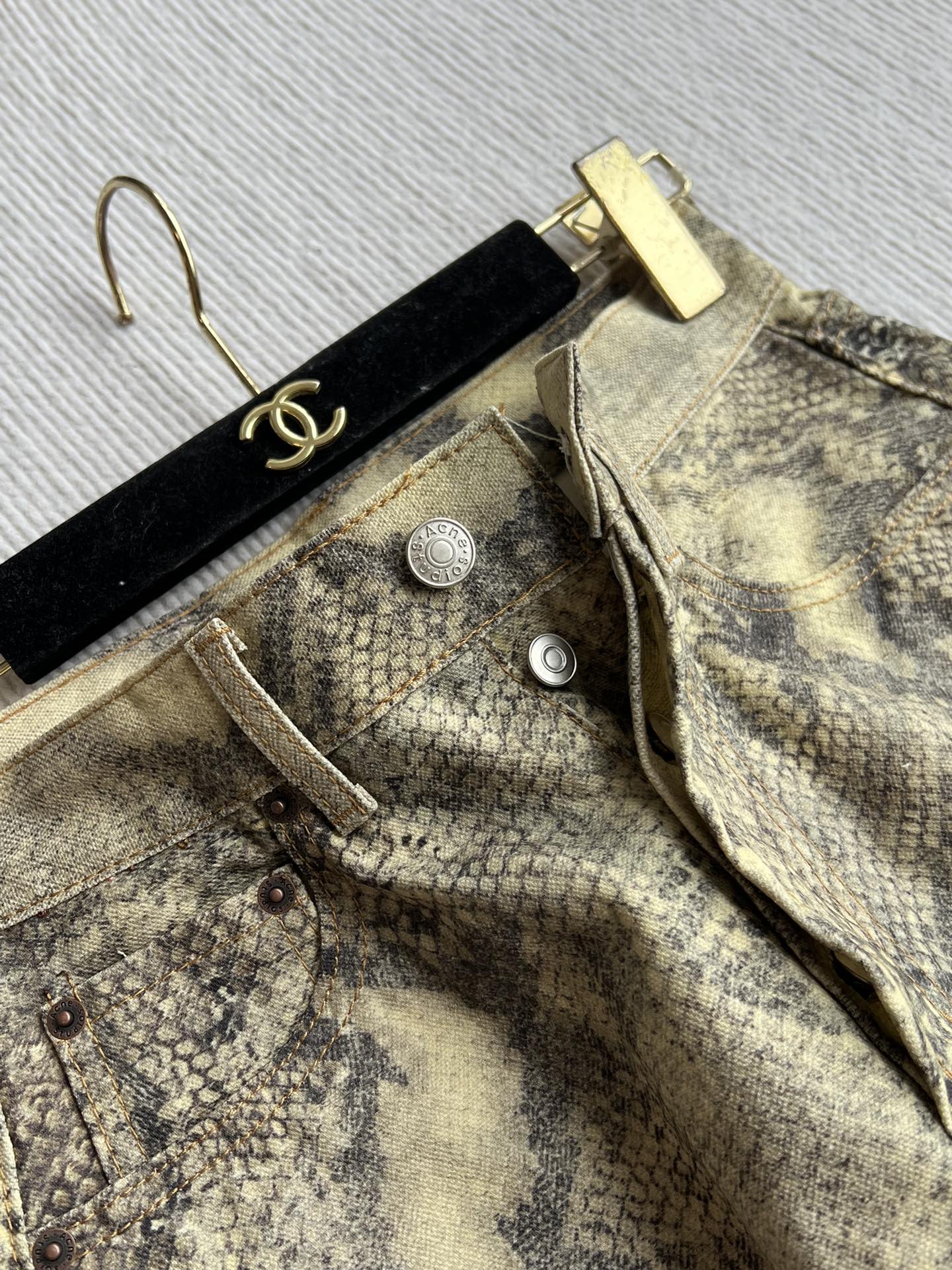 NIGO Acne Studios Women's Four Seasons Python Print Mid Waist Loose Cotton Micro Raglan Denim Pants Ngvp #nigo1544